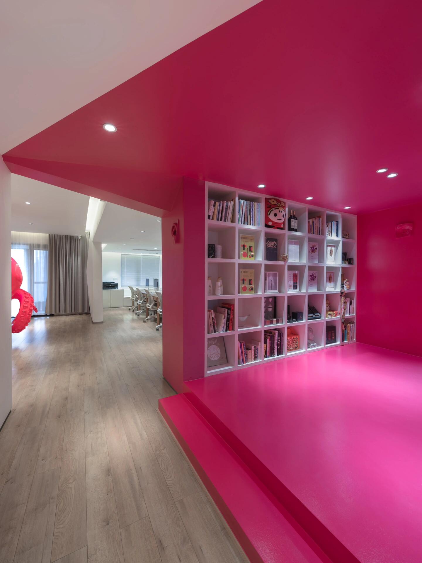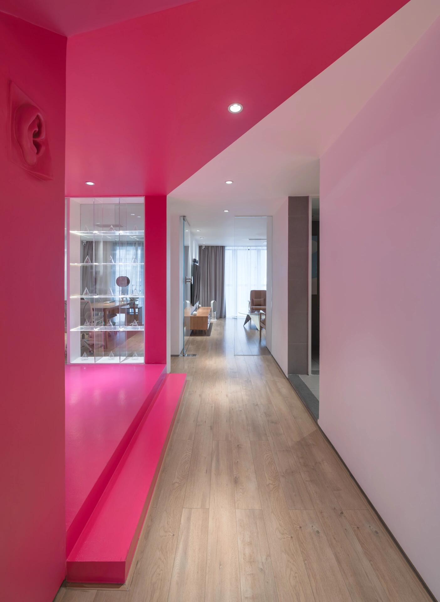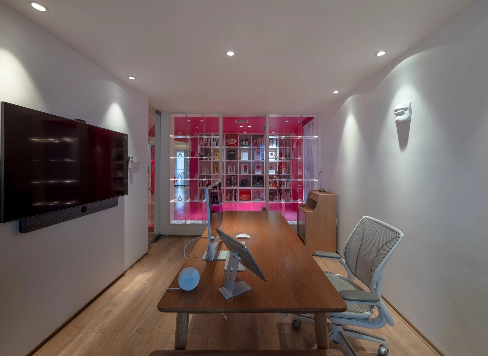 行政中心不仅是一个功能强大且开敞对外的办公空间,还通过室内设计呈现极氪品牌主旨,金属感材料、反光材料、线条光和彩色点缀的应用,让办公室成为具有未来感和个性的总部办公场所,给来访者留下深刻的第一印象,我们将行政中心打造为一个信息中转和存储的空间站。