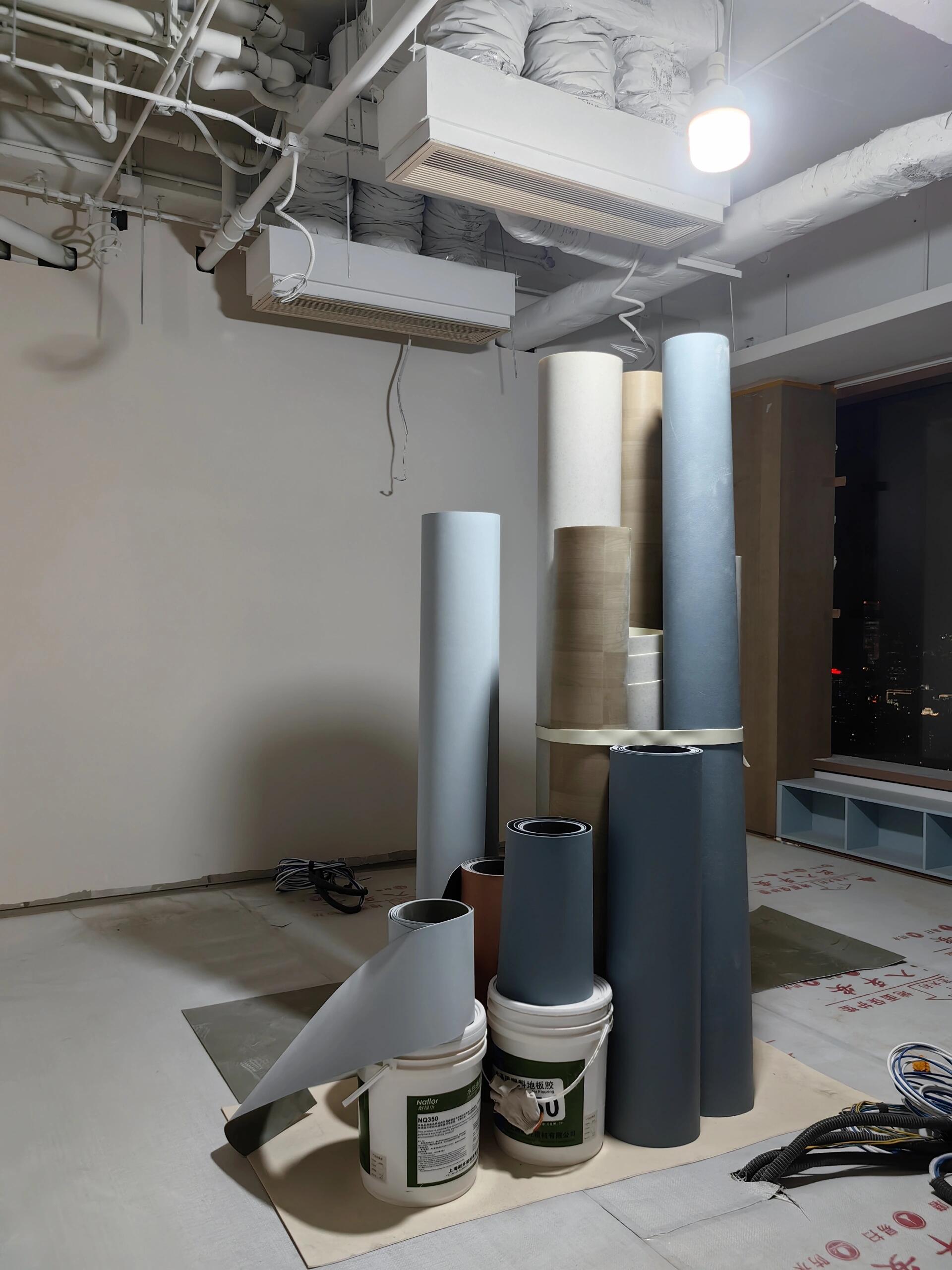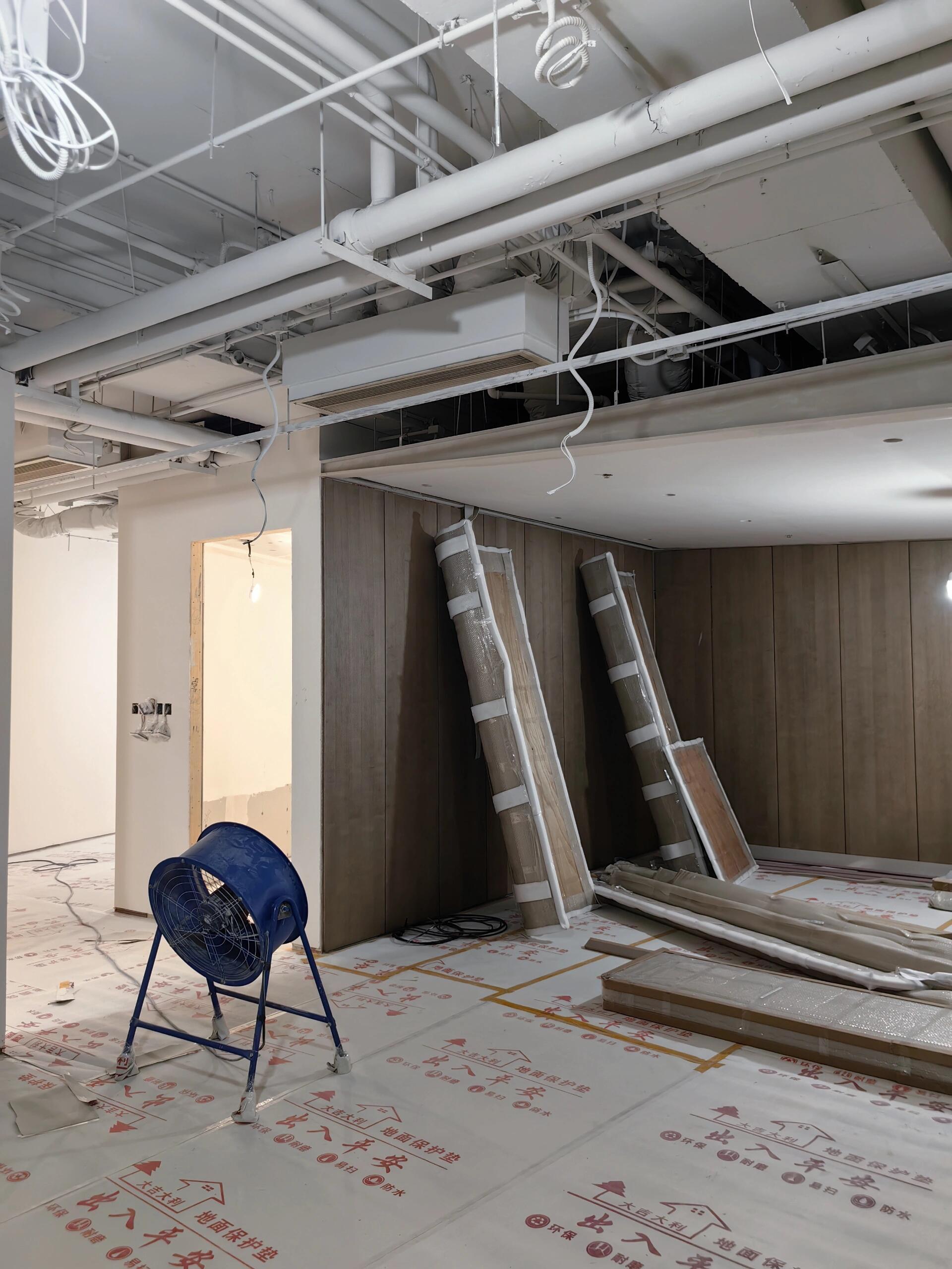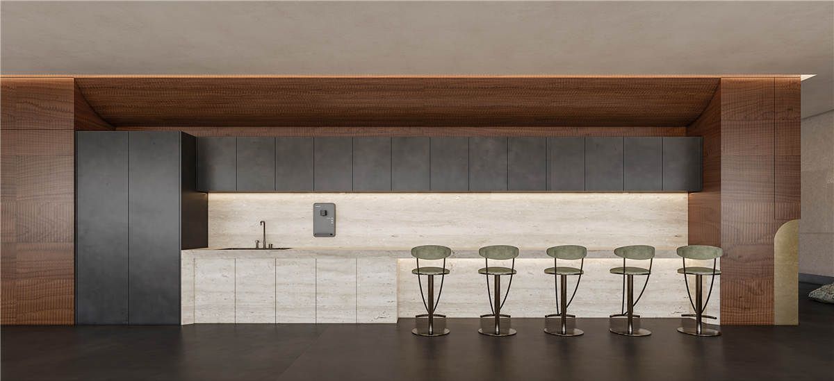 吧台休闲区与办公区,通过地面色调暗示空间功能的不同。尺度宽绰的吧台,选择温暖的奶白色主导视觉,搭配上方的暖光灯带,组成撩动人心的细腻语言。