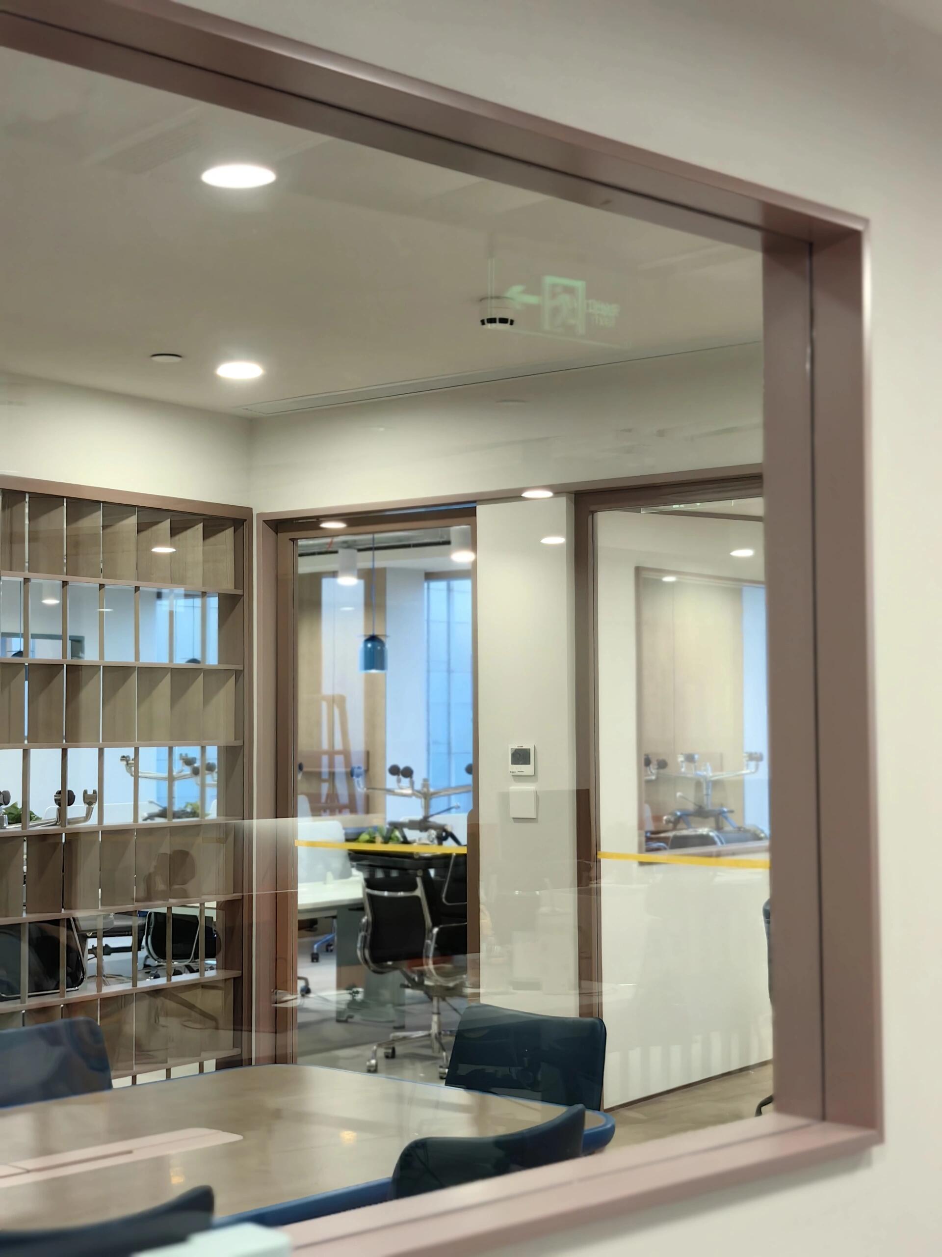 弧线元素的加入,消解了传统会议的拘束感,让与会者不觉间便沉浸至工作当中。弧线还是空间动线的引导者,在会议室形成延续不断的语言符号,人的工作行为也由此展开。