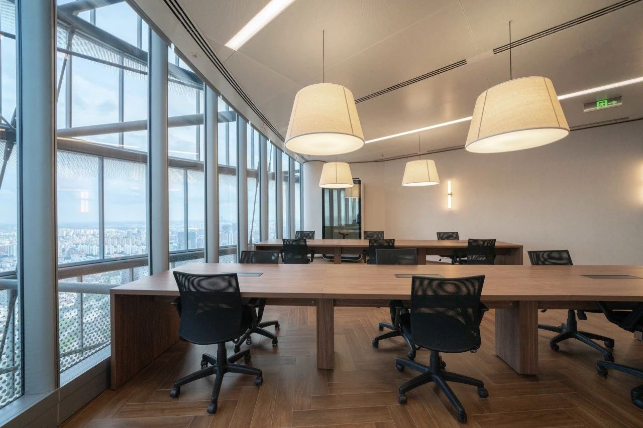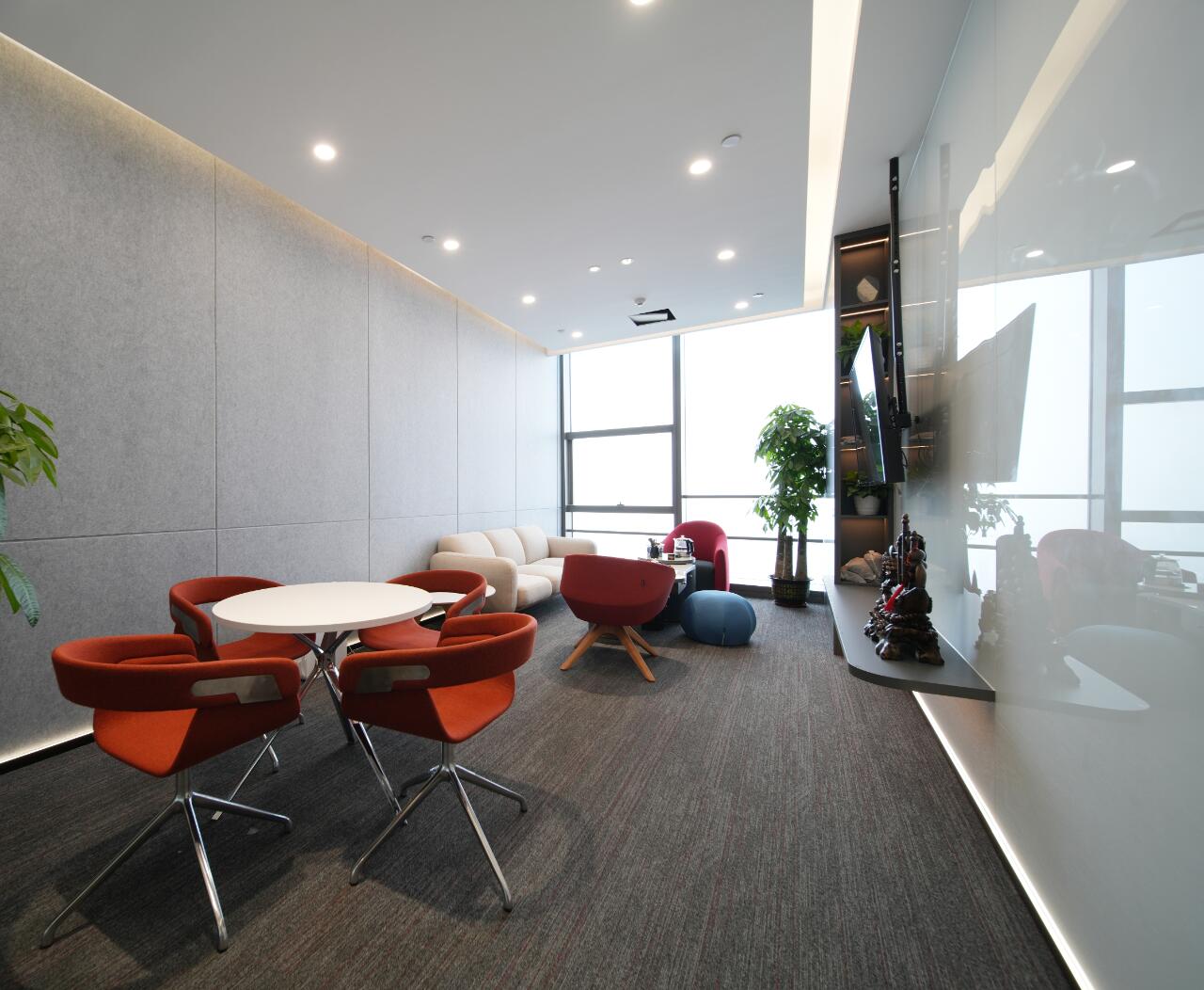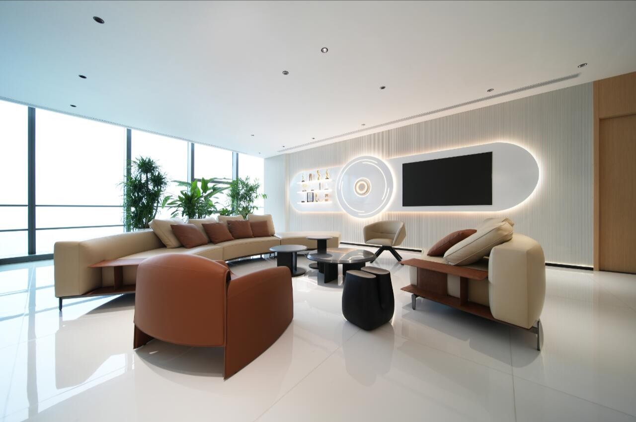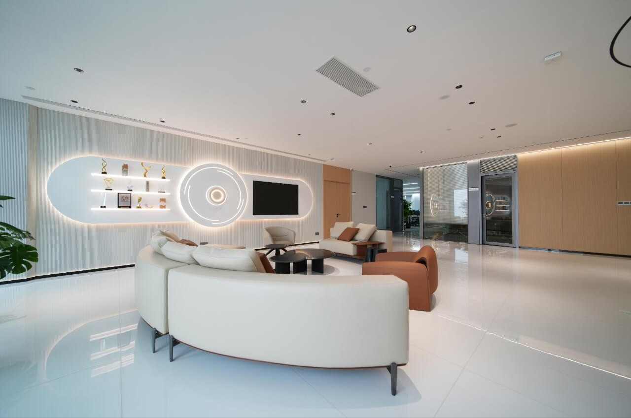 采用哑光黑L100双层超白玻璃系统相结合,玻璃与玻璃之间采用无缝拼接工艺,提供了极佳的透光性和隔音效果,让自然光线在室内自由流动,营造出明亮舒适的办公环境。