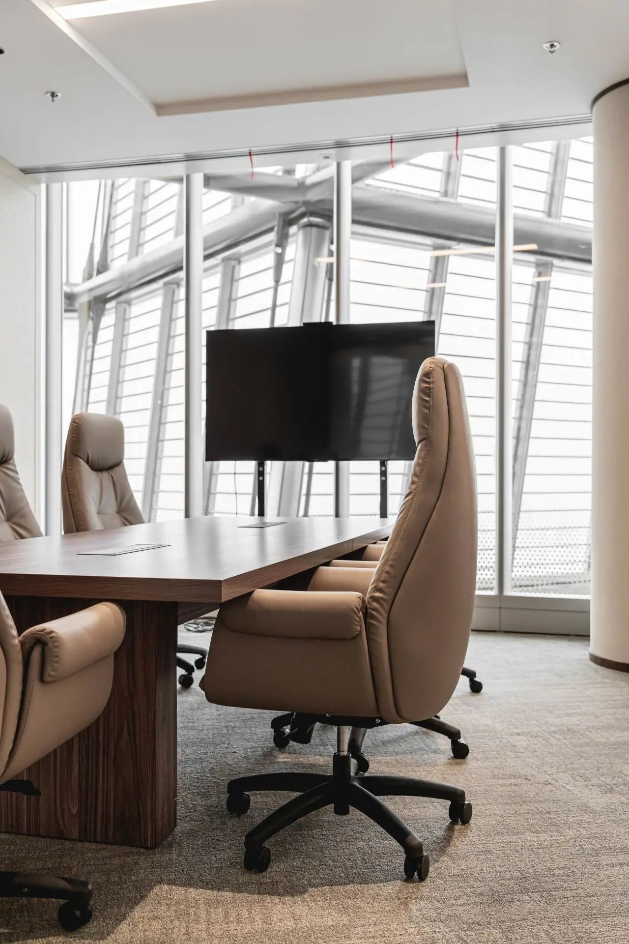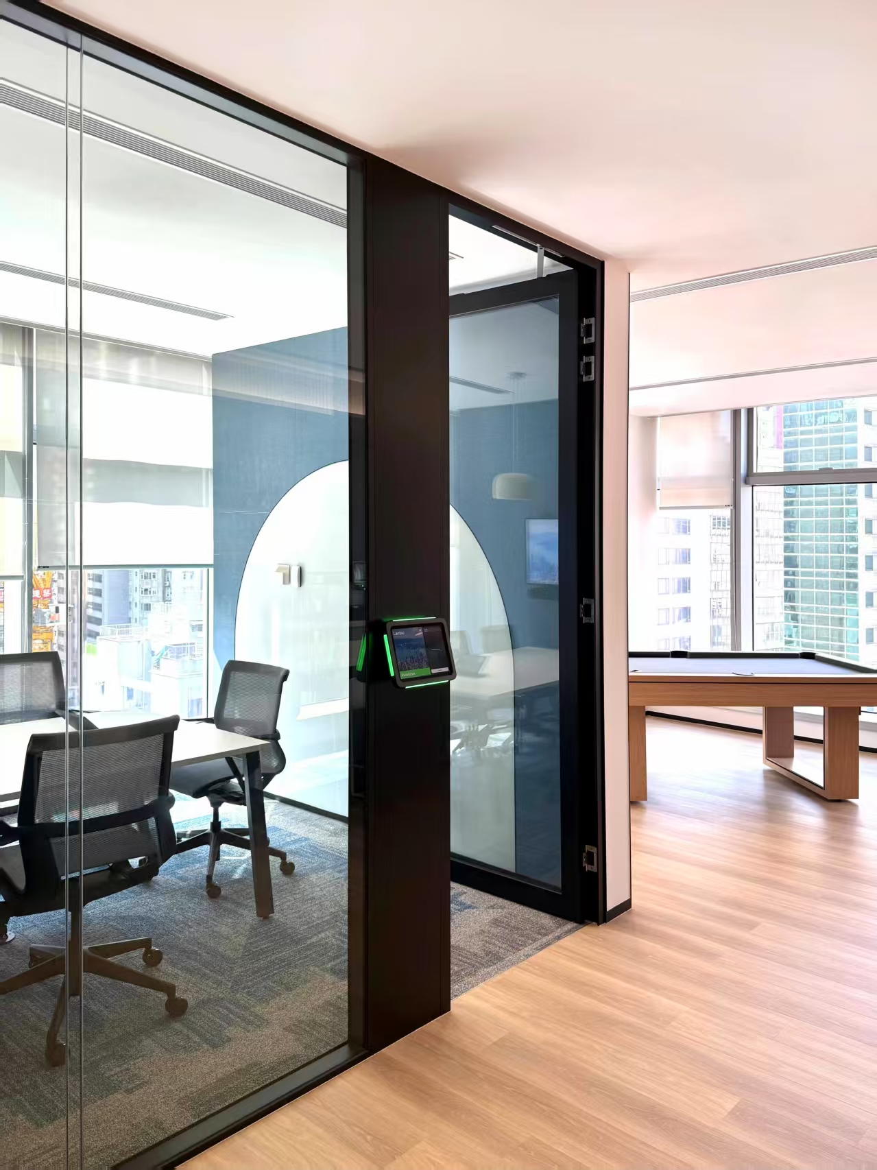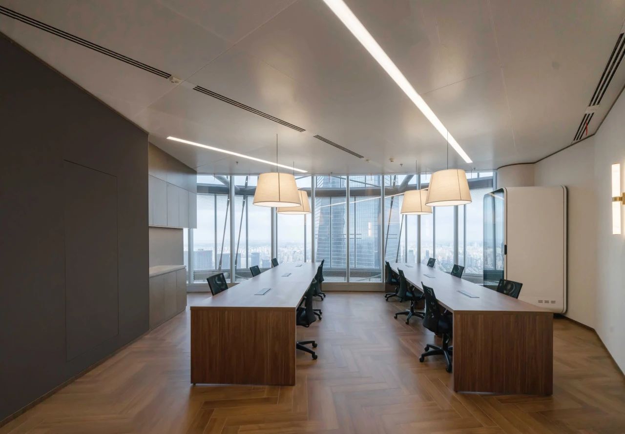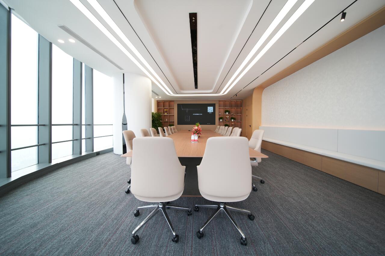 采用哑光黑L100双层超白玻璃系统相结合,玻璃与玻璃之间采用无缝拼接工艺,提供了极佳的透光性和隔音效果,让自然光线在室内自由流动,营造出明亮舒适的办公环境。