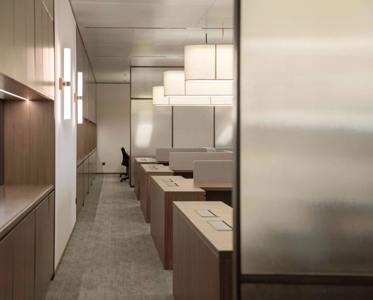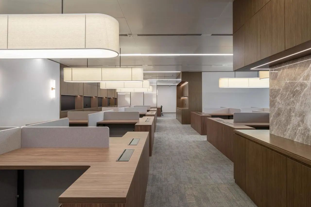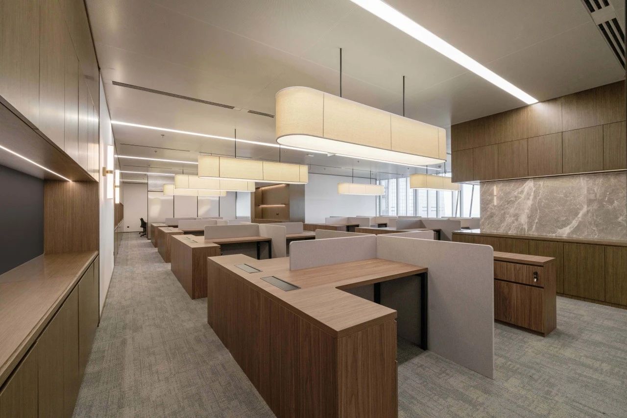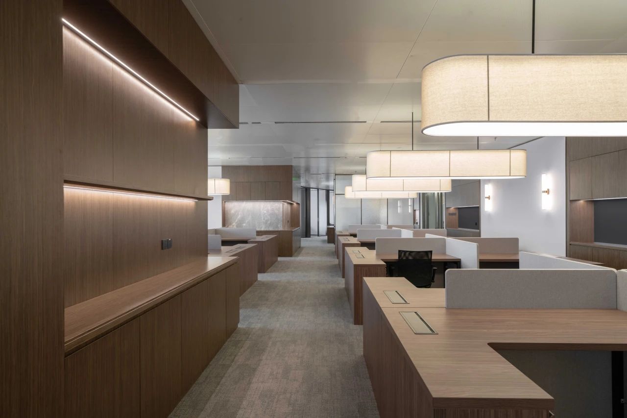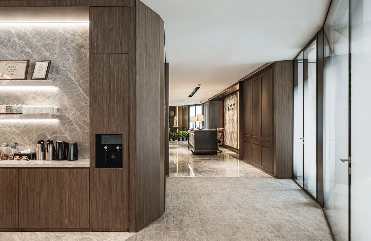 一期的空间设计以追溯英美法学历史渊源为联想主线,围绕“荣誉、责任、勇气、高尚”价值为核心的精神崇尚,刻画描绘了以古典理想精英主义贤能为参照的活动场景。空间再现了行业历史经典氛围,同时也映射了企业对高度专业、卓越品质的真切追求与初心。