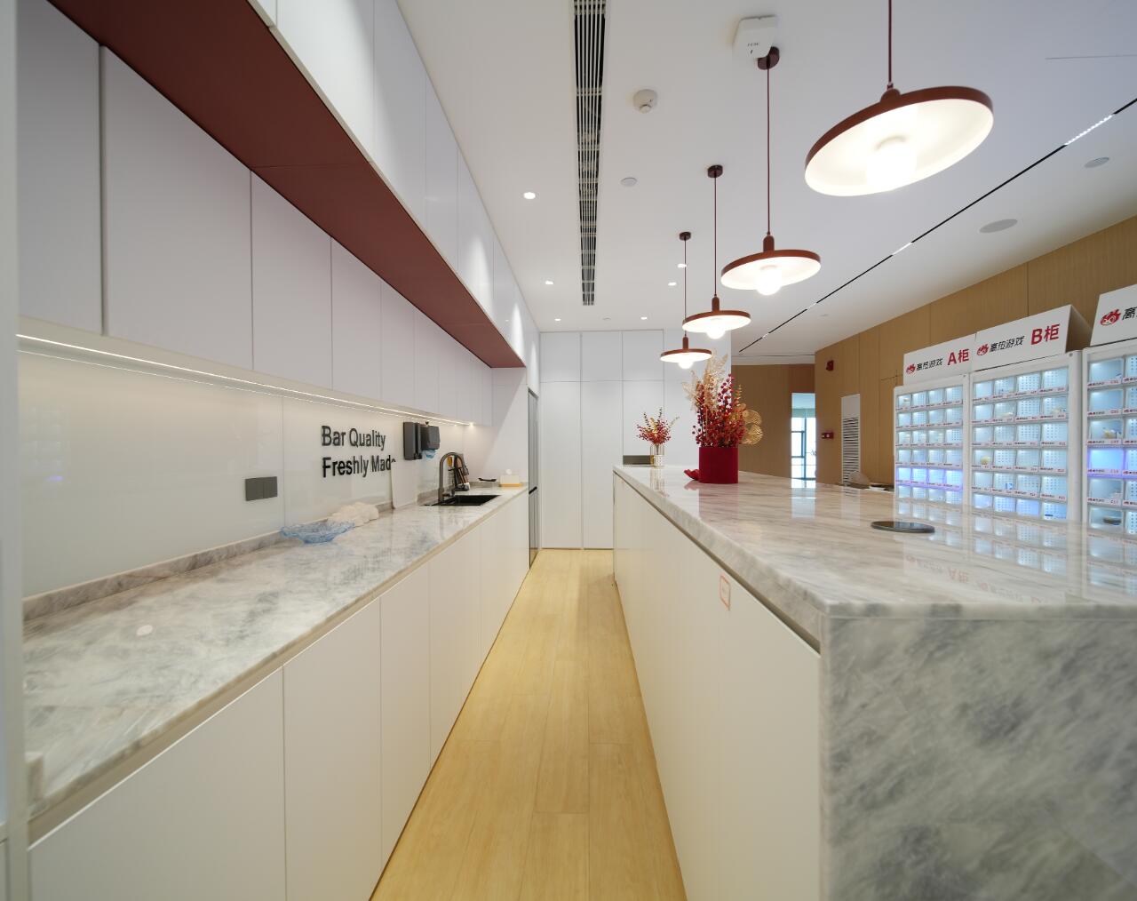 新的空间延续了一期的整体色调,材质明度上的适当调整使得在保有原有沉稳典雅的空间基础上,融入更为干练明朗的视觉印象。