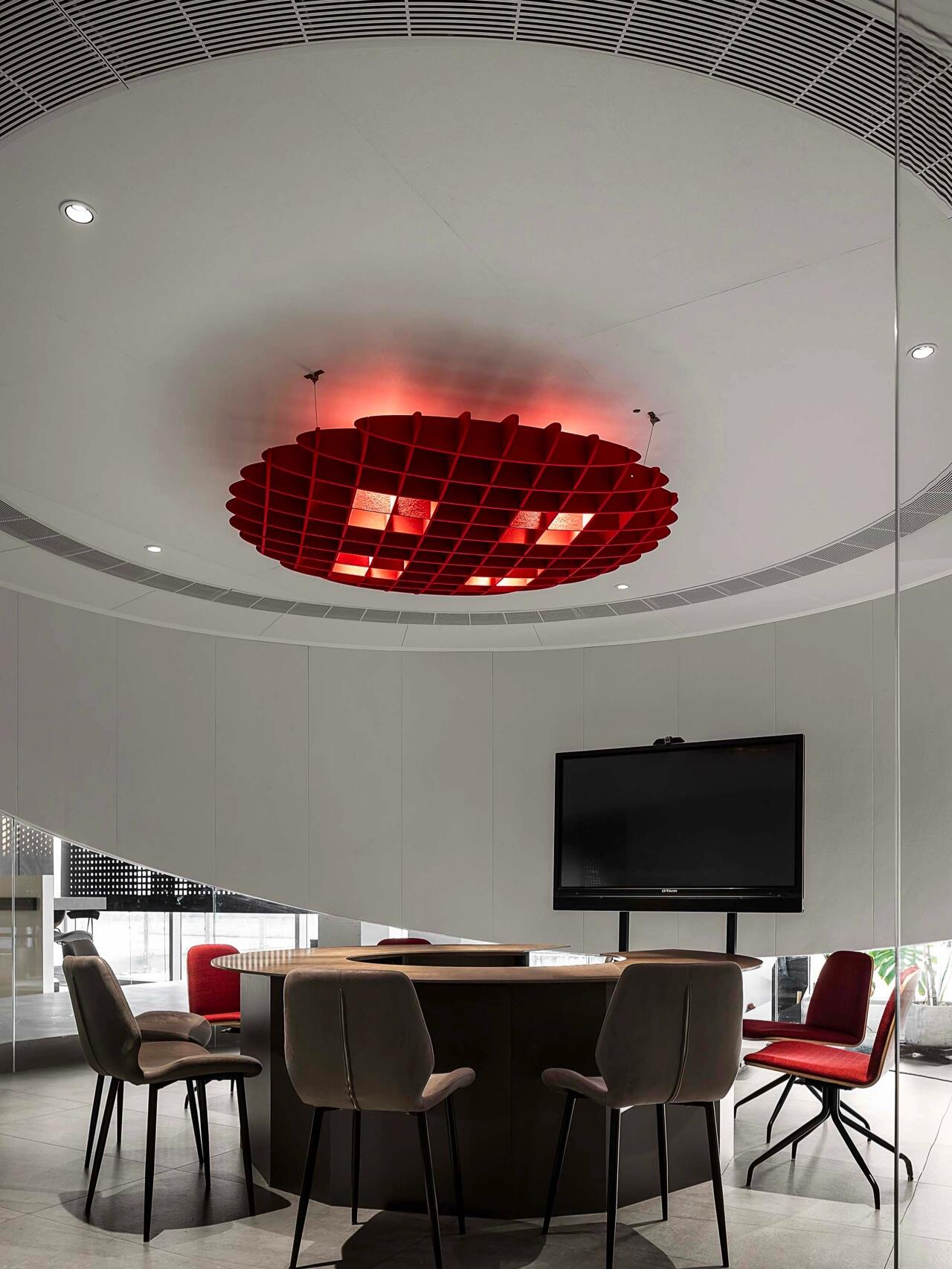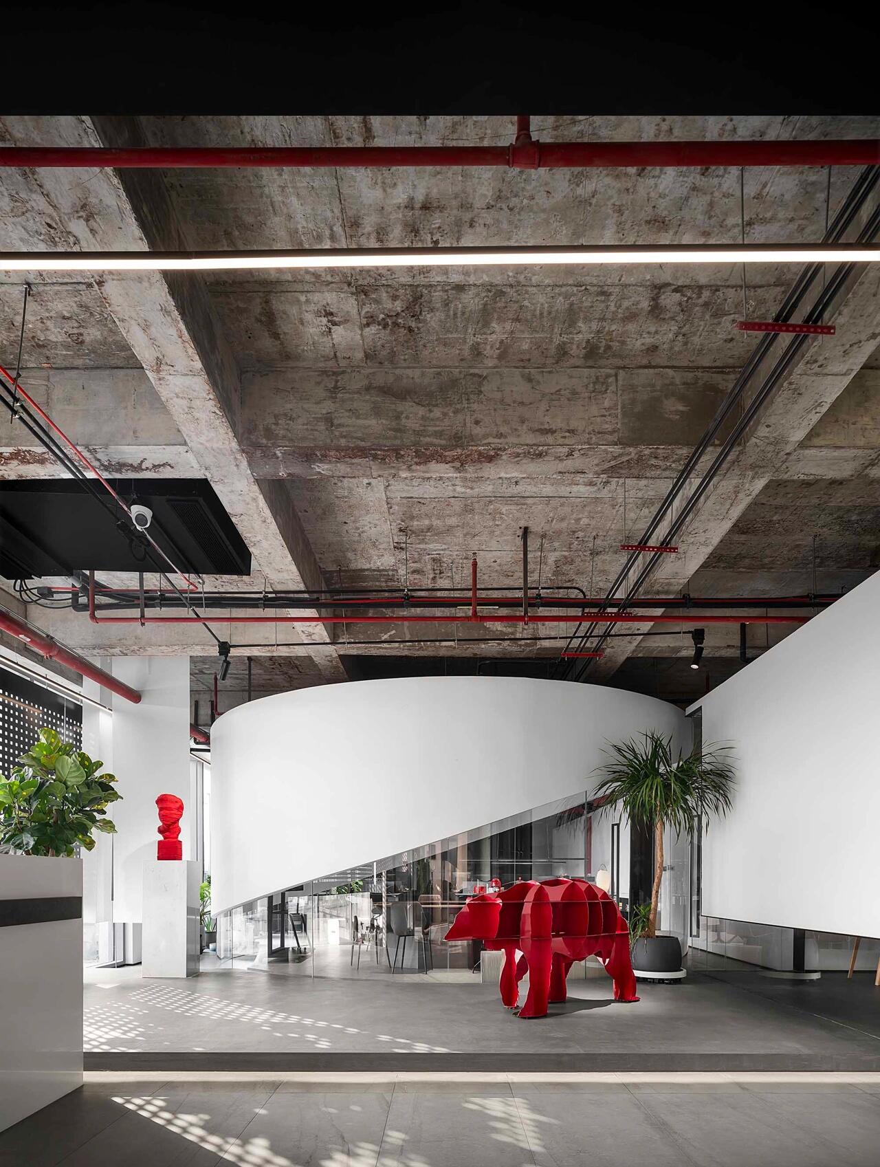 以冷静的黑白纯色来延展空间尺度与艺术张力,红色代表热爱,活力,坚持,灵感,那黑与白则代表着精益求精,一丝不苟,孜孜追求……
