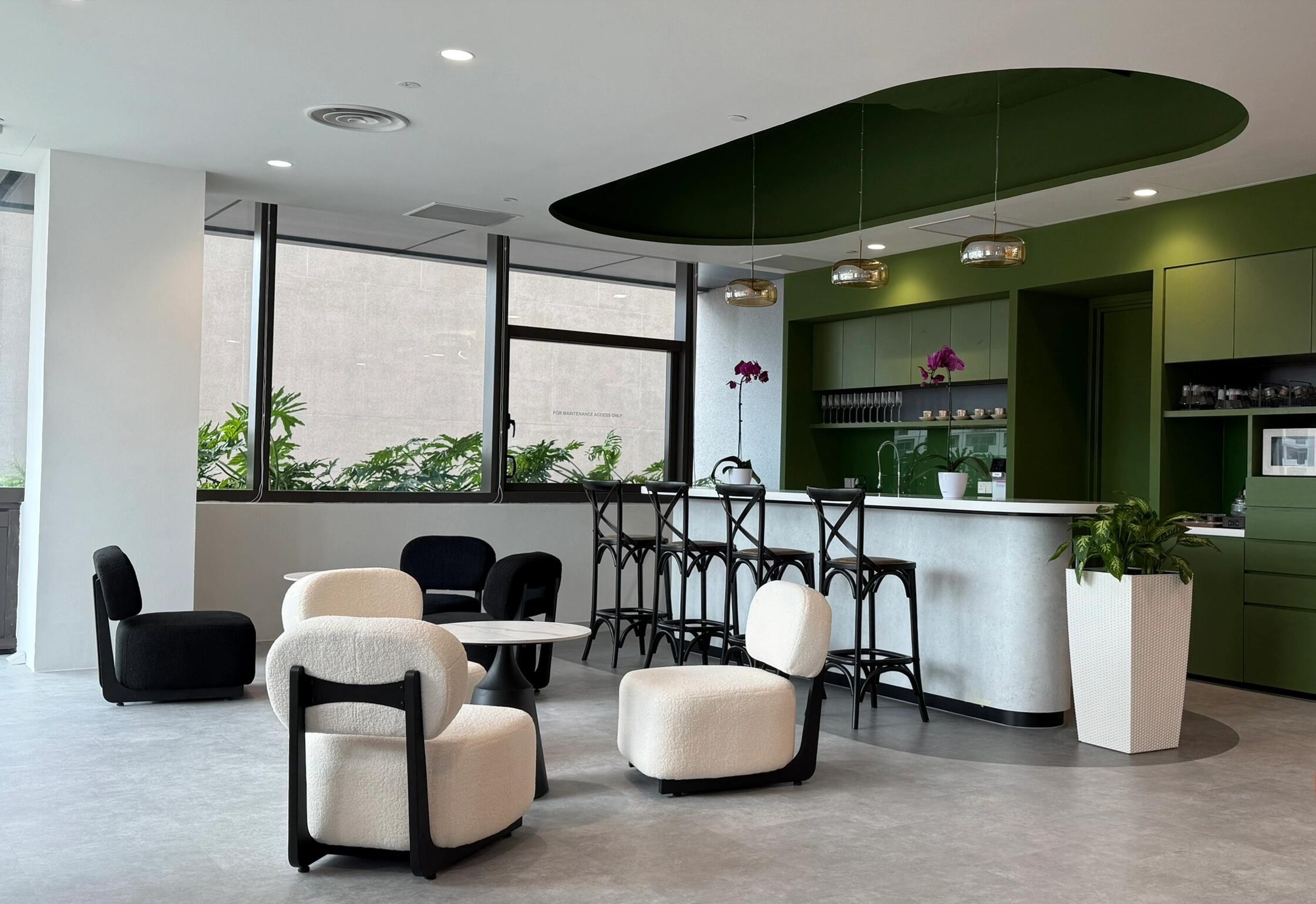 社交与休闲兼备:吧台座位结合沙发区,适合团队小聚、休憩或非正式讨论。