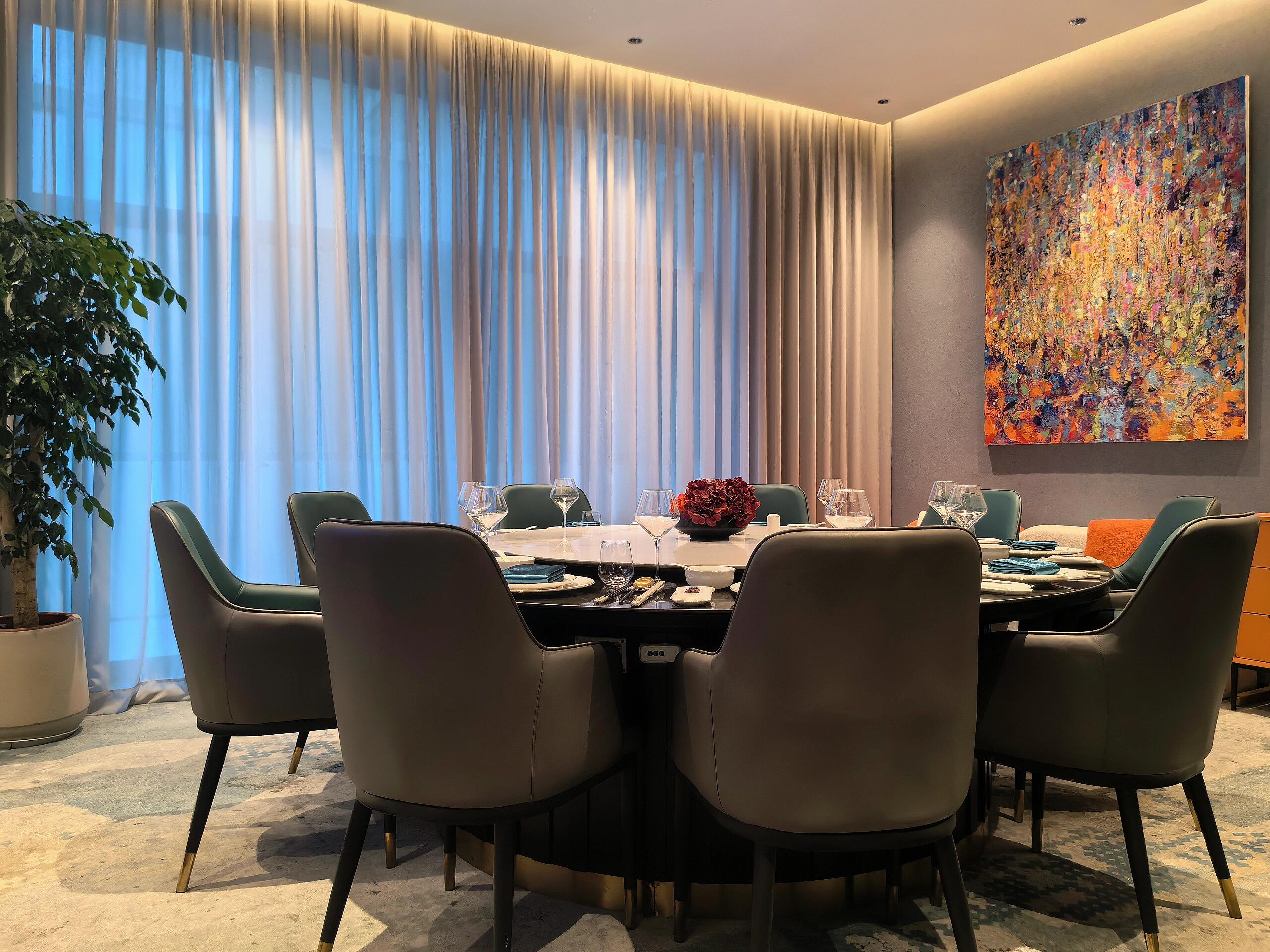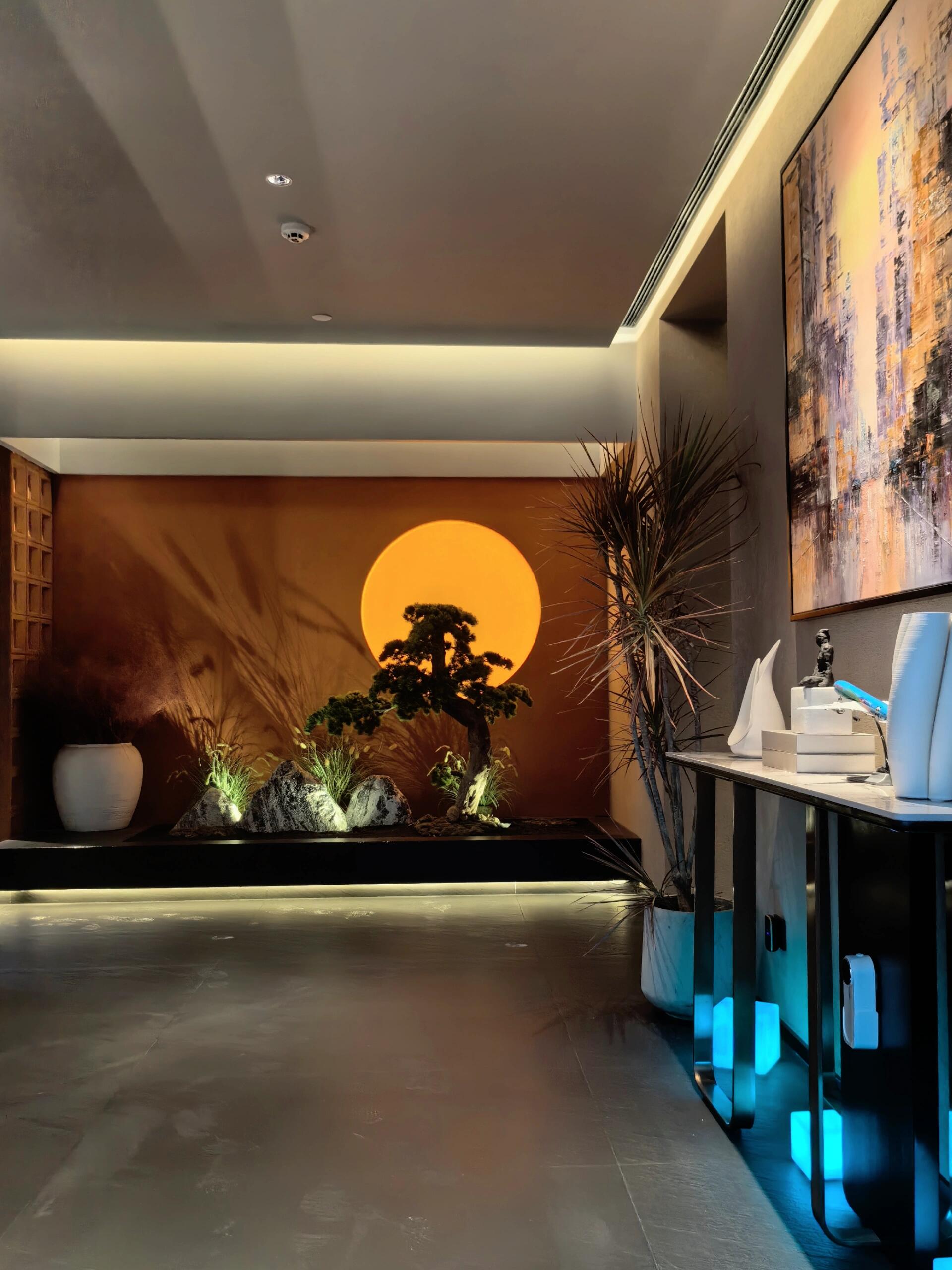 以米白、浅灰为基底,辅以深绿、暖木色作为点缀,营造沉稳且充满活力的空间感。