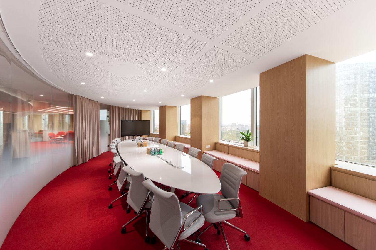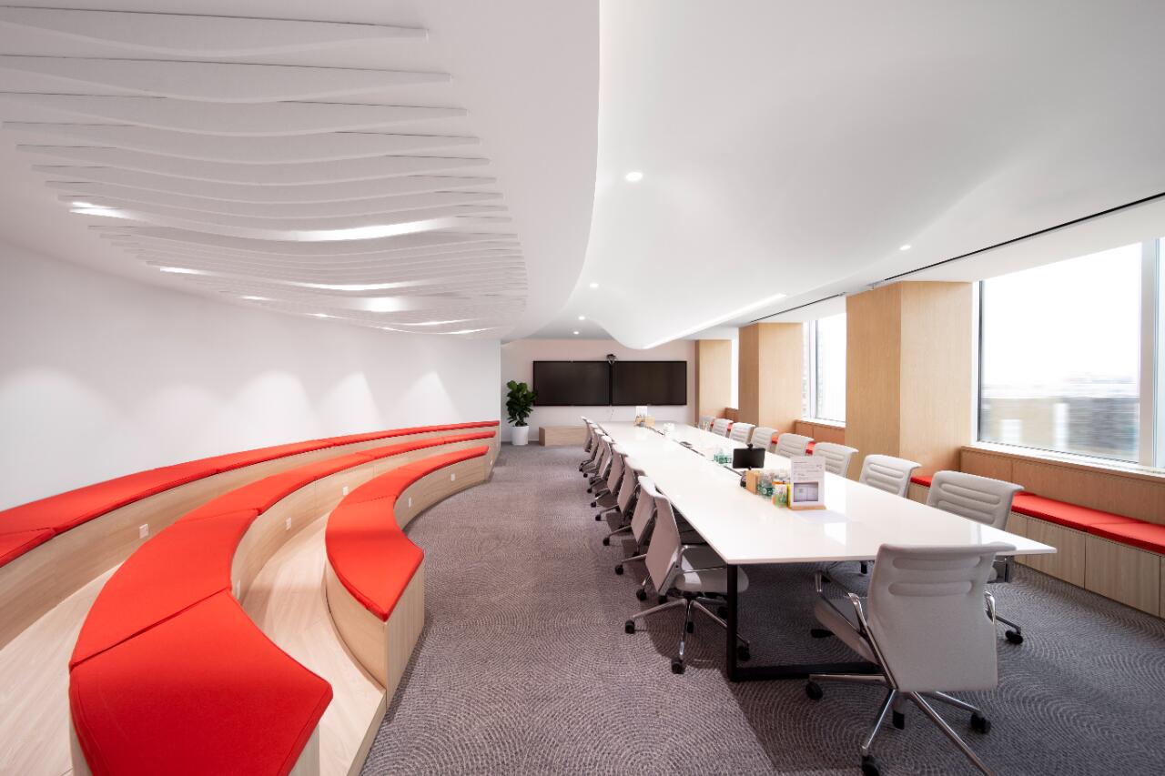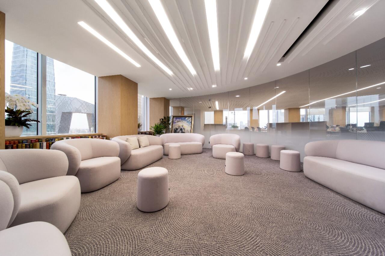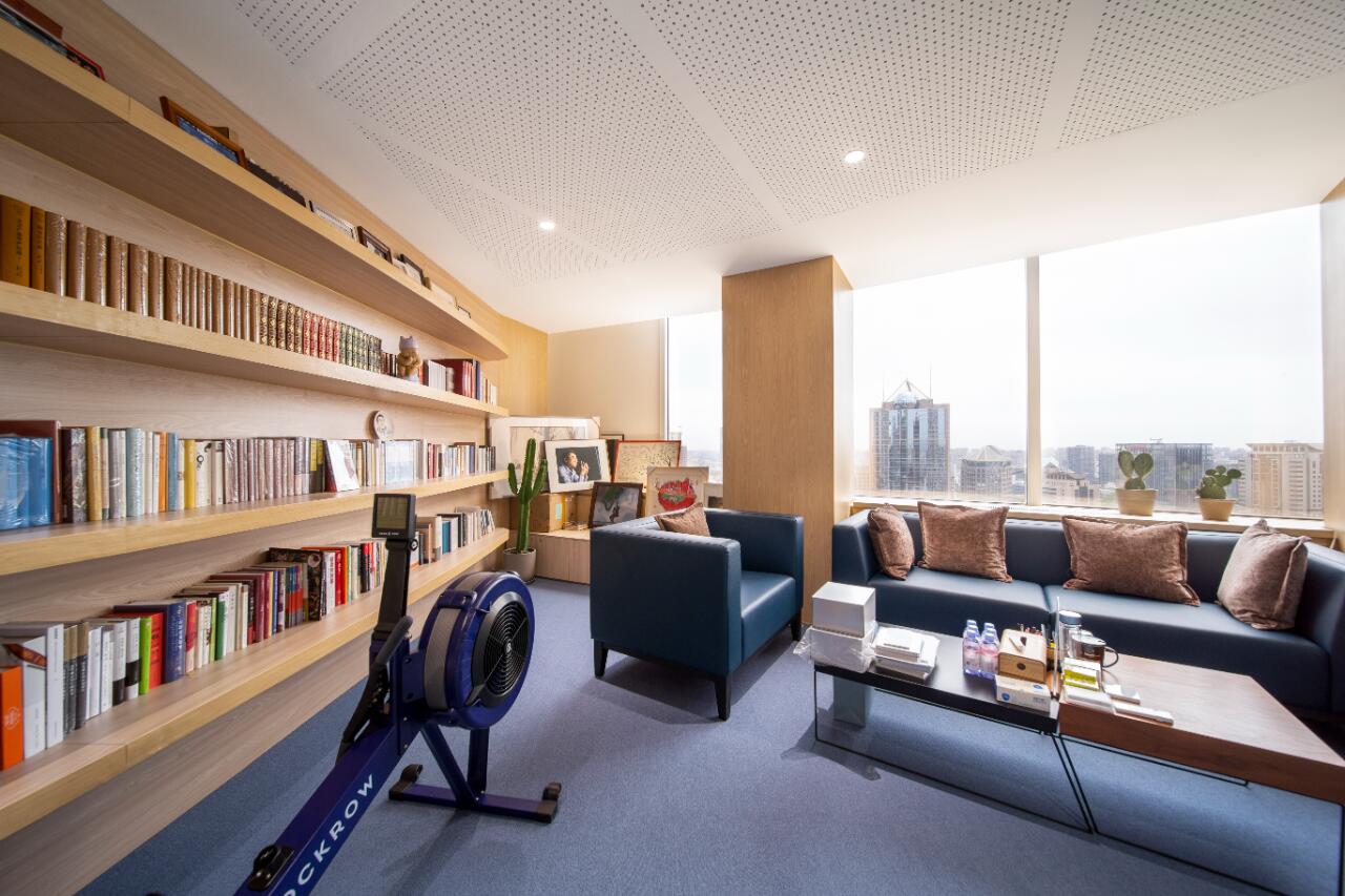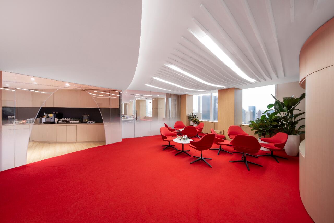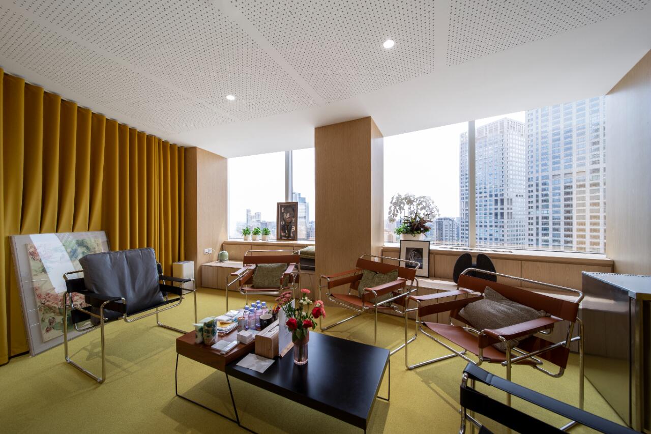 3-4楼则被定义为企业的研发和管理办公空间。3楼的空间环绕一个精致的瓦砖小花园展开,蜿蜒的连廊实现了室内与室外空间的最大化连通,为员工提供了一个绿意盎然的休息和思考空间,使自然之美与办公空间相融合。