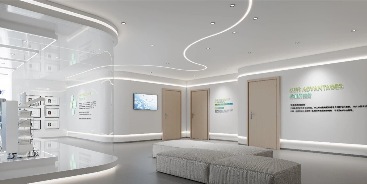 将极简与现代风格完美结合,营造了一个富有质感的工作空间。通过细腻的细节和简洁的线条,不仅让空间更有层次感,还突显了专业与品味。整体装修采用了简约的风格,以灰白为主色调,经典又大气。白色的墙壁搭配灰色的防滑地面,干净利落,再加上木质柜子的点缀,为整个空间增添了一丝温暖和自然的气息。