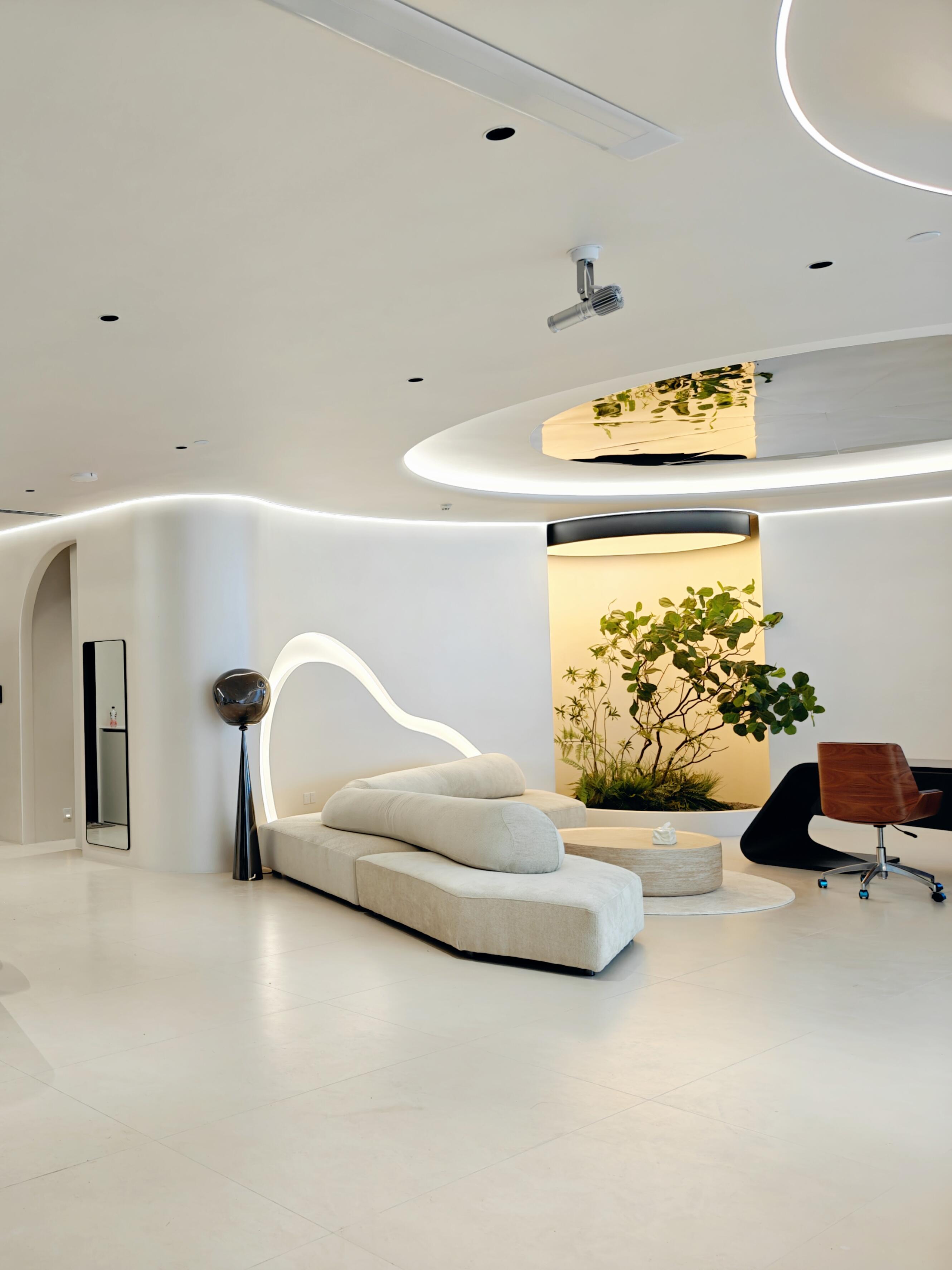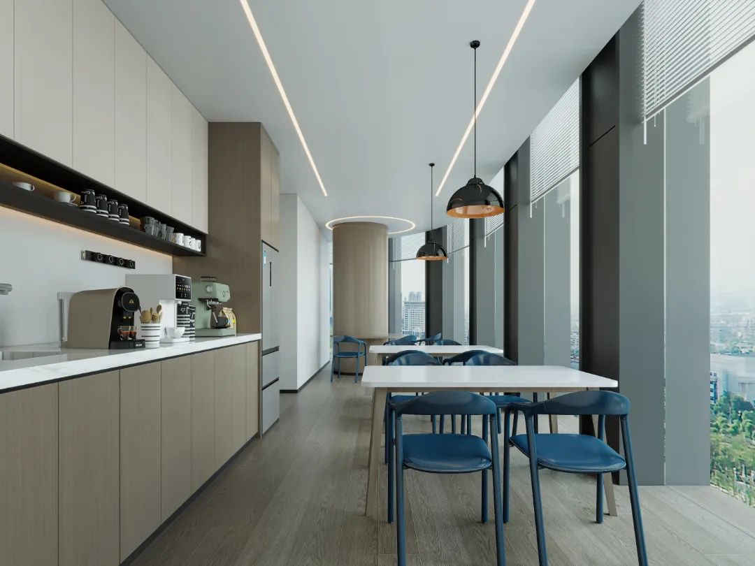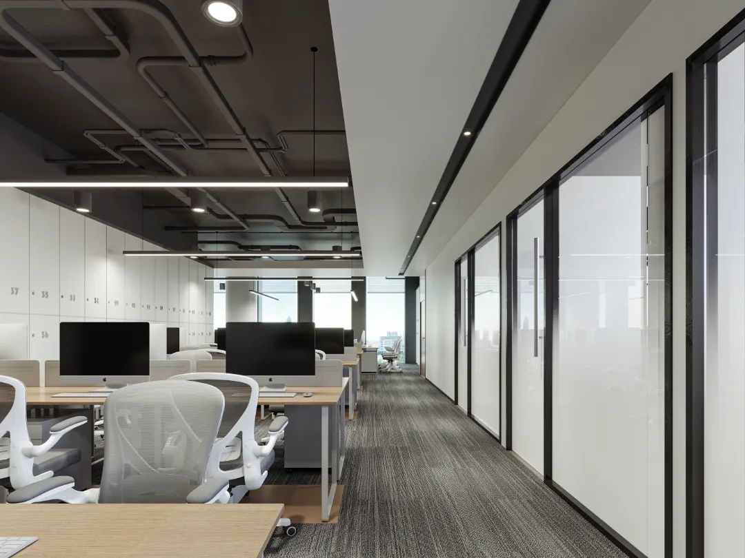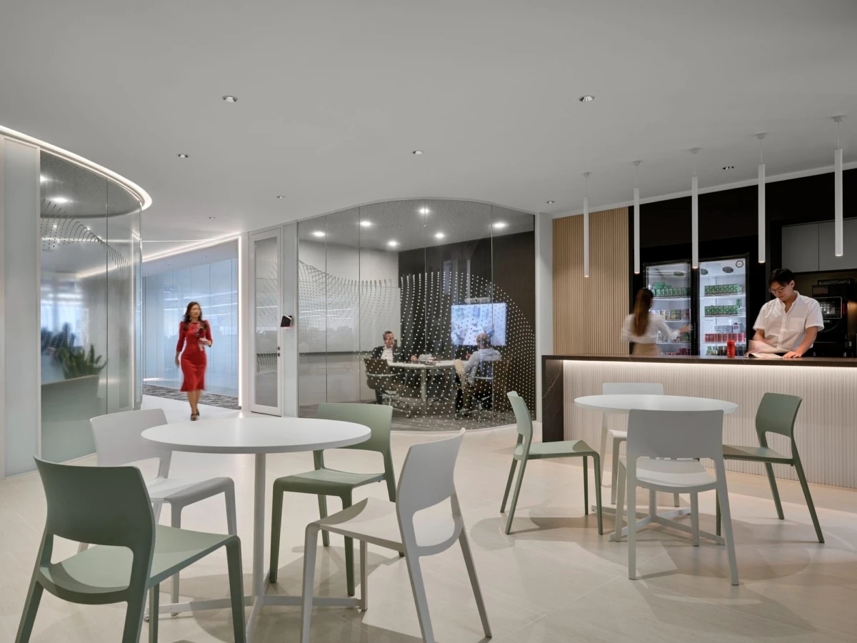 开放式的办公区,大面积的玻璃幕墙,让自然光线如流水般倾泻而入,每一寸角落都被温柔地照亮。空间布局遵循着极简主义的原则,没有多余的隔断和繁复的装饰,自然纯粹。会议区简洁大气的会议桌,搭配着舒适的椅子,墙上挂着先进的投影设备和智能白板。这里不仅是讨论决策的场所,更是思想碰撞与交流的舞台。