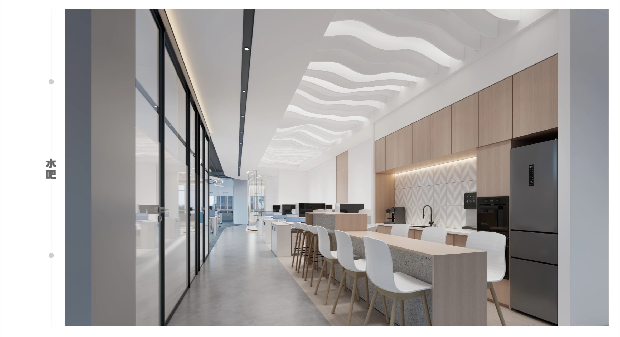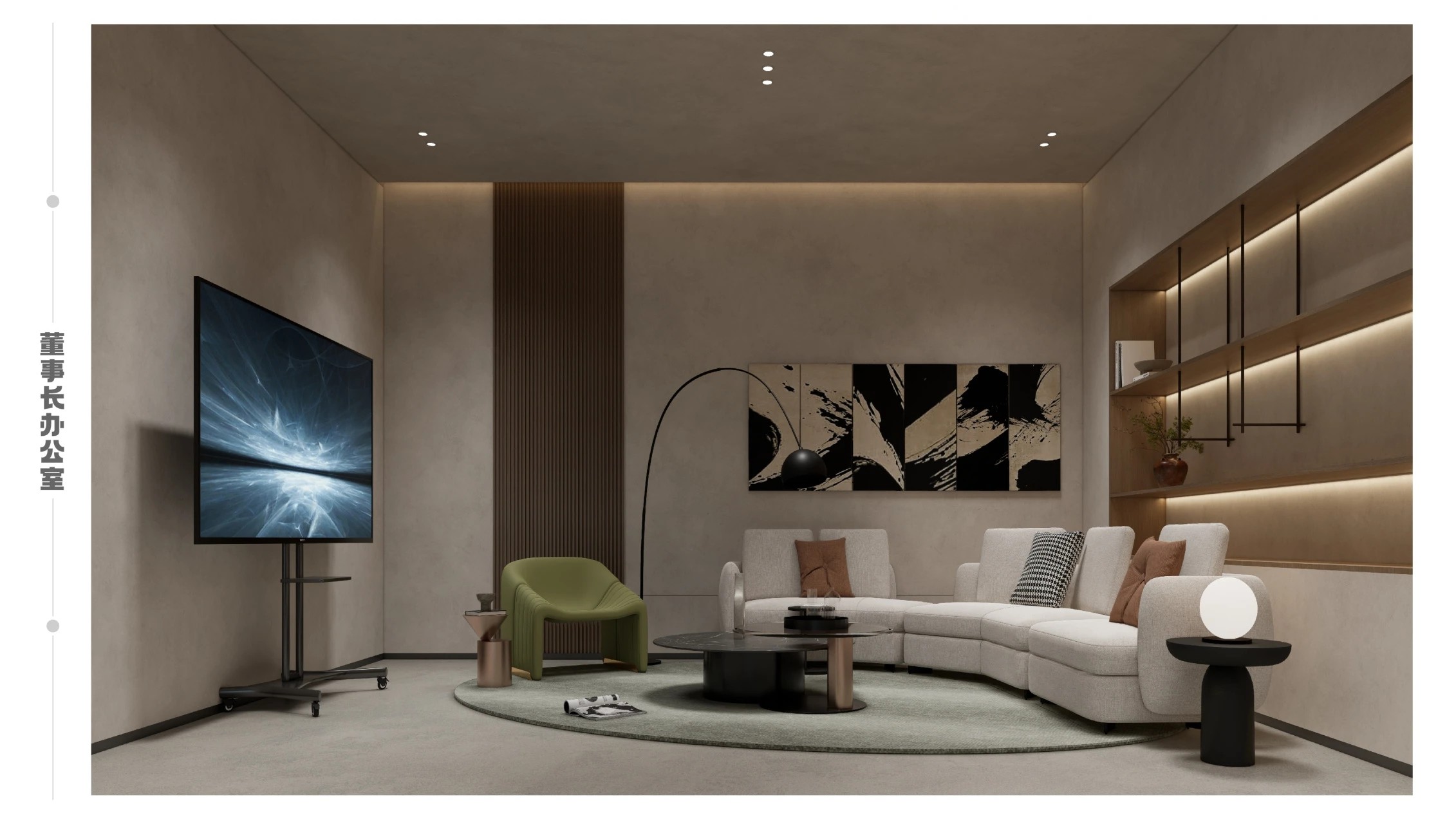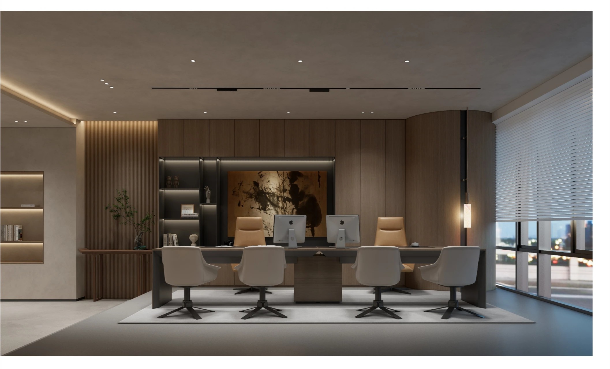 稳定而温润的木材,与现代感十足的金属、玻璃结合,既体现建筑行业的专业性,也带来自然的温暖感。柔和流动的空间形式:避免生硬割裂的结构,以曲线或开放式布局,让空间更具灵动性与人文关怀。