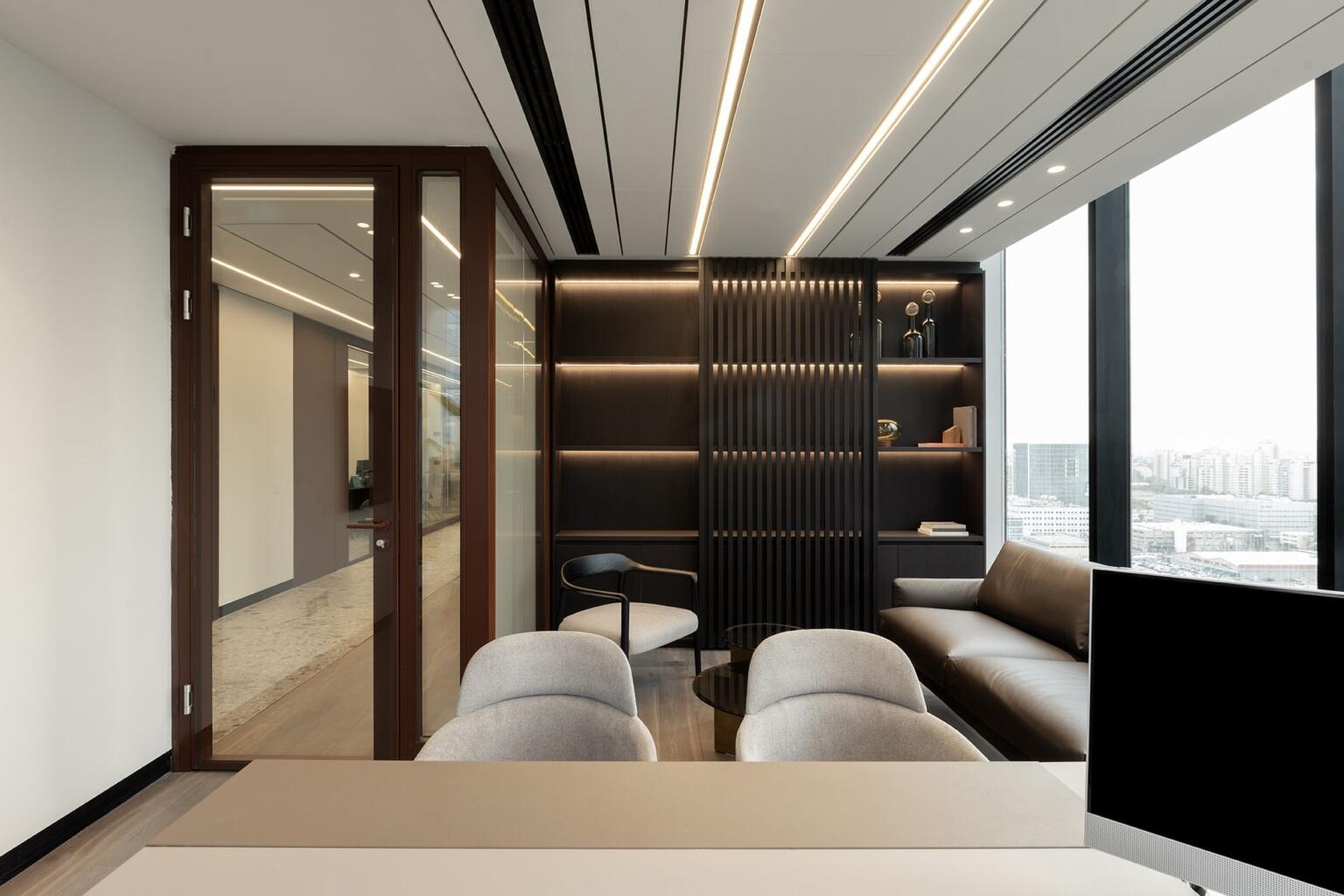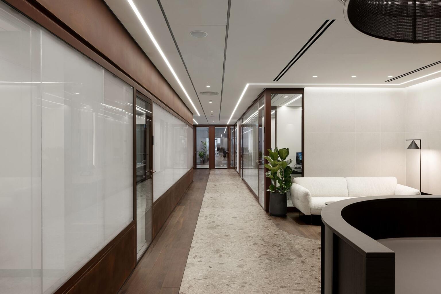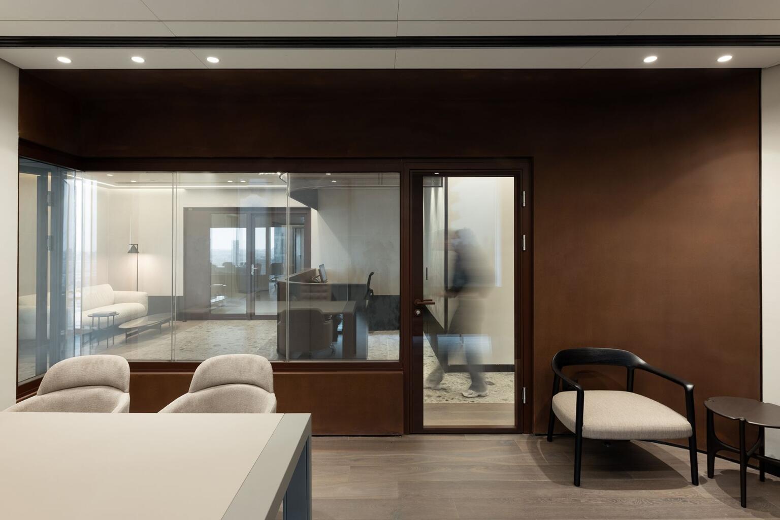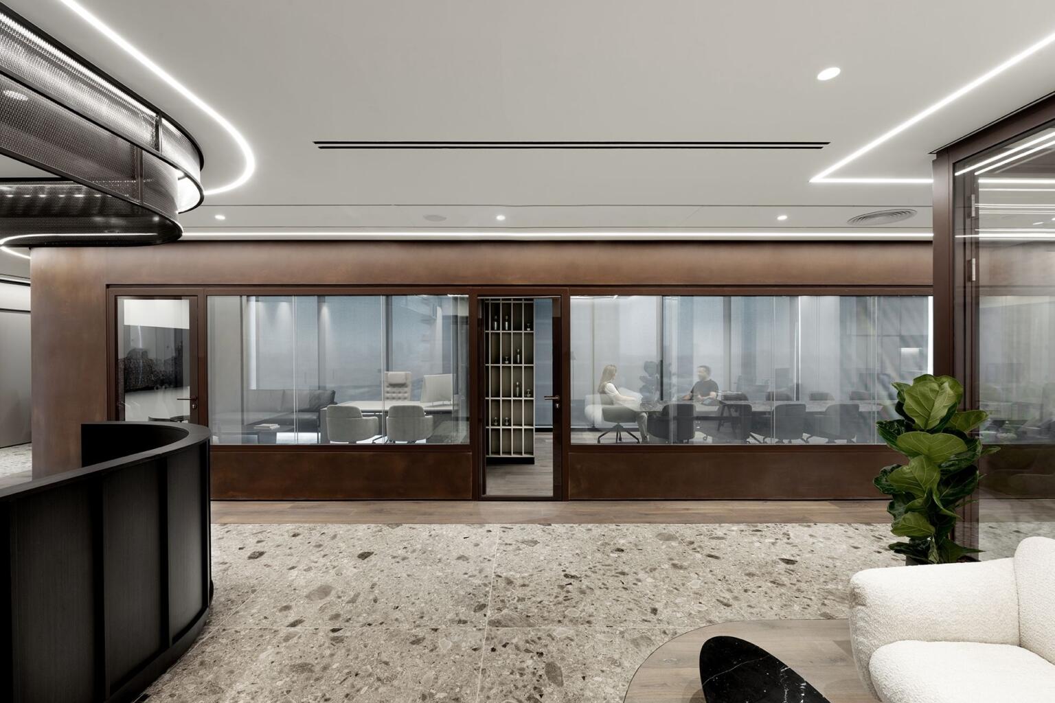 稳定而温润的木材,与现代感十足的金属、玻璃结合,既体现建筑行业的专业性,也带来自然的温暖感。柔和流动的空间形式:避免生硬割裂的结构,以曲线或开放式布局,让空间更具灵动性与人文关怀。