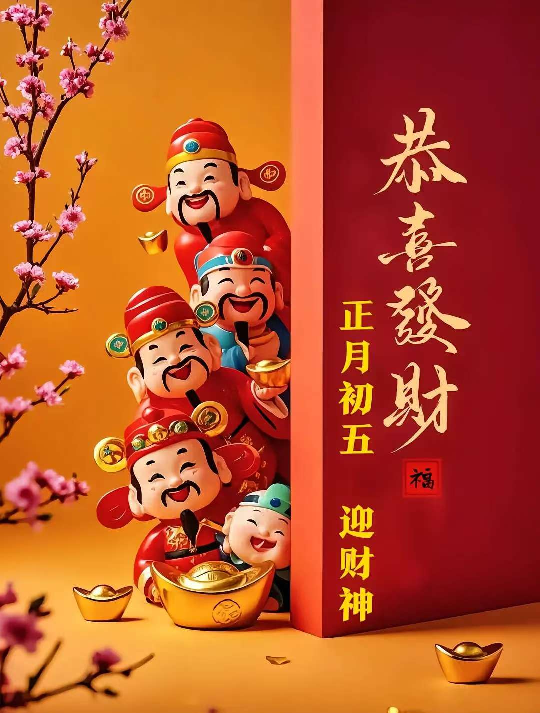 迎财神,财运到!福气到!大财小财,八方来财;养财蓄财,年年添财;招财进财,和气生财;财气冲天,运亨通!生意兴隆,财源滚滚,大展宏图,飞黄腾达!莫愁千里路,自有到来风。海阔凭鱼跃,天高任鸟飞。一鸣从此始,相望青云端。四灵济世红尘祉,尽显神通庇佑君。新岁扶我青云志,我自踏雪至山巅。冲霄呵气即成云,一路长虹耀九霄!赚得盆满钵满,生活美满如意!