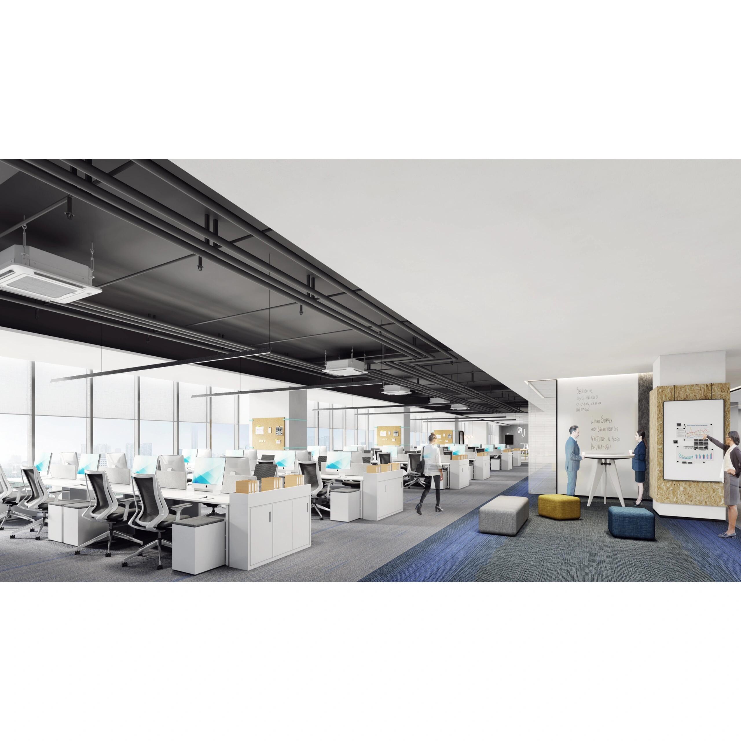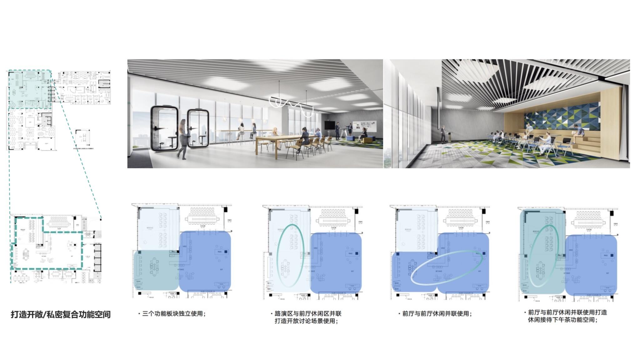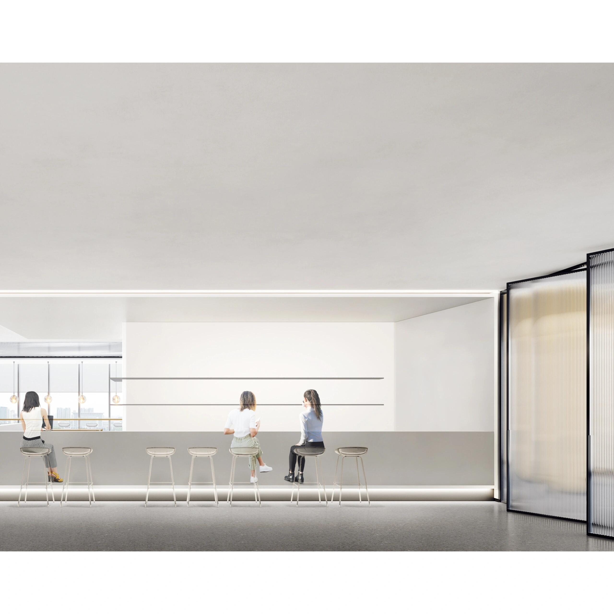 我们以面向未来的敏捷办公场所为设计目标,用简洁并富有未来感的手法和材质,灵活重组公共区域与固定办公区域的界限,让多种使用场景可以被创造和发生,也在同时鼓励员工们创造性地使用每一处角落。