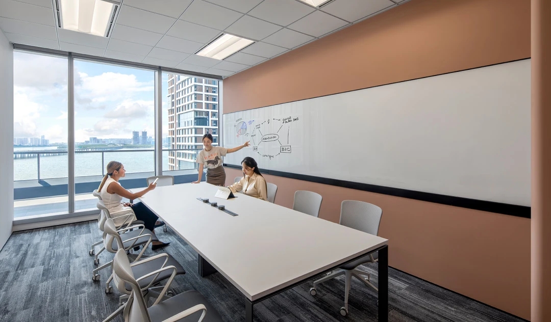 前区是个真正的“多面手”!隔断一关,大型会议或培训模式秒切换;隔断打开,再搭配茶水区,各类内部活动、接待活动都能轻松Hold住。无论正式或轻松,前区都能完美应对!大家都超爱这里!