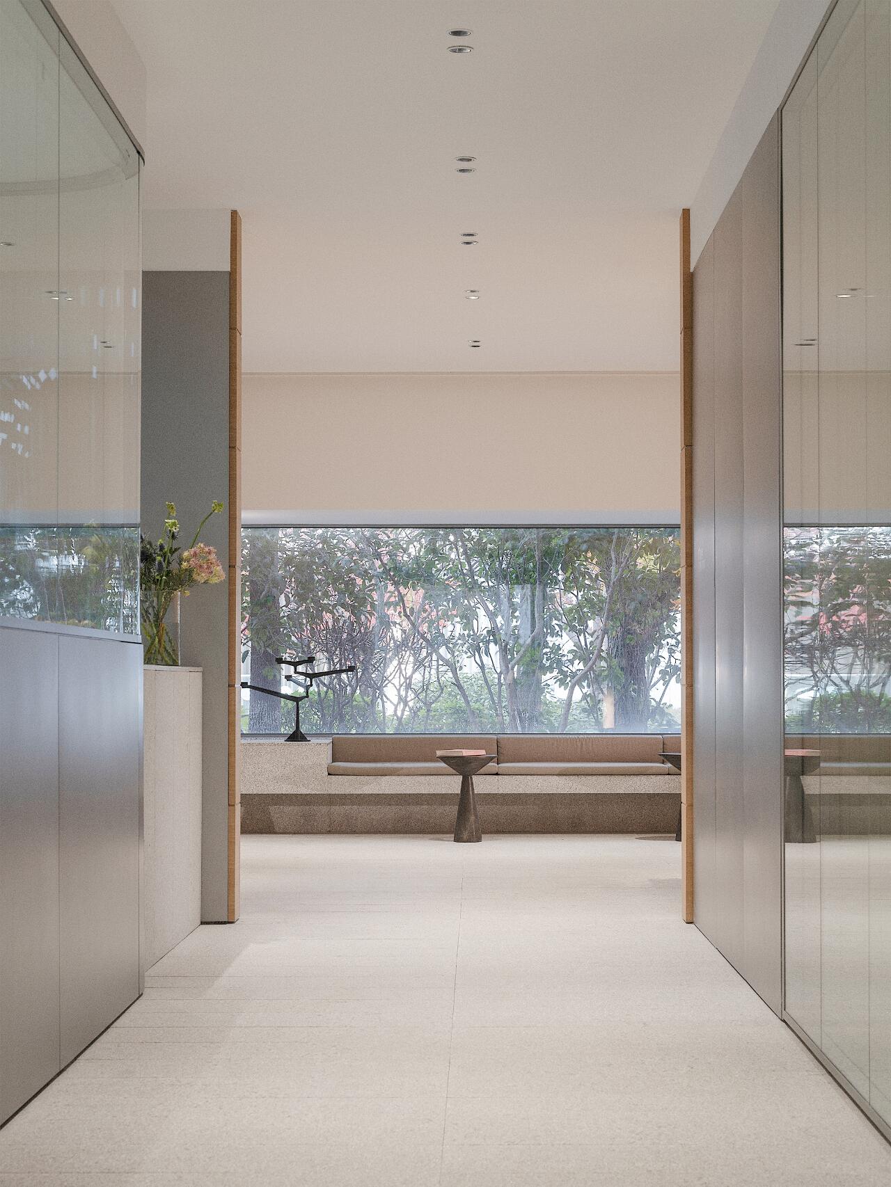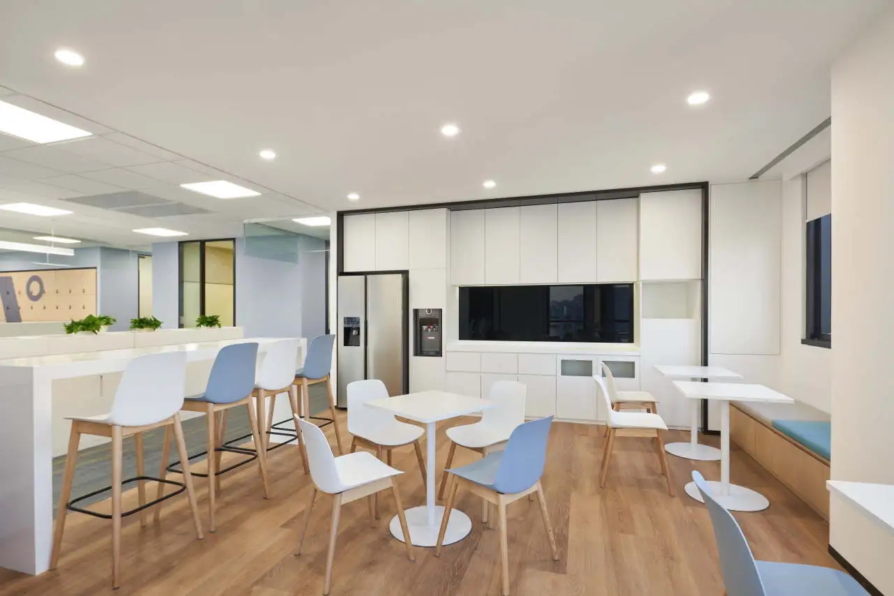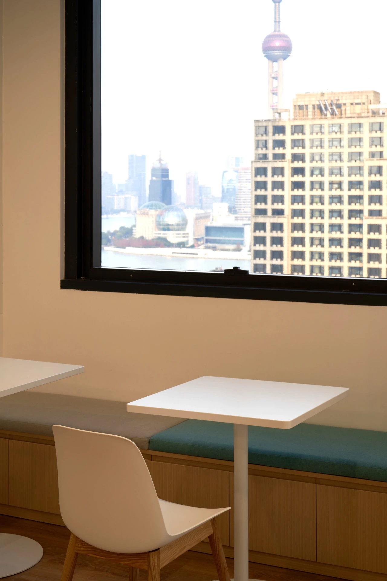 在空间设置方面,华轮威尔森上海办公室没有使用传统封闭式的处理,整体使用了木纹元素和织物,穿插了绿植,玻璃隔断、等塑造丰富多样的空间感。