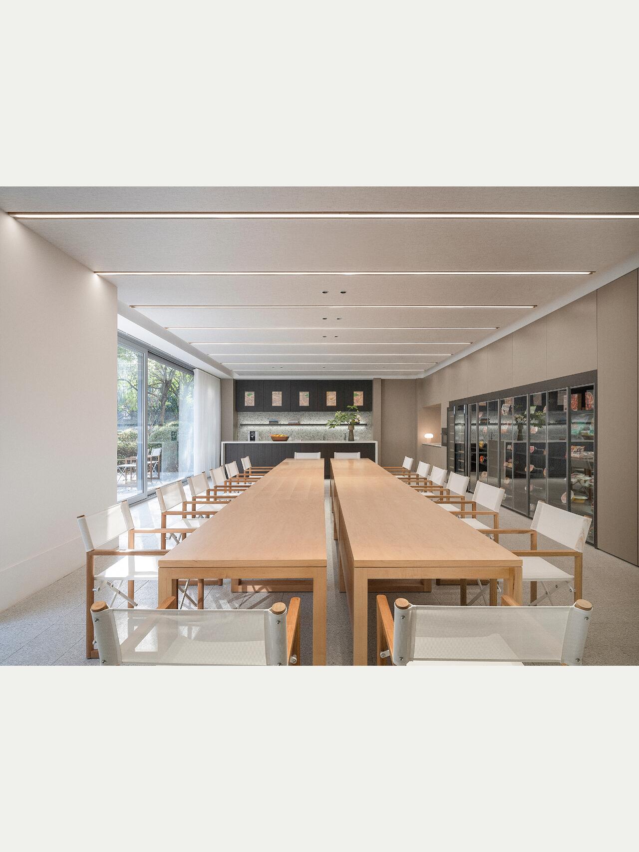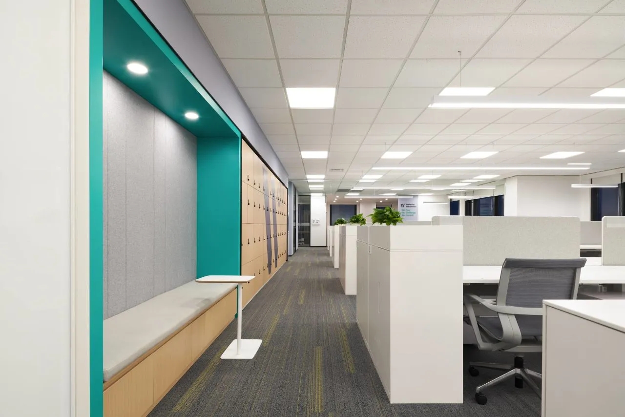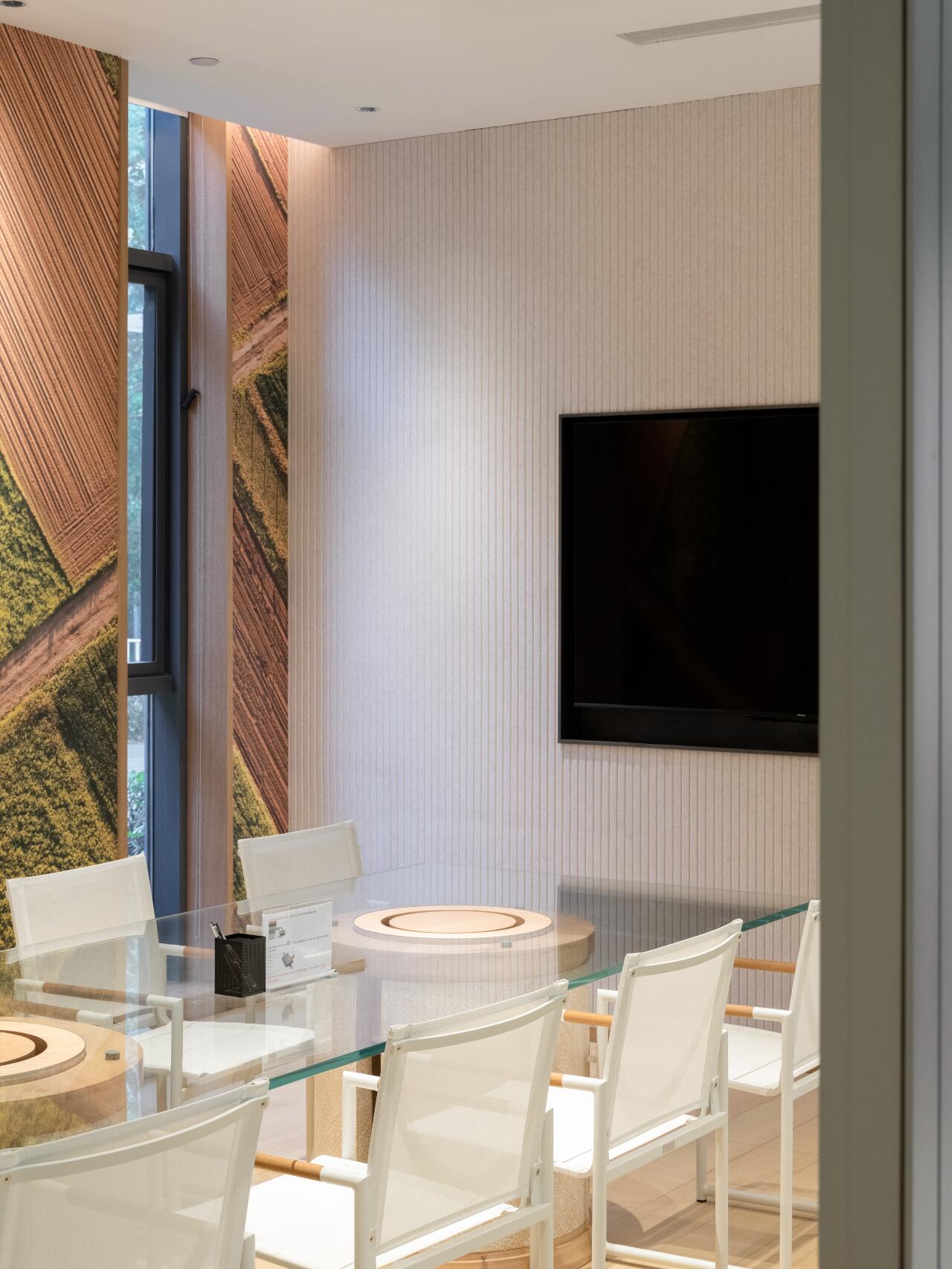 在空间设置方面,华轮威尔森上海办公室没有使用传统封闭式的处理,整体使用了木纹元素和织物,穿插了绿植,玻璃隔断、等塑造丰富多样的空间感。