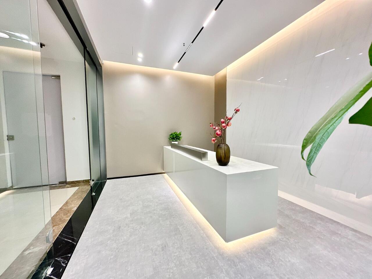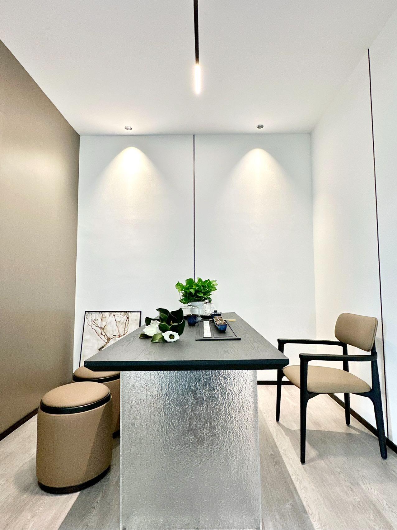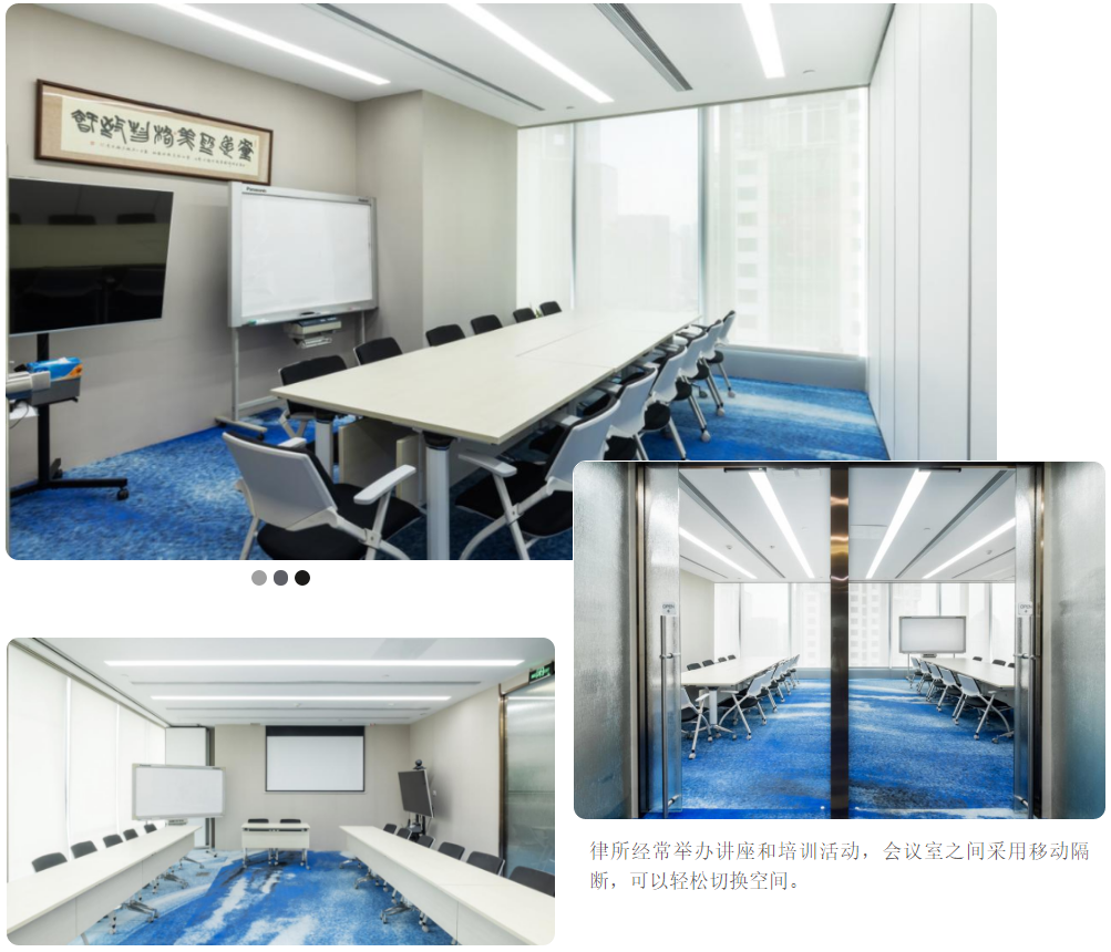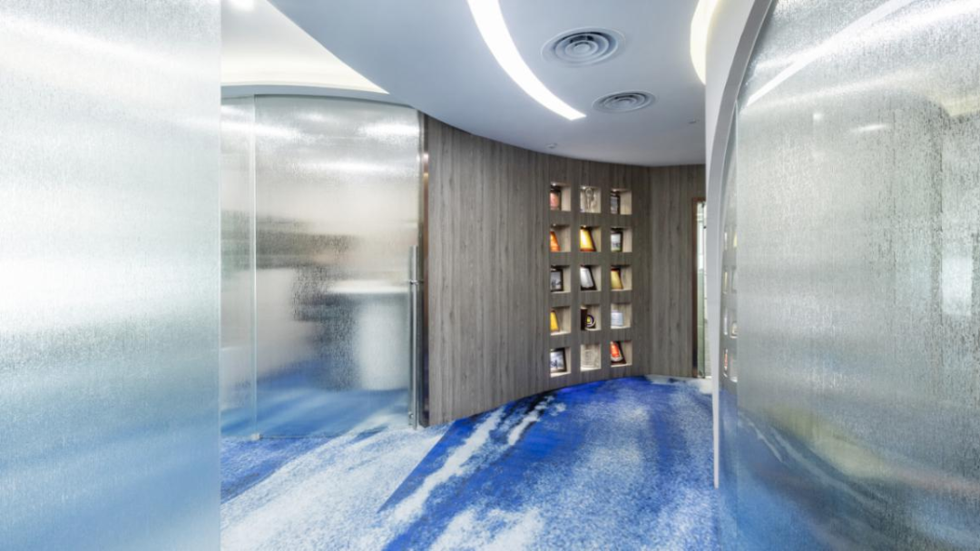 利用不同弧度的隔断,划分出前厅和接待室,山形的玻璃结合蔚蓝色的地毯,传达出里格律所独有的睿智以及海纳百川的气魄,同时“蔚蓝”音译为‘Win-Land’,寓意“胜利之地”!