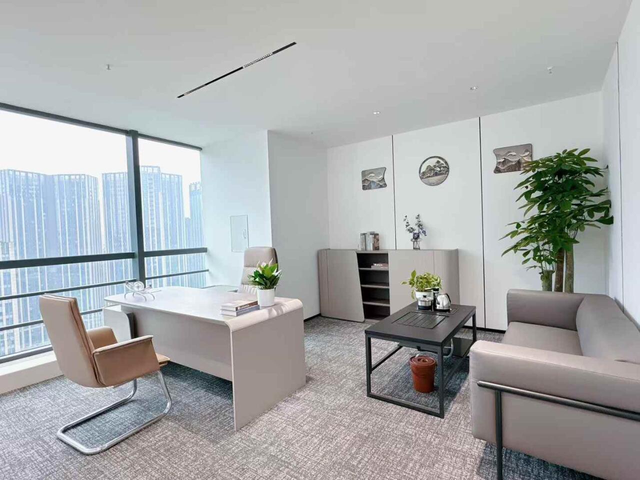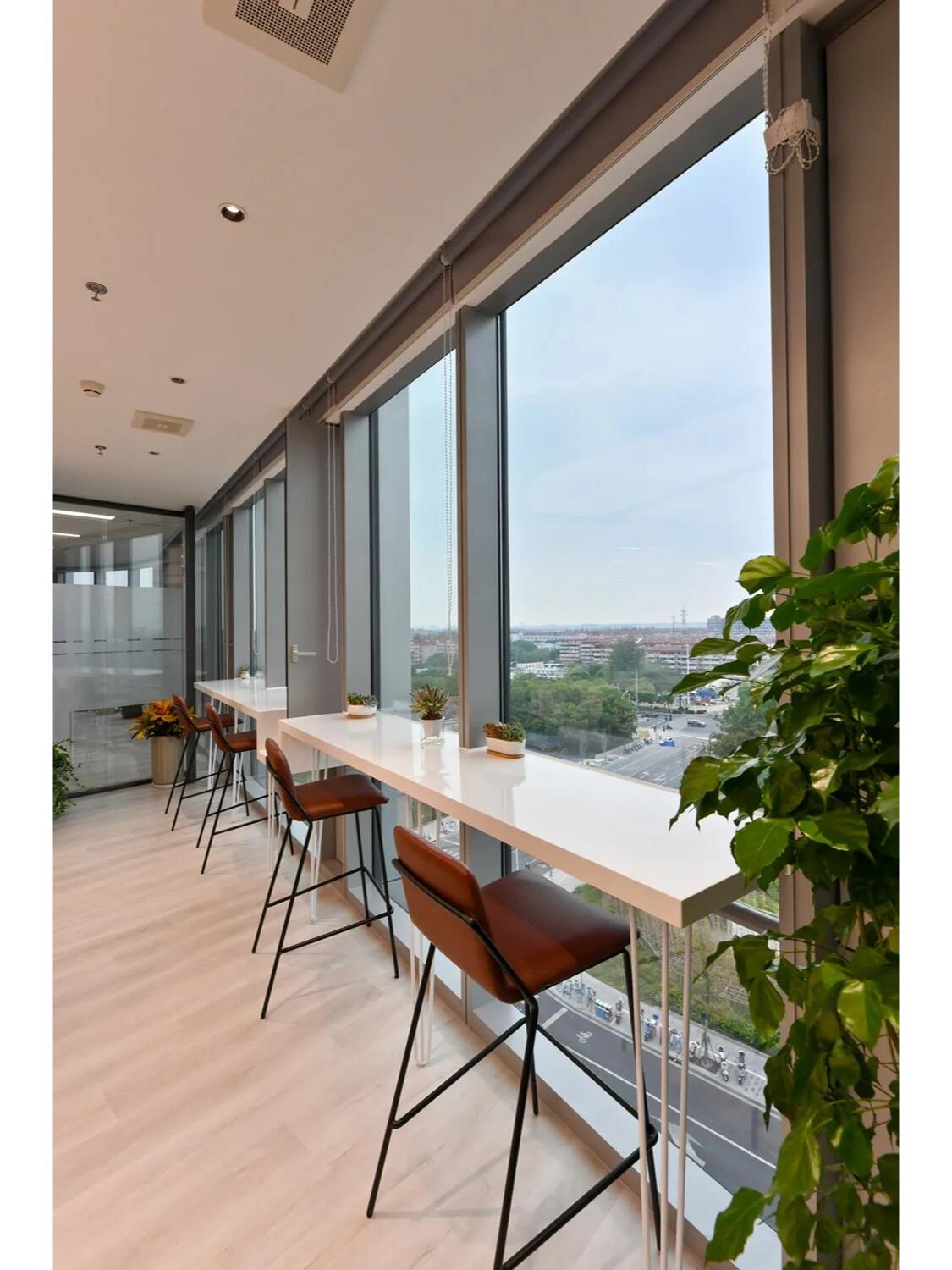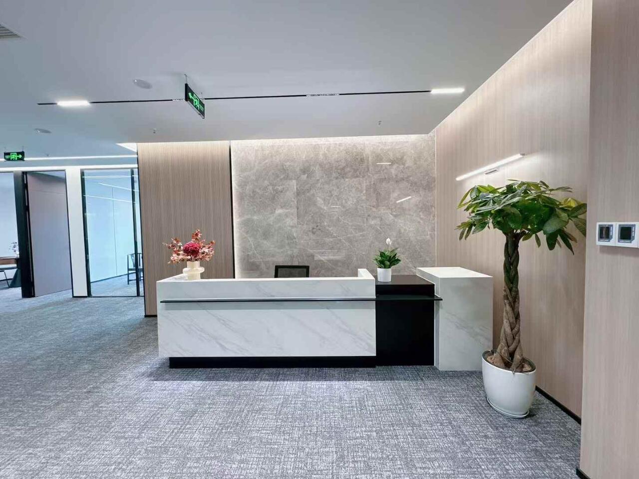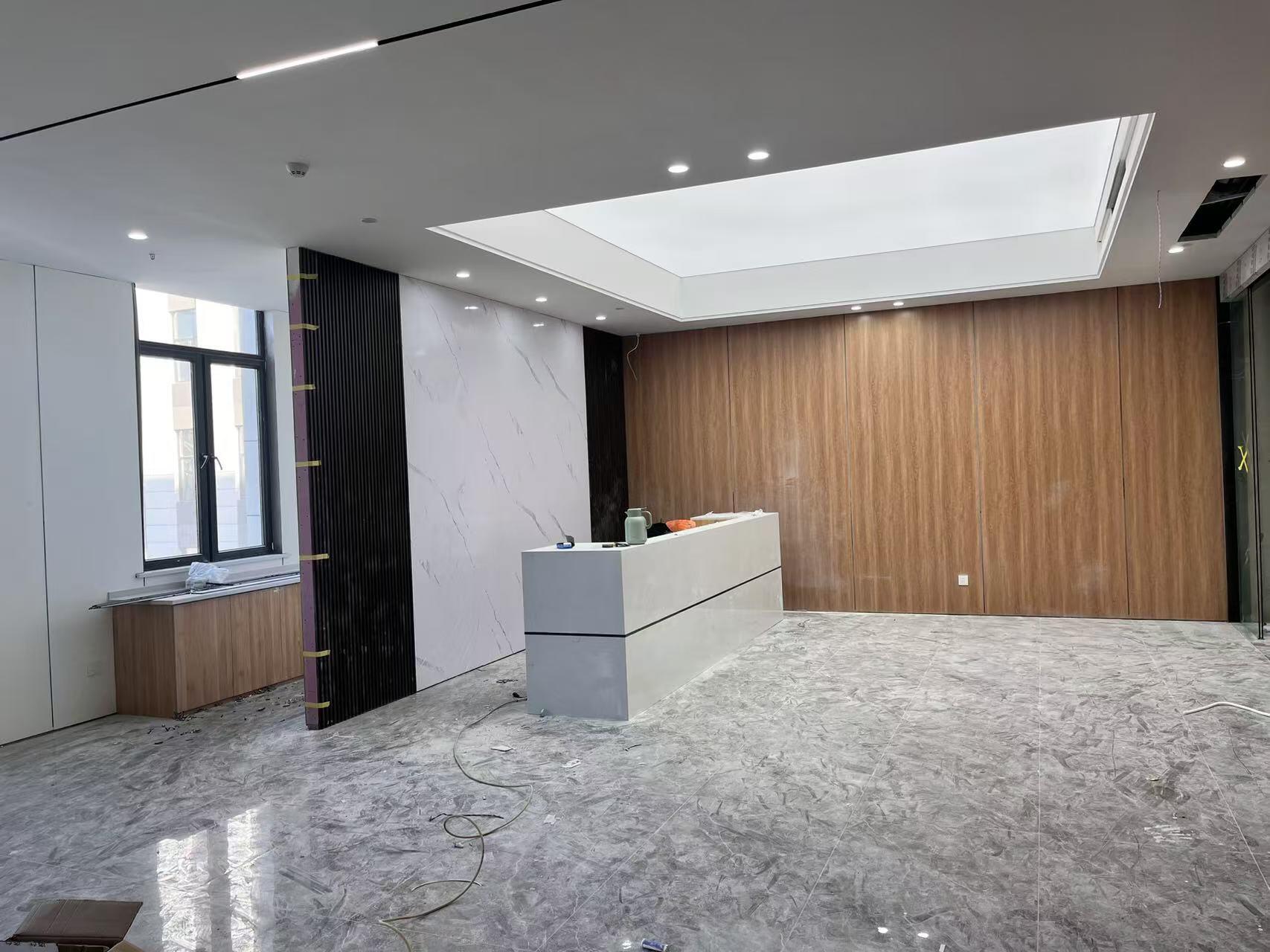 在接待前厅左右两边各设置了一个大会议室,其中一个是现代酷灰的可二合一的会议室,另一个是稳重优雅的行政会议室。感谢成品隔断供应商卡莱斯卓的紧密配合和支持,在设计师的要求下,把LED灯带嵌入了双层玻璃隔断中。让整个会议室区域看上去充满科技感!