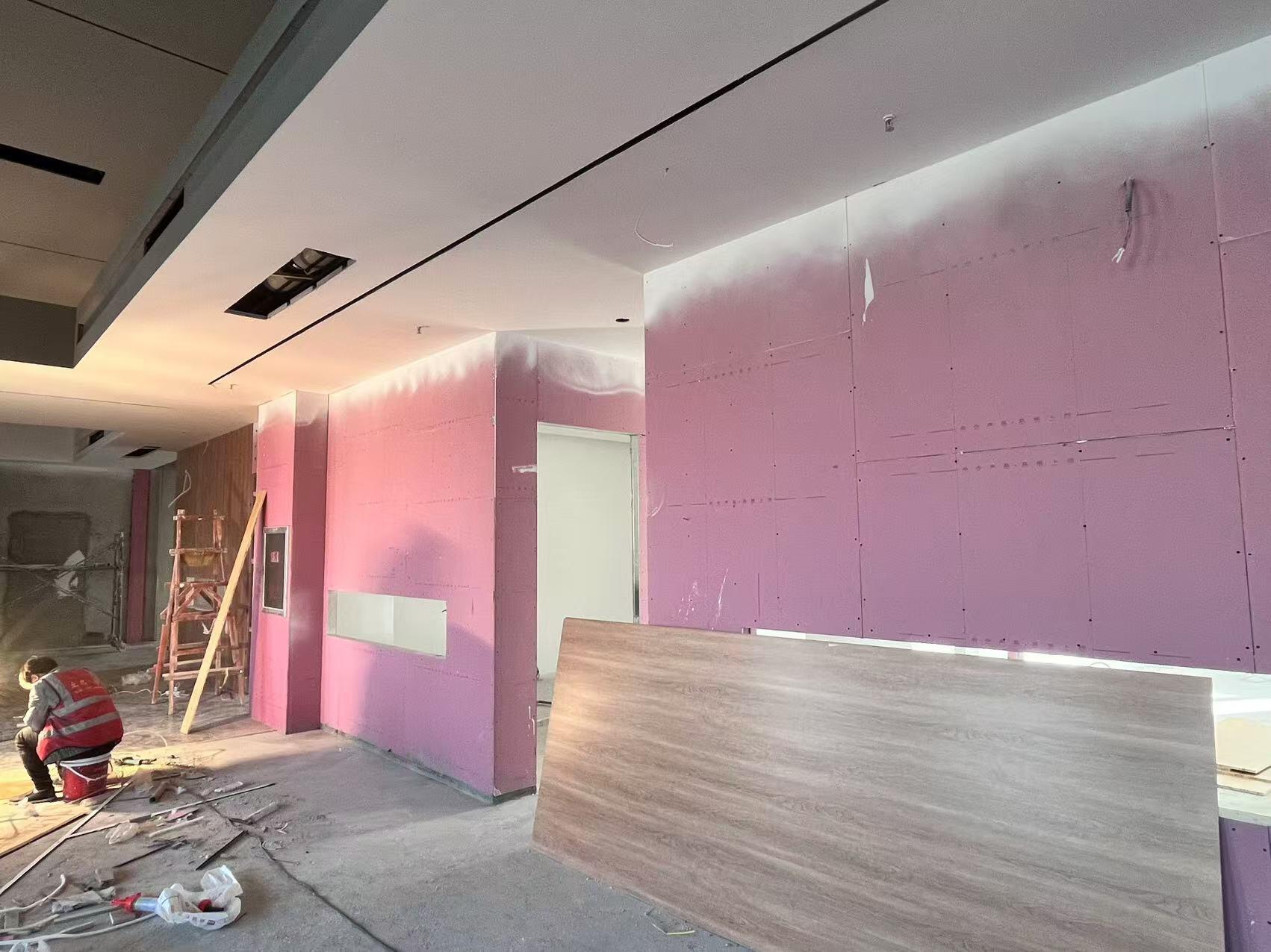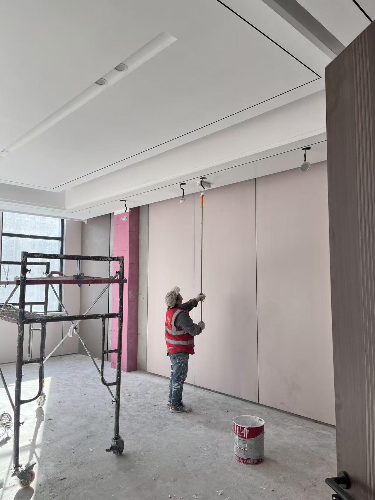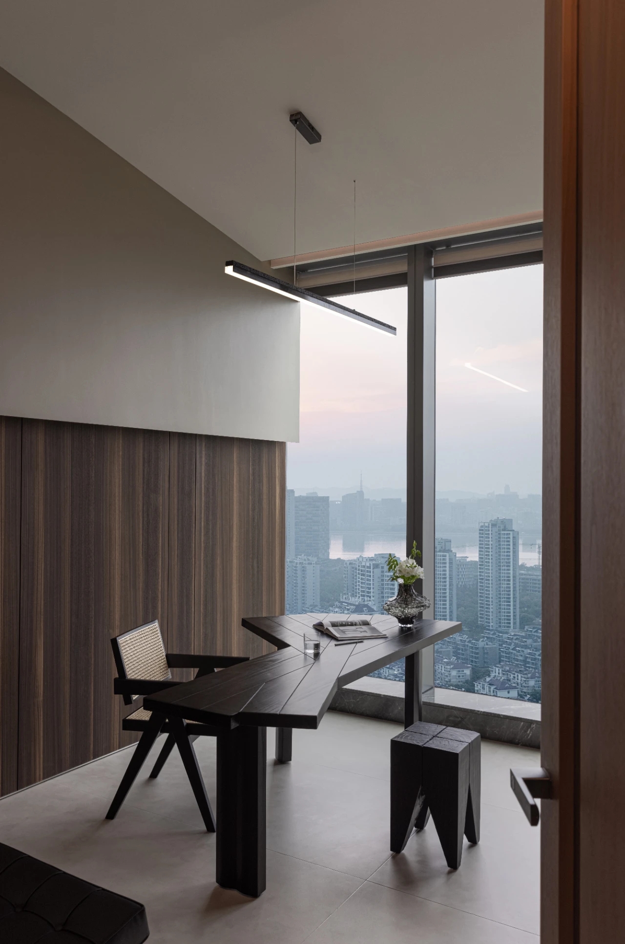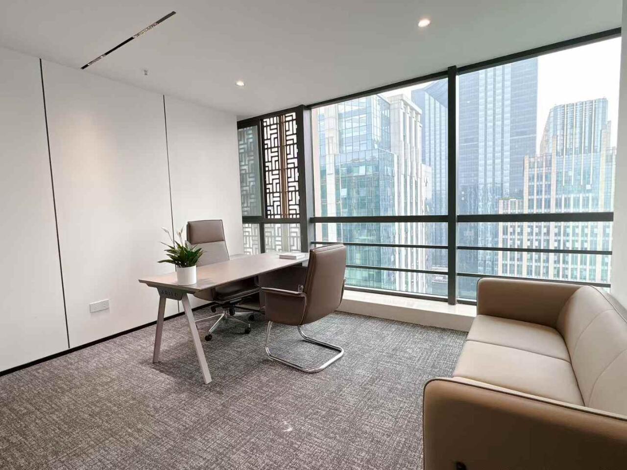 在接待前厅左右两边各设置了一个大会议室,其中一个是现代酷灰的可二合一的会议室,另一个是稳重优雅的行政会议室。感谢成品隔断供应商卡莱斯卓的紧密配合和支持,在设计师的要求下,把LED灯带嵌入了双层玻璃隔断中。让整个会议室区域看上去充满科技感!