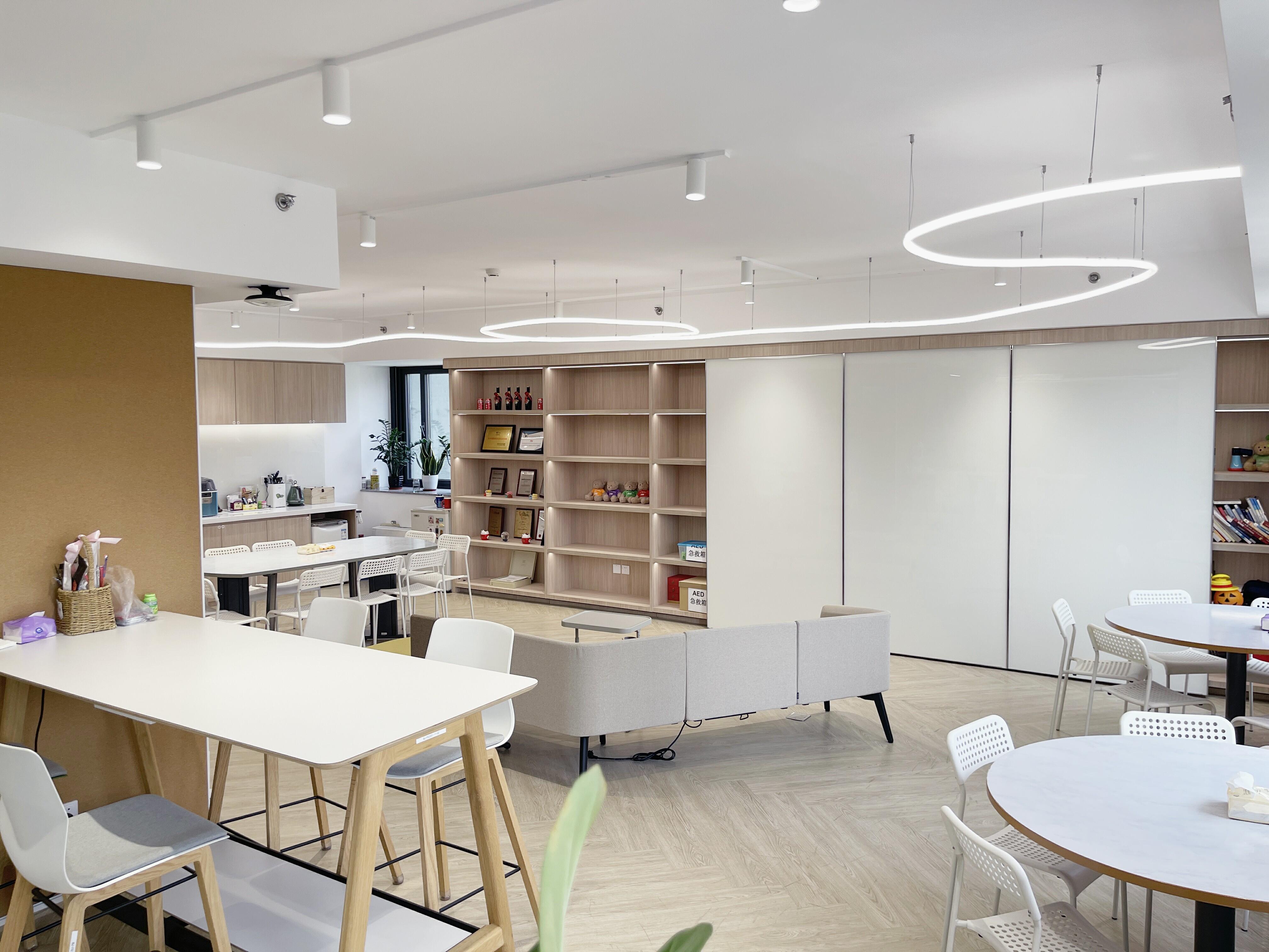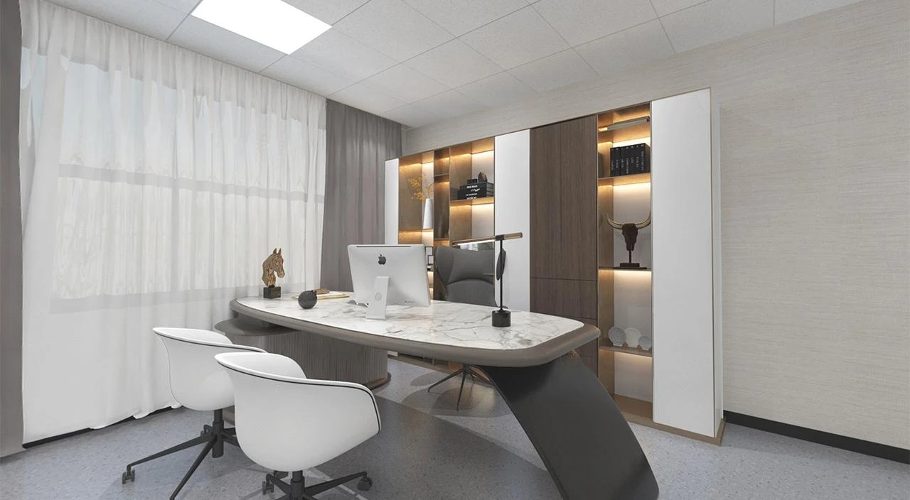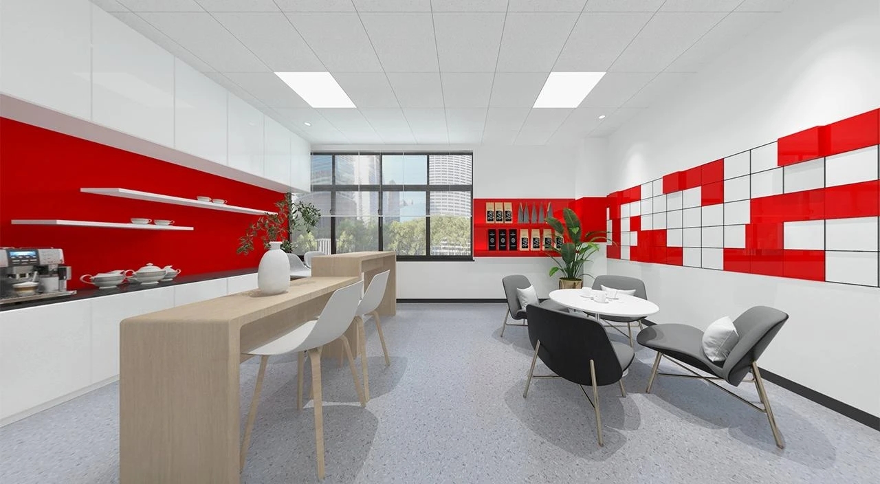 接待大厅旁的等待区域,以简约而明媚的笔触,勾勒出空间的无限韵味,旨在为客户提供一个既舒适又放松的过渡空间。大面积的窗户设计,不仅能欣赏外面的自然风光,更能获得心灵的宁静。墙面以橙红色线条分割,展示公司经营项目,让品牌深入人心。