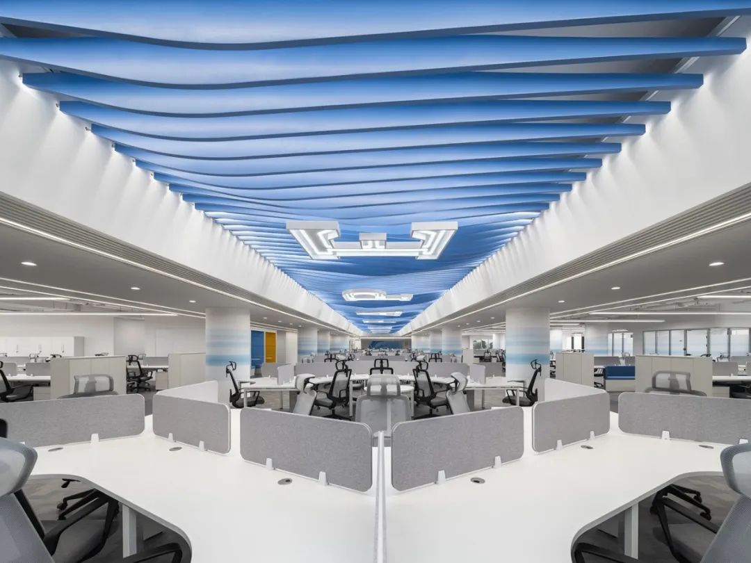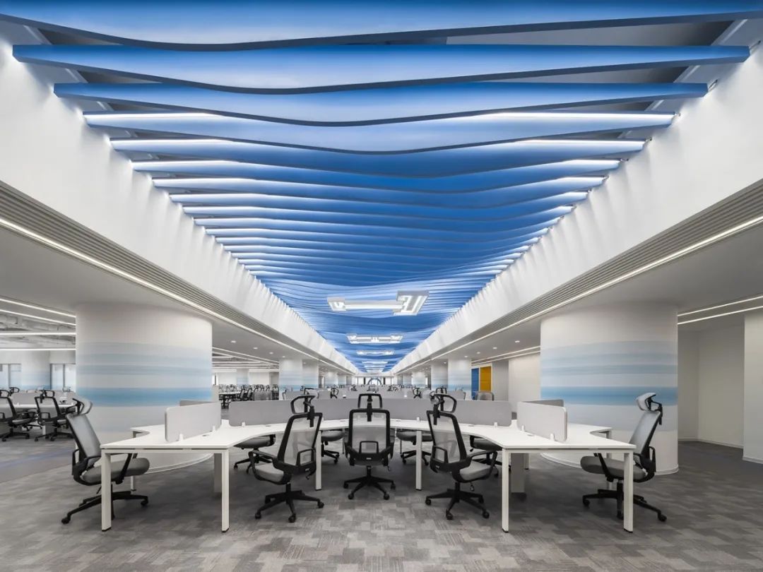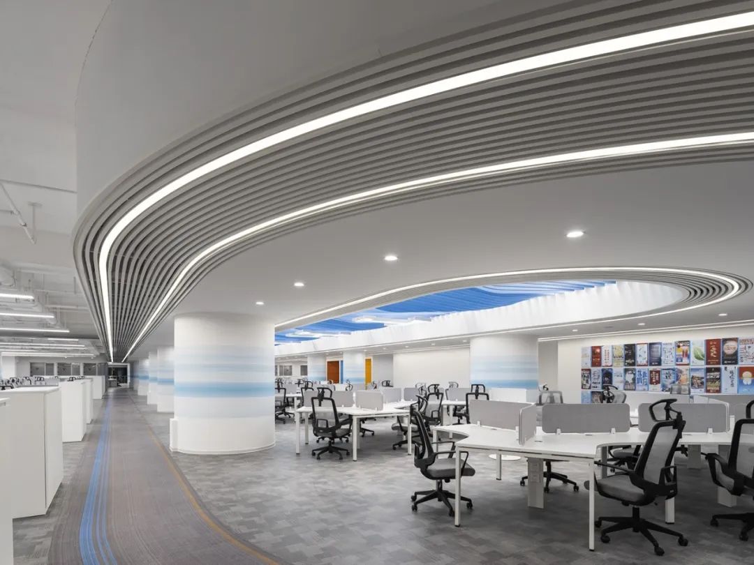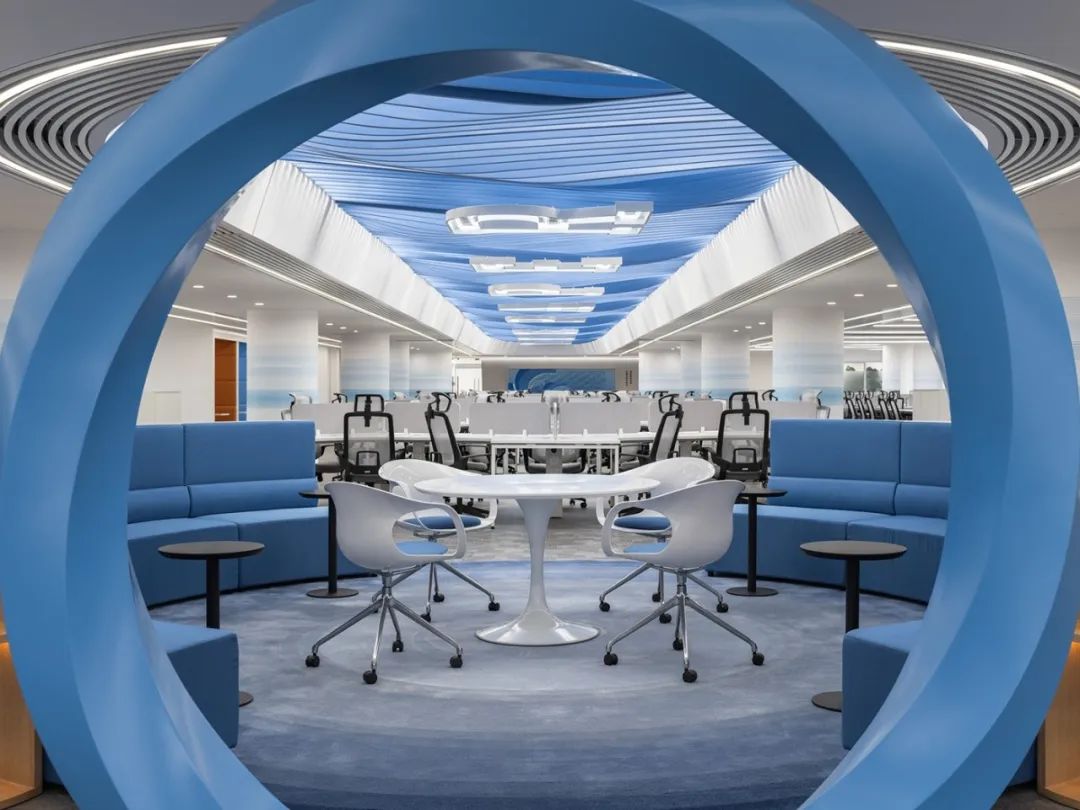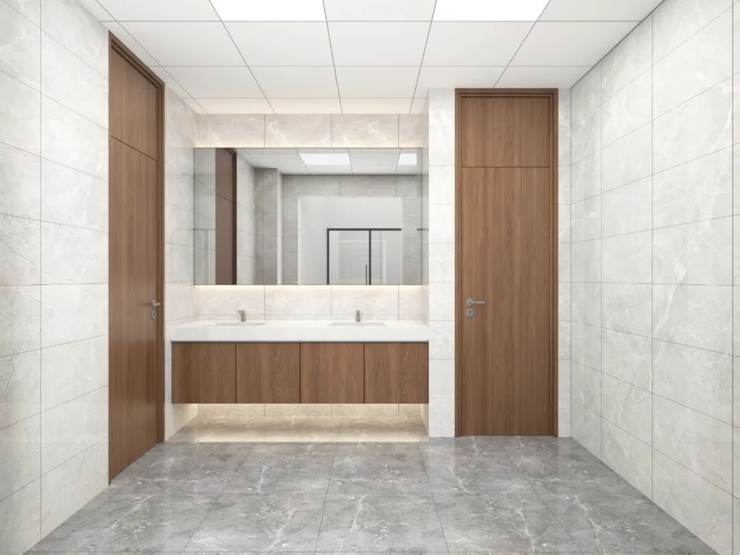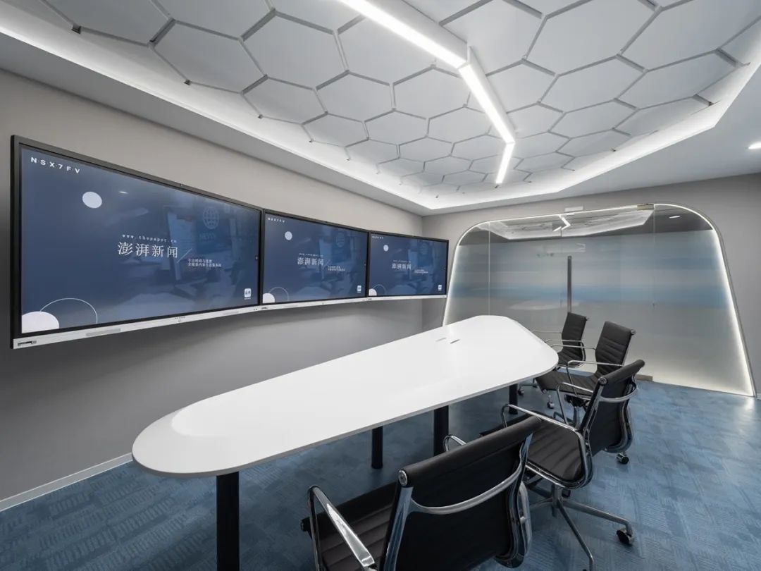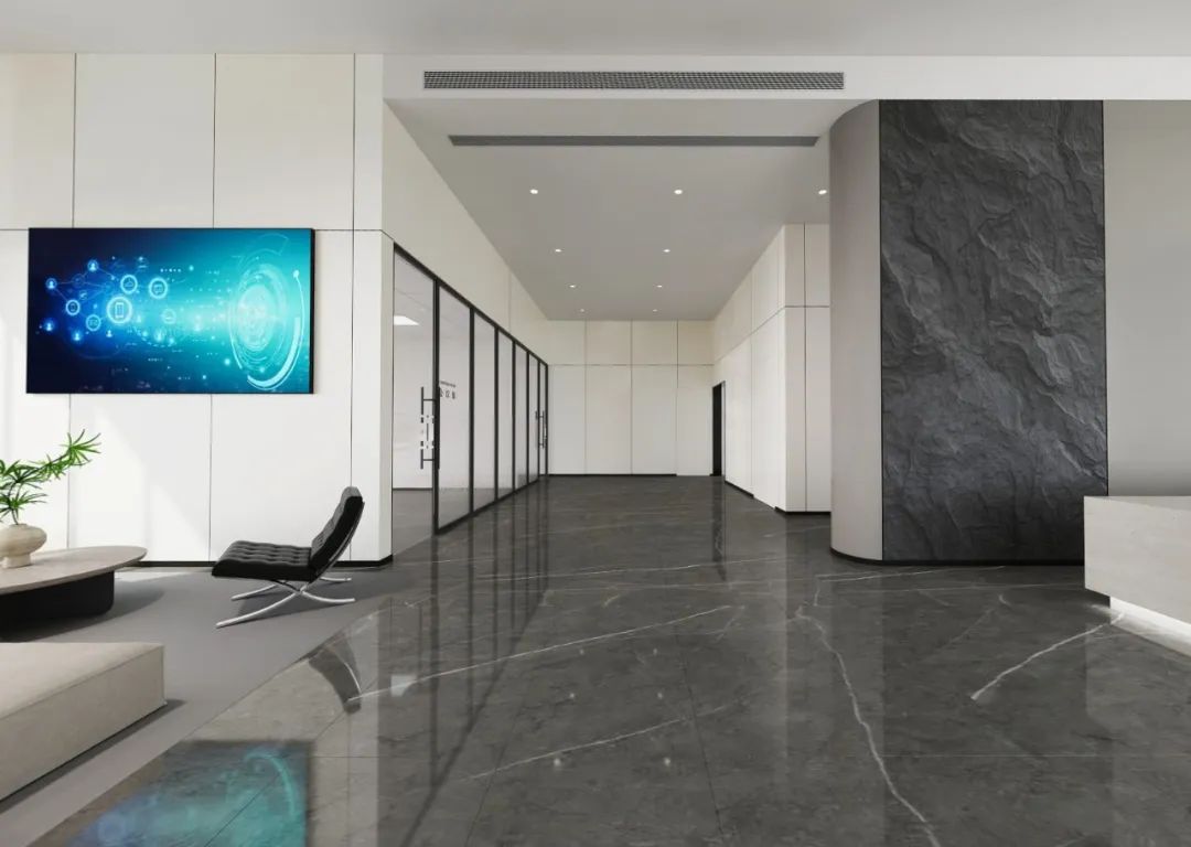 前厅设计采用经典的黑白灰为主色,使整个空间显得更加明亮和高档。白色天花和灰色地面的视觉对比增强了空间层次感,灰白墙面进一步呼应了顶面与地面的关系。黑色线性灯带在白色的天花板上形成鲜明的对比,让进入空间的用户惊觉宏伟大气。企业品牌标志位于前台上方的墙面上并正对着主入口,耀眼伫立,先声夺人。会议室宽敞明亮,原木色的墙面、白色的顶与与灰色的地面,层层递进,增强视觉层次感,灰白相间的办公家具提升了空间品位,暗装灯带使空间面板立体突出,吊顶的多重灯光体现了空间的现代科技。整体接待等个区采用了开放式设计,没有明显的隔断,宽敞的空间和合理的布局确保了接待区的功能性,方便来访者和工作人员的互动。大面积的玻璃窗引入了大量自然光,使空间更加明亮和开阔。定制的家具软装置于其中,为来访者打造一个轻松闲适、茶香憩意的空间。