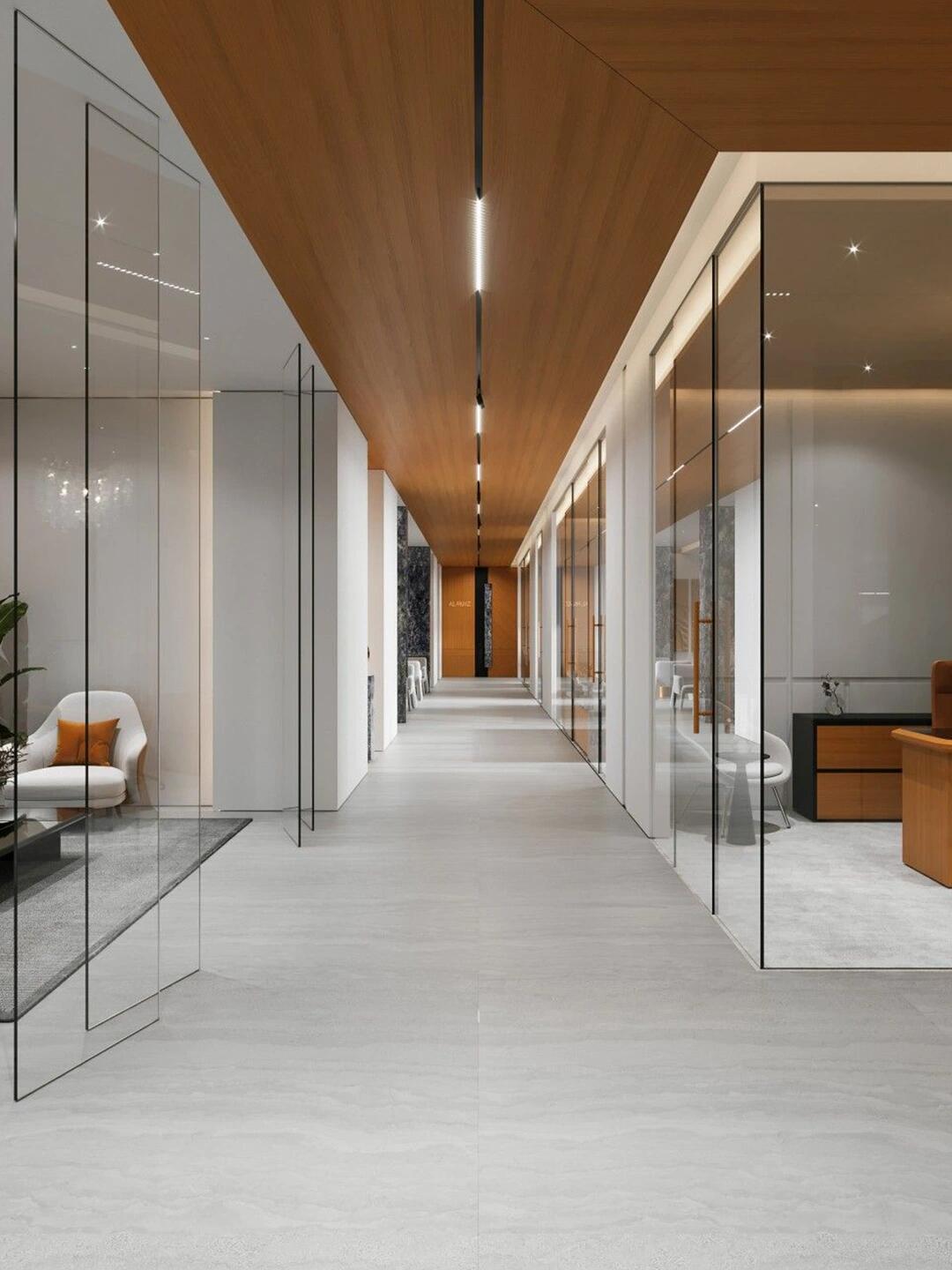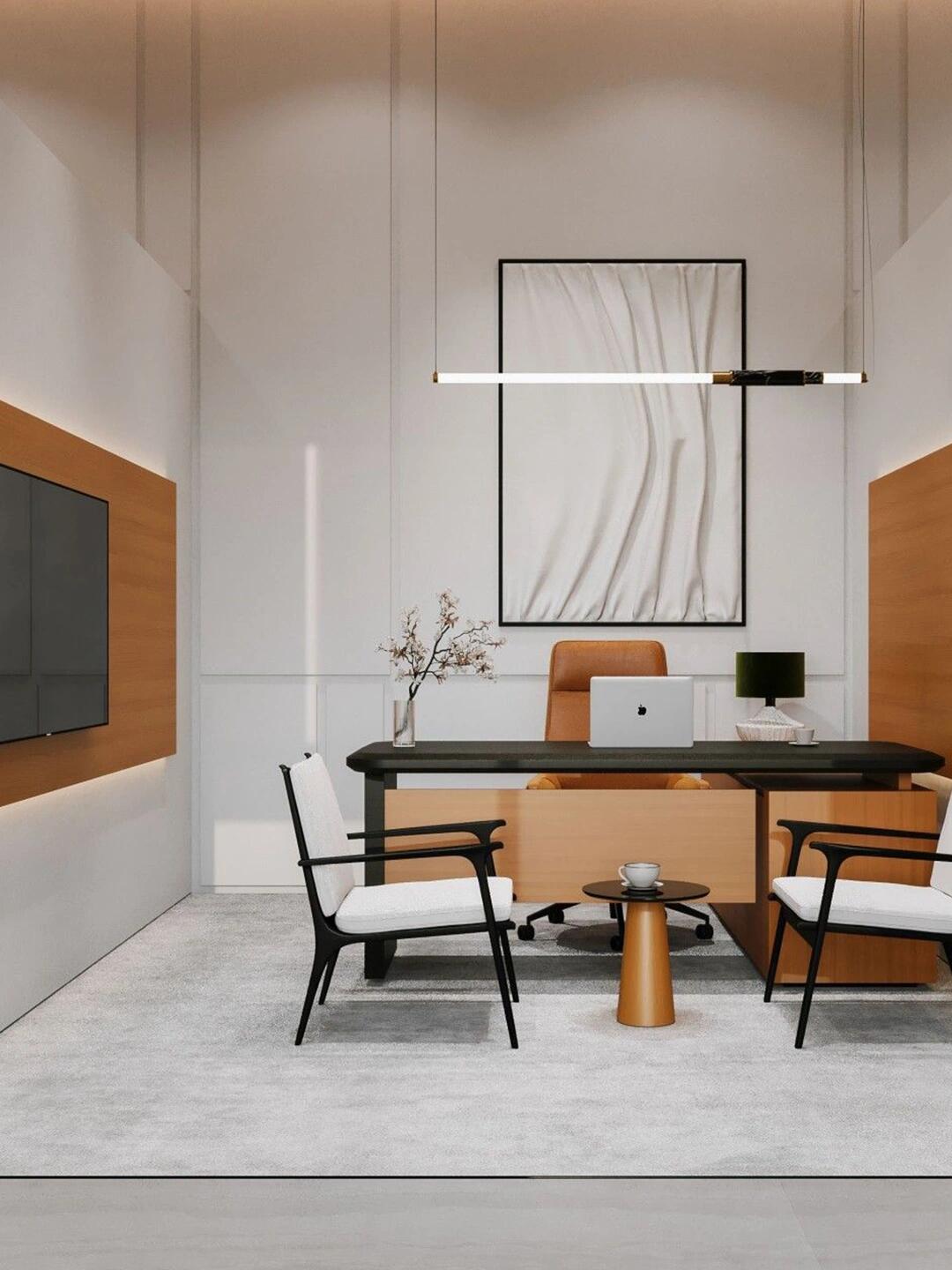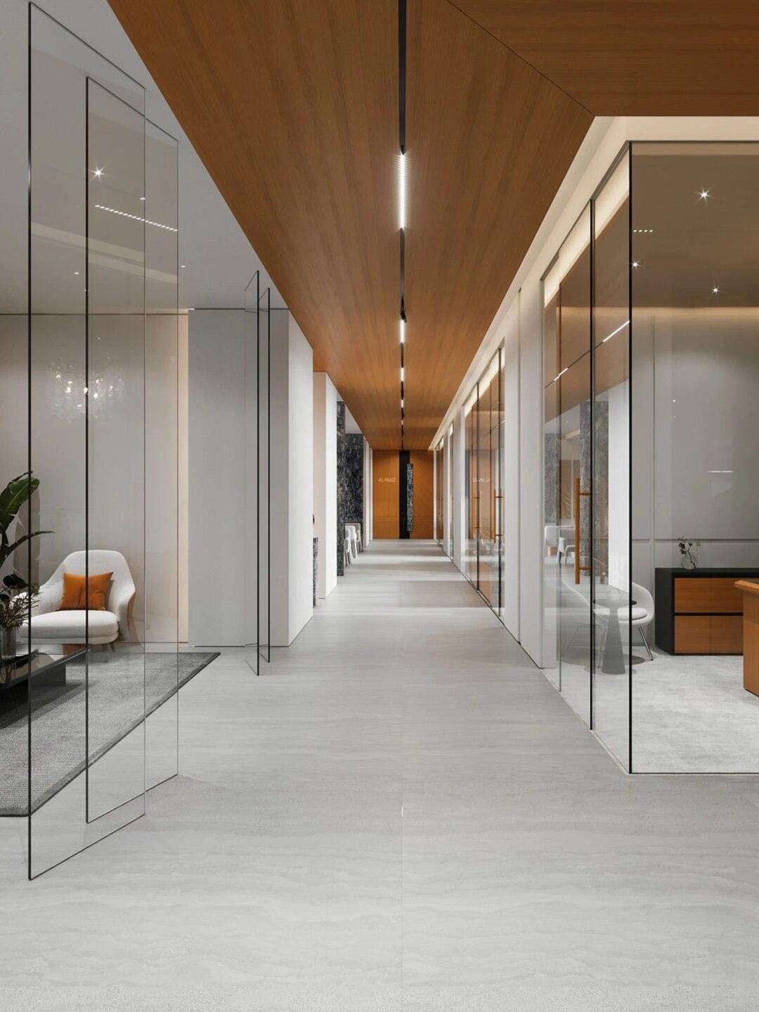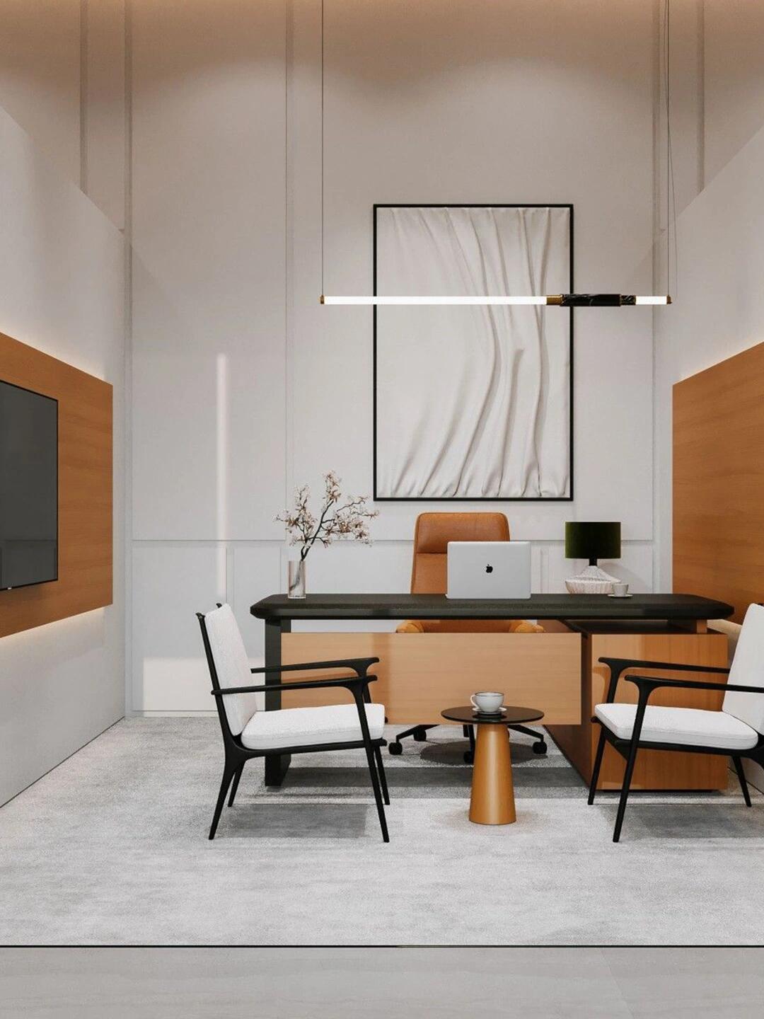 办公区的设计融合了现代办公理念和人性化元素。通过纯净、高效的线条和大面积留白来构造清晰的空间层次。红、蓝颜色的跳跃,将空间的纵深强调极致,使看似没有界定的空间中,蕴含着多元与活力。培训室以“科技、未来感”为核心理念,挖掘和探索空间的可能性,开启未来办公空间新模式。简洁的线条和流畅的弧度,让整个空间看起来既宽敞又舒适。作为专家级独立办公室,深灰的沉稳、白色的纯净、黑色的高级相互融合,营造出独特的沉稳感。沐浴在时间光泽下,超越简洁安静中的质朴之美,更为璞真深邃。