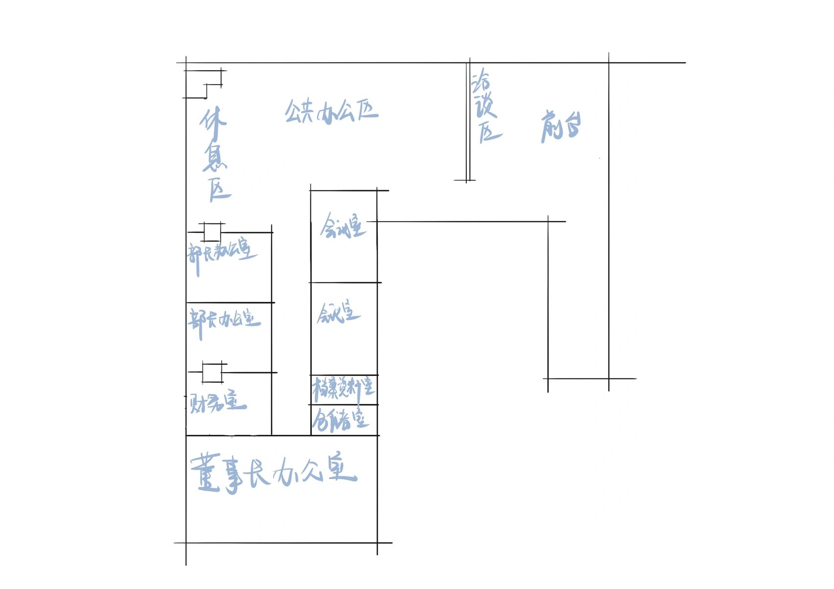 步骤一:将空间的几个体块进行划分,根据空间功能的大小以及位置简单在图纸上表示;