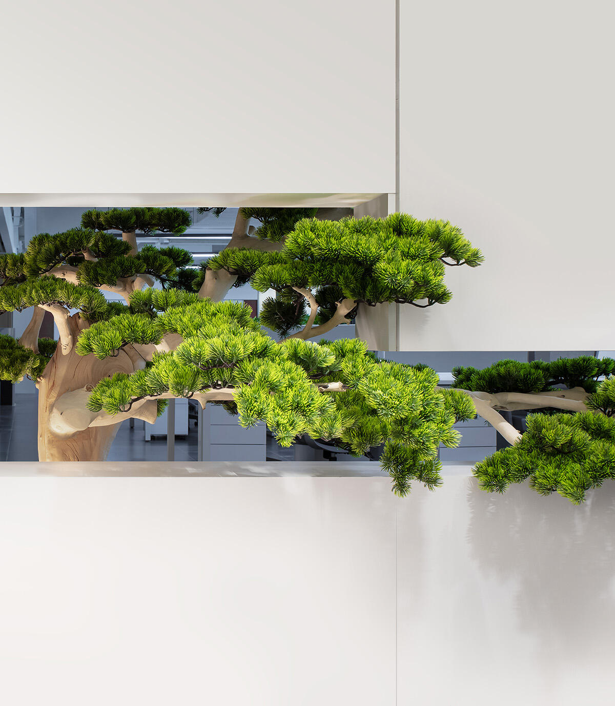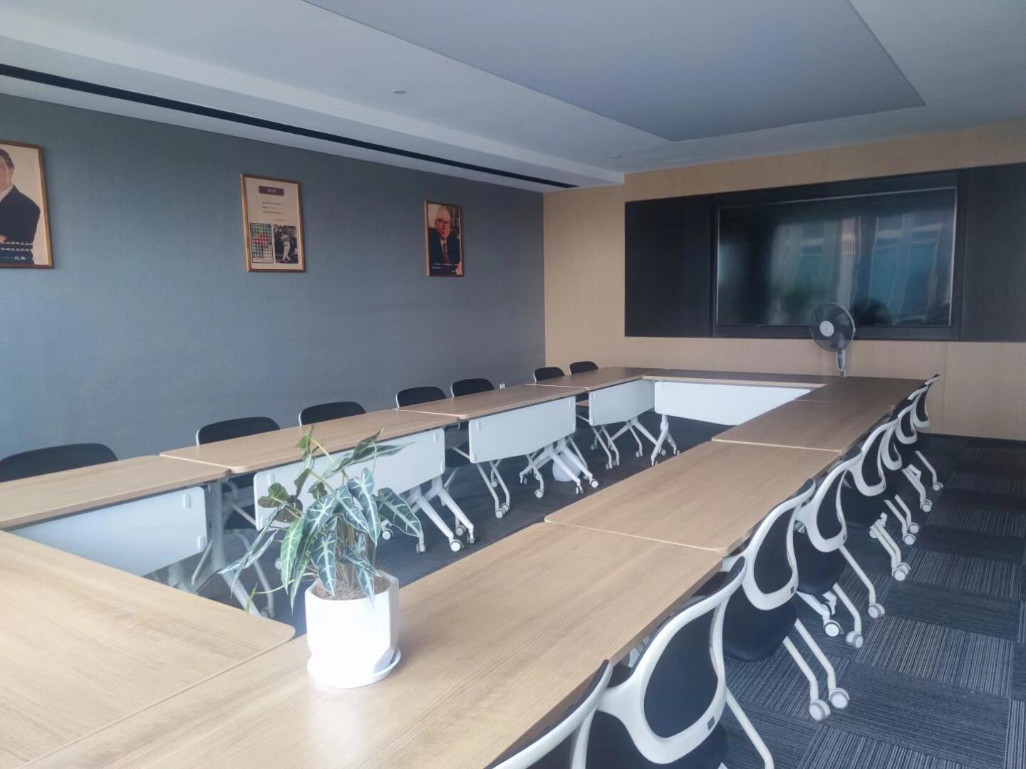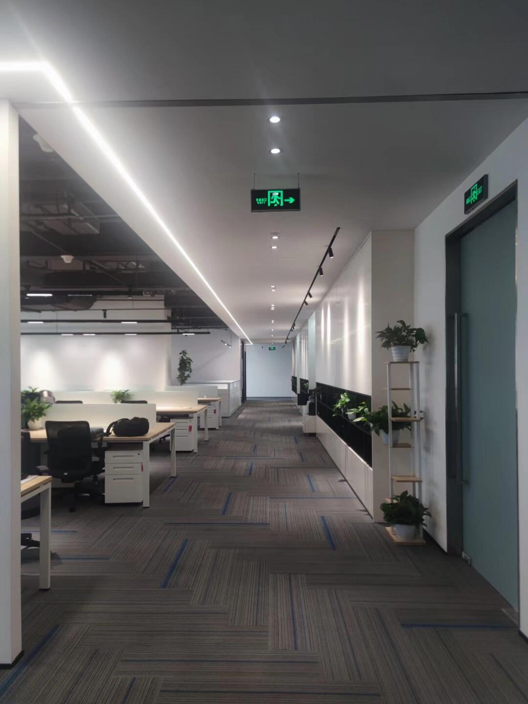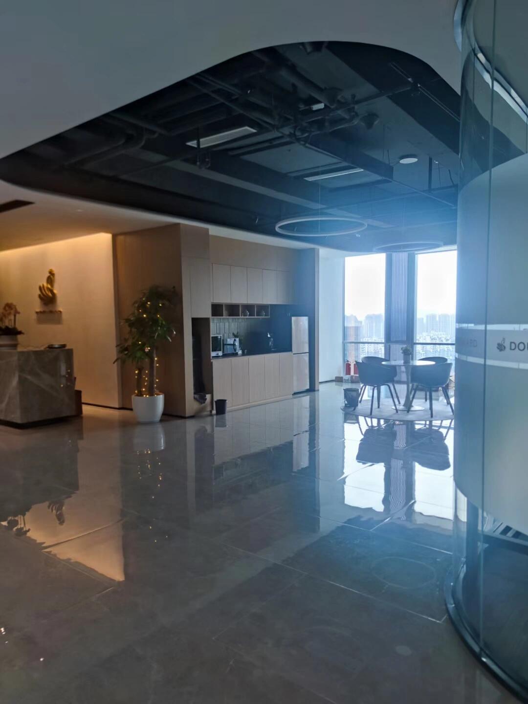项目设计灵感来自“权衡”。权衡取其平,平者乃公道之谓也。称重量的器物,名曰衡器,衡为杆,权为砣。黑色条形石材台如秤杆横跨接待区,连接Logo墙。前台绿大理石象征石权。石权,俗称秤砣,是古代讼师追求法治公正的标志。方格天花造型,漫反射灯光均匀而和谐。整体设计体现空间的正气和秩序感。