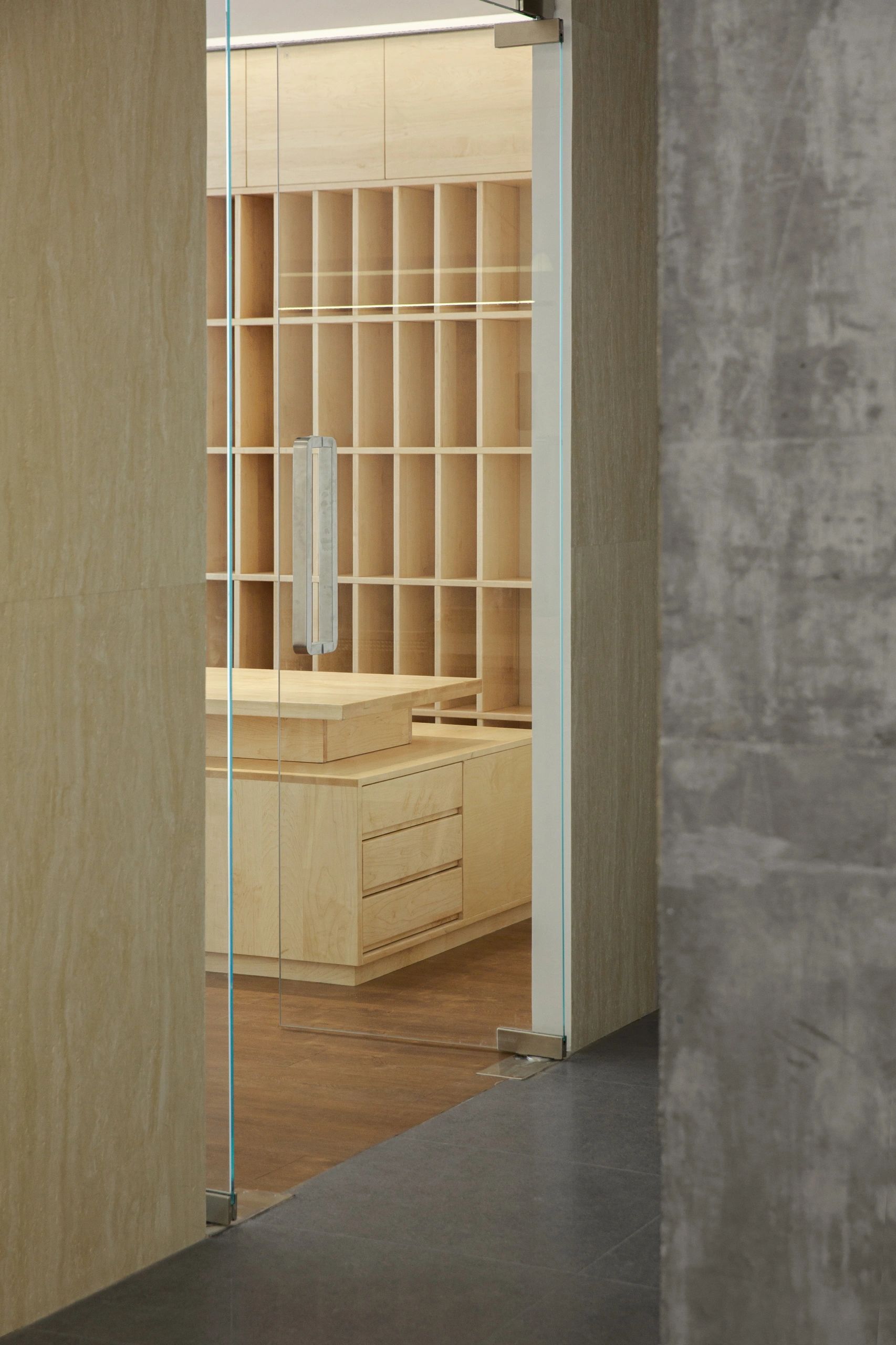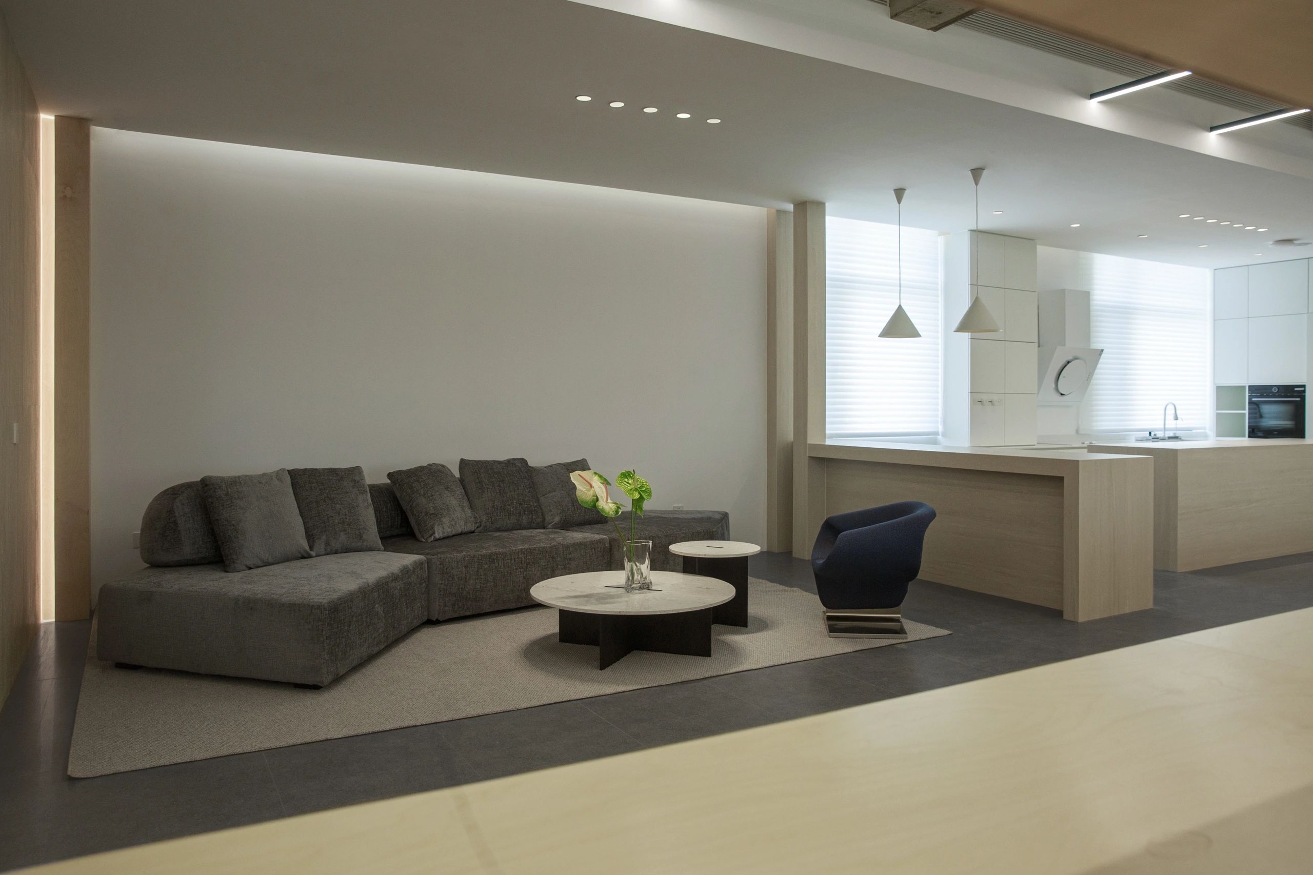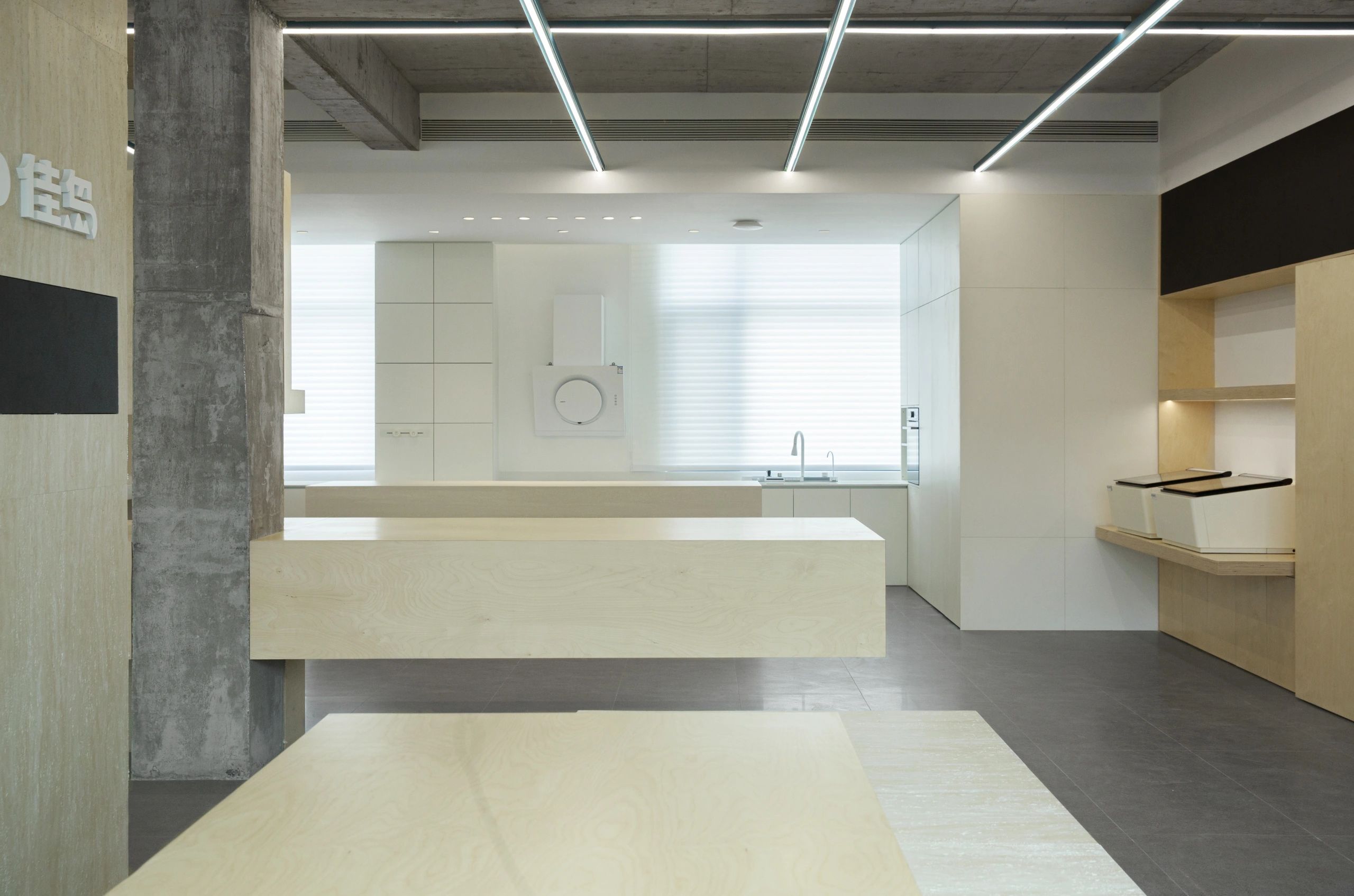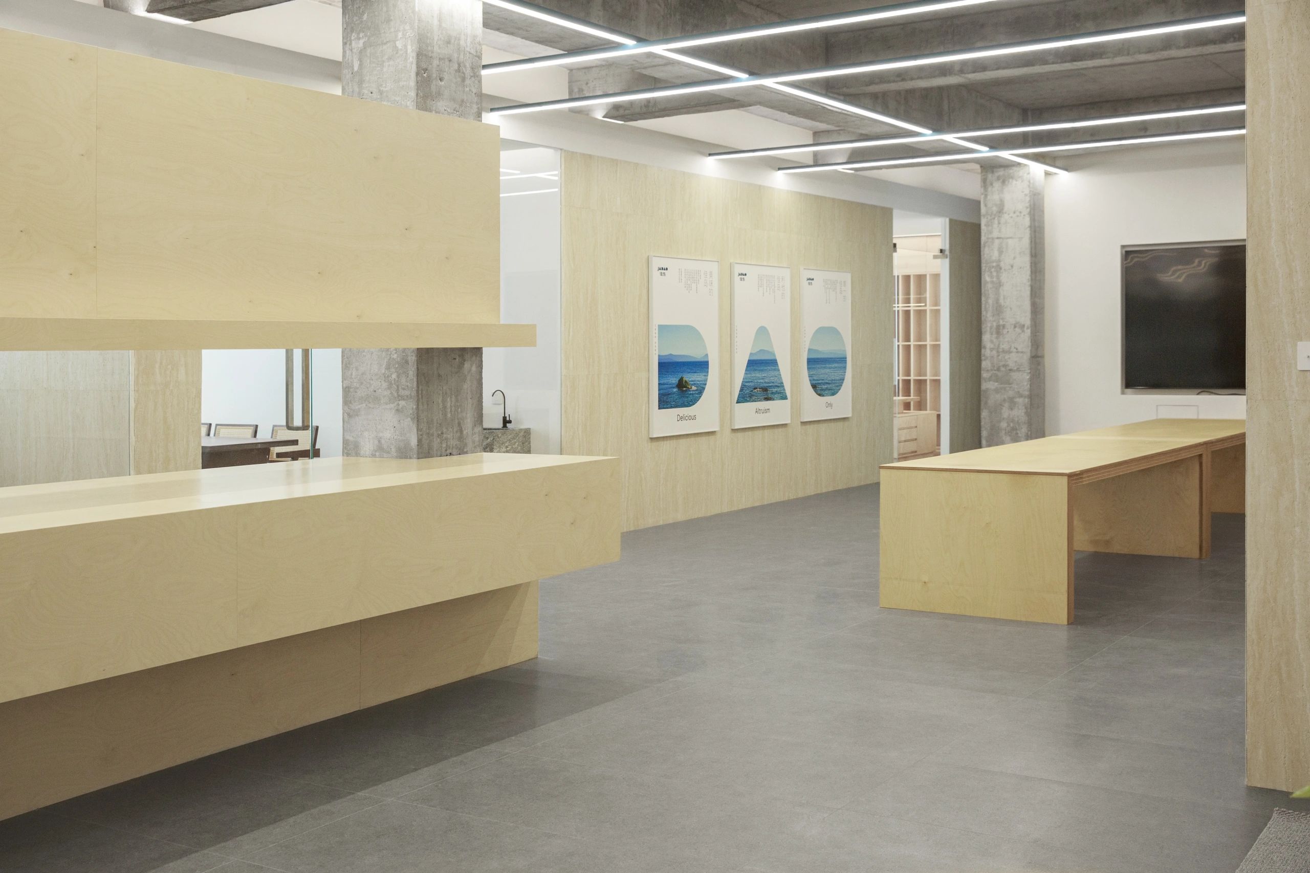 #办公智造# 会议室秉承现代简约的设计宗旨,合理、功能性是配置的内核。简约的气场协调了整体性也传达质感内涵。办公区域从大处着眼、小处落笔,向外望去,视觉上设计师也是精心考量,设计初衷并不仅仅是创造一个每天工作的办公室。设计上对于材料,功能,灯光布局深究后,其目的是使办公环境更愉悦舒适。办公设计也需要考量如何拿捏空间中遮蔽与通透性,走廊过通道展厅链接办公区域与休闲区域,顶面、立面和地面,勾勒了一个充满律动且科技感空间。会议室通过有序玻璃,原木,自然光线打造了一个流动空间,留白在空间中拥有强大包容性与融合感。