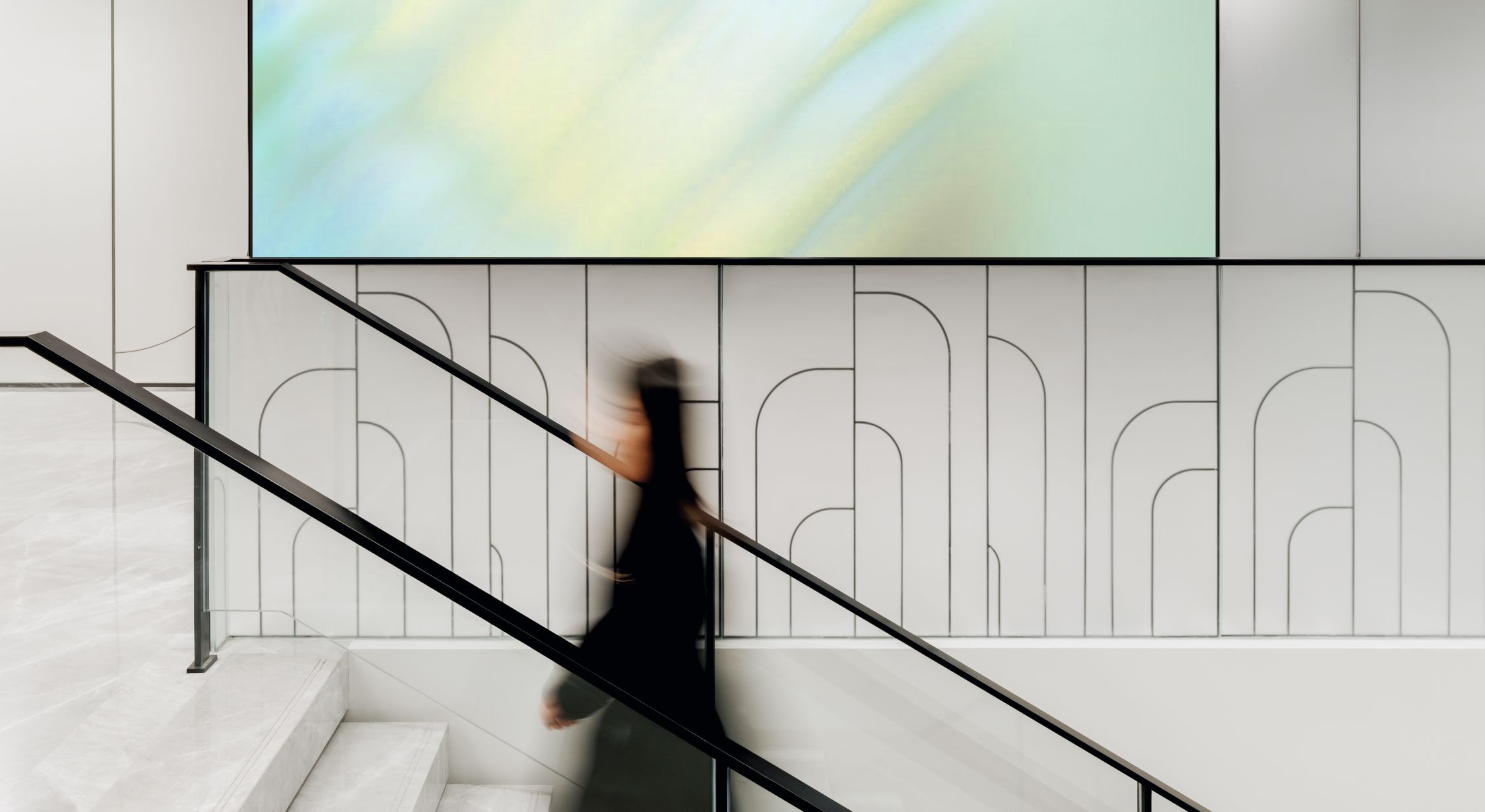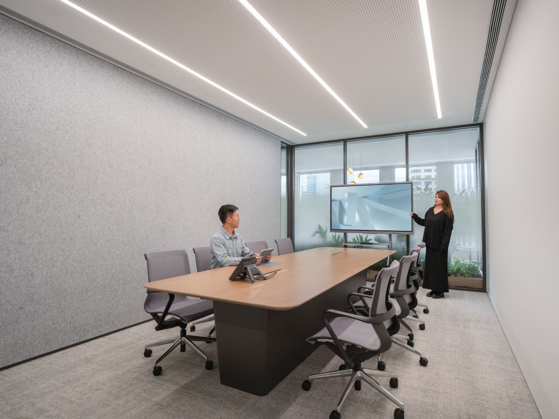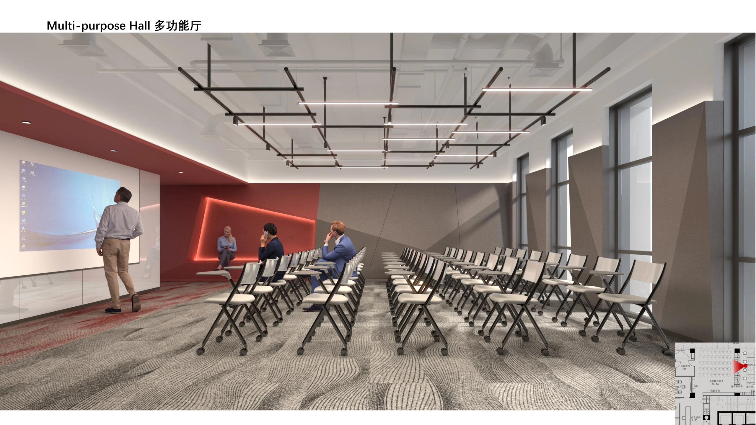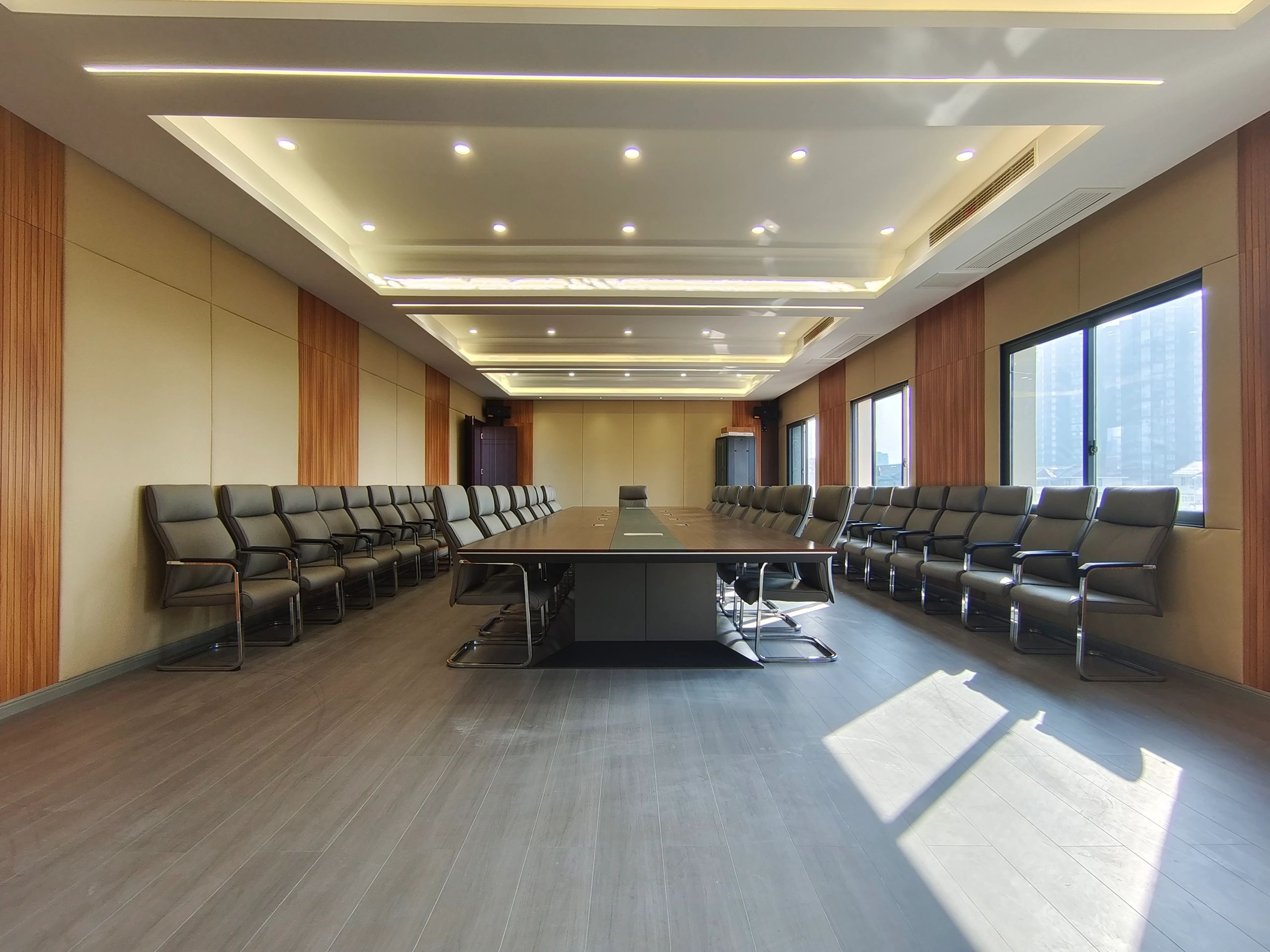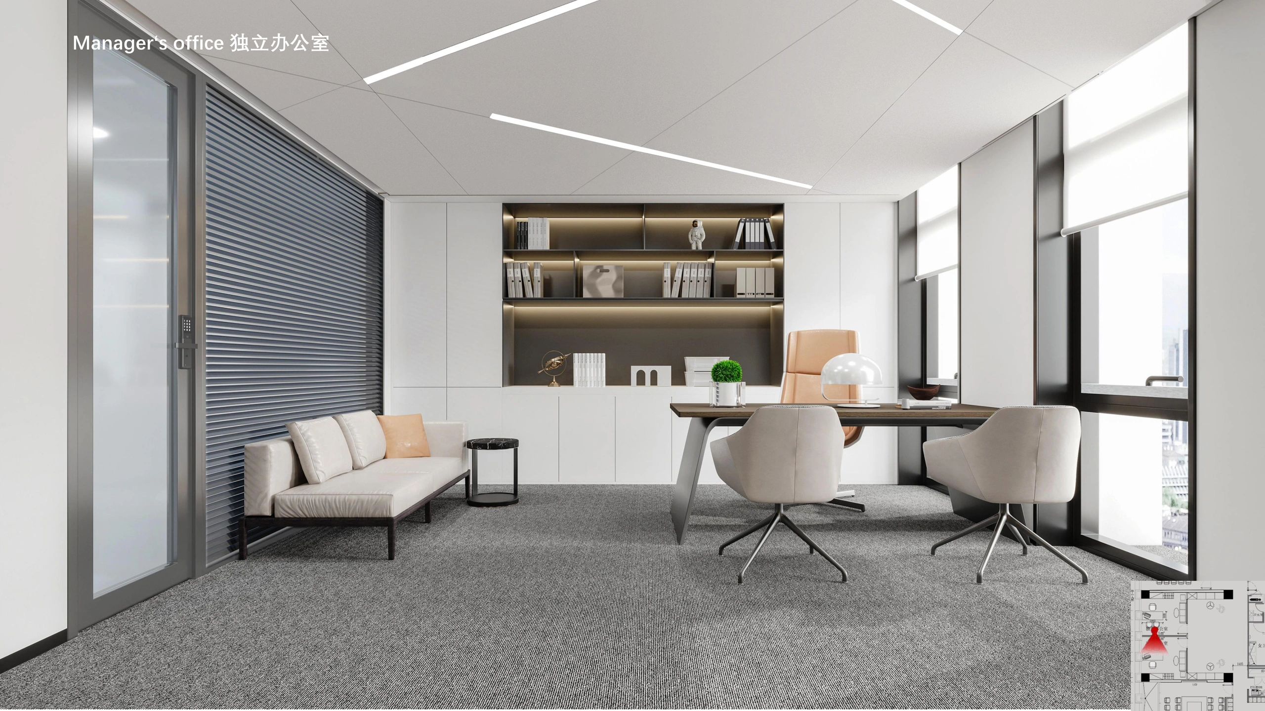空间整体采用现代简约的装饰风格,以明快的灰白调为主。选用了大量石材、原木等天然元素,与玻璃、金属等材料相结合,同时根据空间功能,辅以红、橙、黄等色彩与植物,为空间注入生机和活力。办公空间兼顾通透性与实用性,将律师的工作场景与现代都市生活有机融合。会议接待层主要展现了企业形象,印制在接待前台大理石上的印章,系著名书法篆刻家作品,于无声中传达出一份富有温度的信任,一份沉甸甸的责任与承诺于方寸之间,讲述着企业的理念,法治兴邦,知行于信,大道向阳。该楼层设置有大小不一、功能多样的会议室,可以满足多样化的工作场景与使用需求。头脑风暴室,配置了富有创意的办公设施,构筑了一个流动交互、多模式的弹性空间。VIP会议室,家具及陈设典雅、考究,全方位匹配来访者的尊贵身份,并在私密性等方面具有十分严格的要求。董事会议室主要用于开展较高规格的双边会议及洽谈等场景。花园走廊是一处开放的自由交流空间,开敞与通透的布局,玻璃墙的应用,最大限度地增加了工作区和休息区的阳光洒入,窗边望去,可以看见上海传统的石库门里弄和摩登的现代建筑交汇融合。在花园长廊末端,是一间讲述着东方美学的茶室,人们在这里品茗、论道。在接待吧台与等候区,营造了一处具有温度的空间,来宾可以于繁忙的工作中感受那一缕独属的阳光。等候区的另外一侧,是四合一多功能培训室,培训室的功能和大小可以由使用者自由定制。在封闭与开放之间,空间的使用变得灵动且高效。从三五个人的会议交流,到几十人的学习培训,再到上百人的论坛活动,都可以定制化开展。