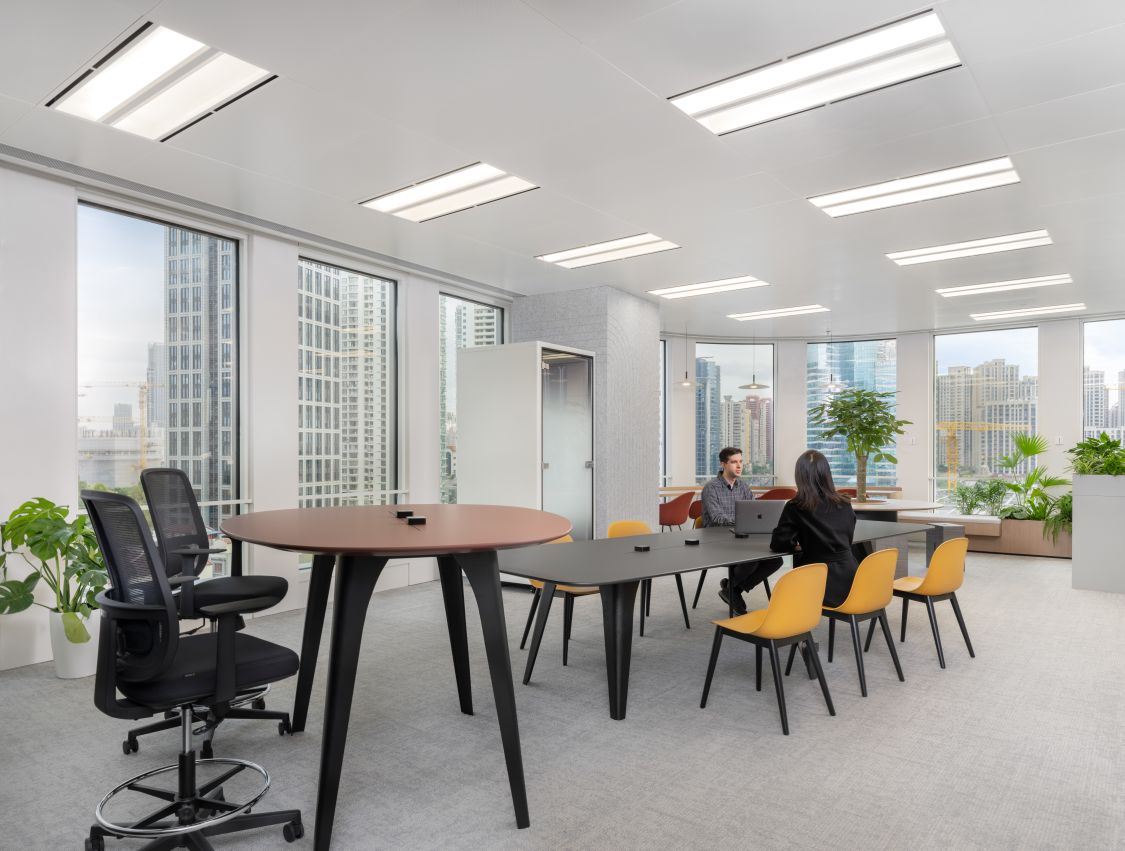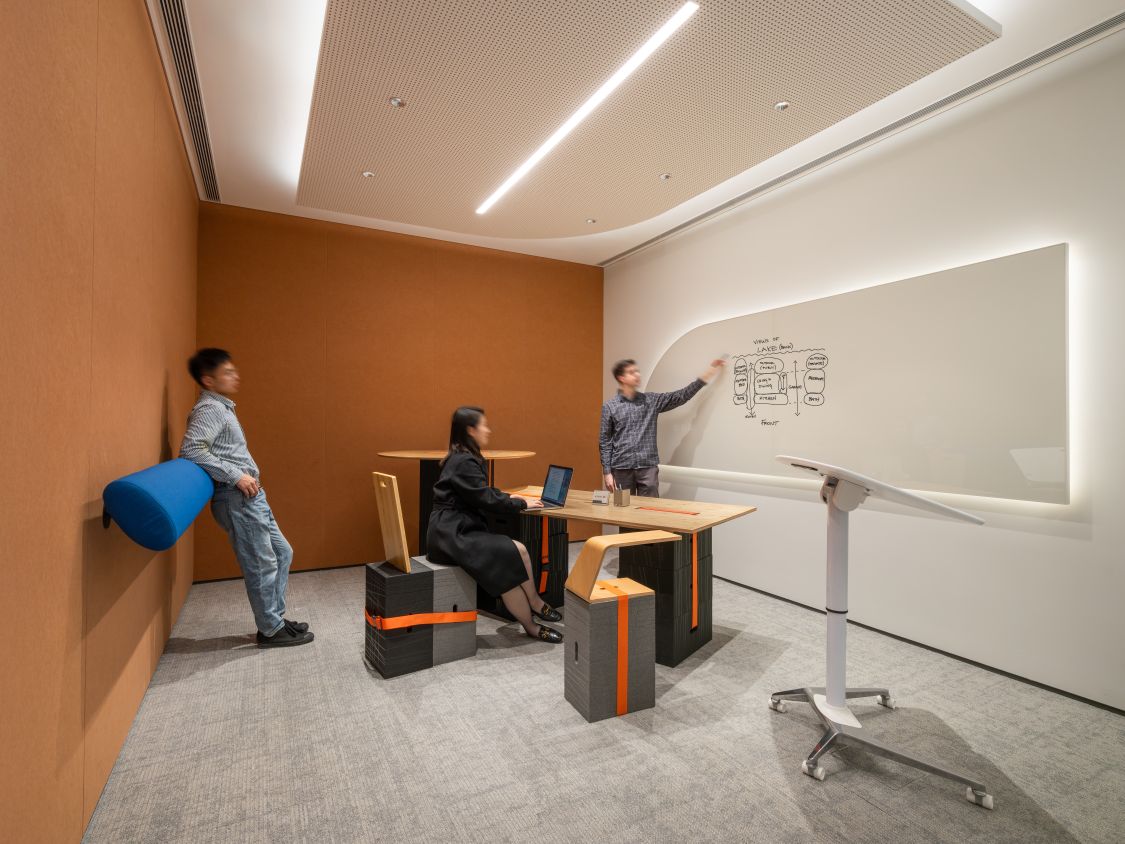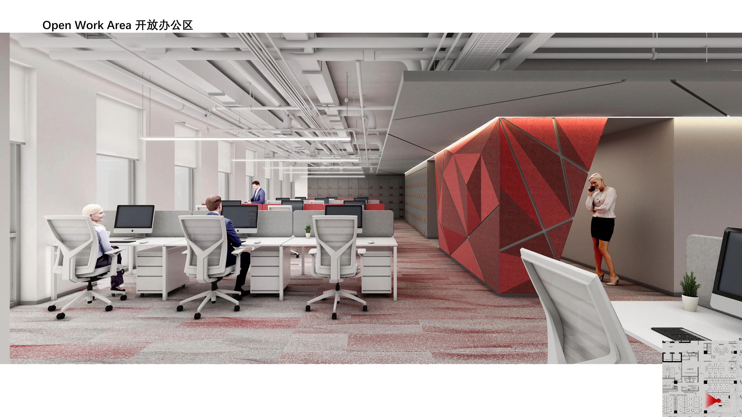 开放办公区按照方位,划分了四个区域,且用独特的色彩进行了点缀。黄色洋溢着活力与乐观的气息。蓝色象征着可靠、专业和信任,绿色象征着新生和希望,永葆进取心。橙色代表灿烂和自由。