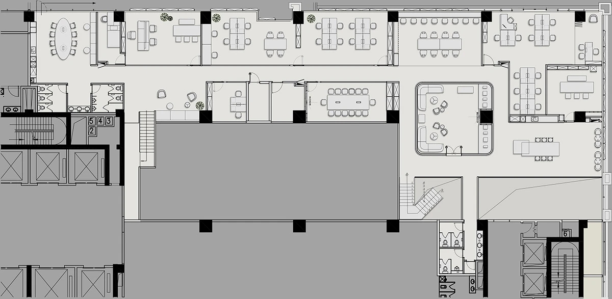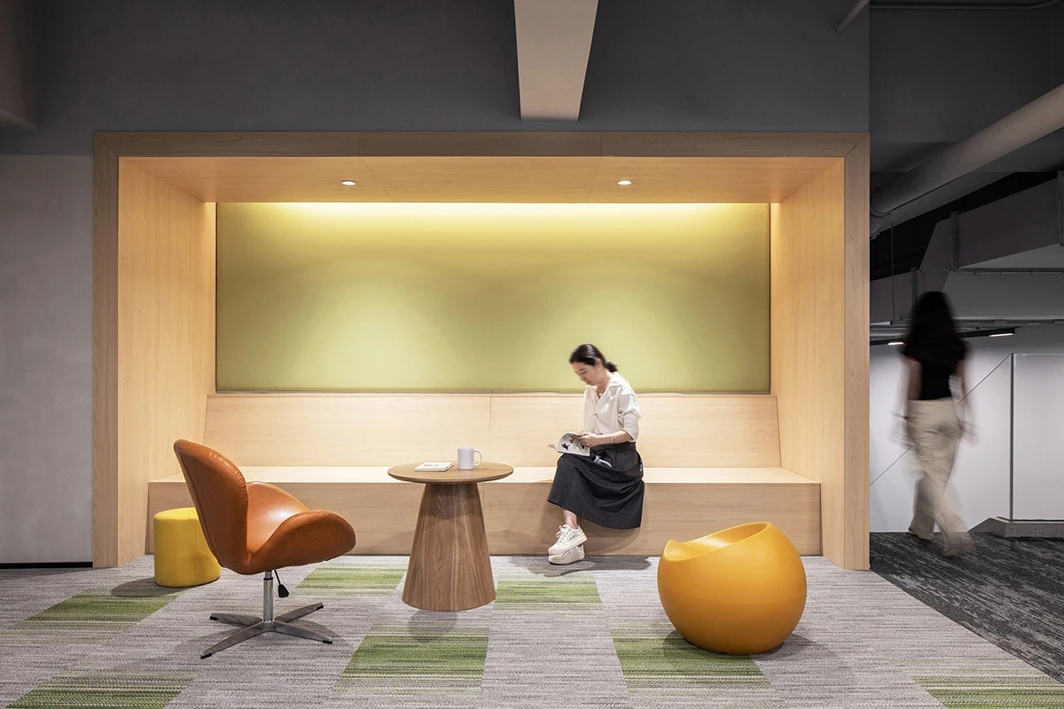 在现代化的办公空间里,茶室的功能区域也是多样化的。这里既可以接待客户,轻松交谈,增进了解;也可以作为员工日常的茶歇区域,满足不同人群的下午茶时光。设计于黑白中加入一定比例的原木色系和材质,使空间无形中散发出松弛平和的氛围,诗意且静谧。除了办公空间,企业还提供了更多元化的茶歇区和休息区,通过温馨的人性化设计引导员工快乐工作、健康生活。