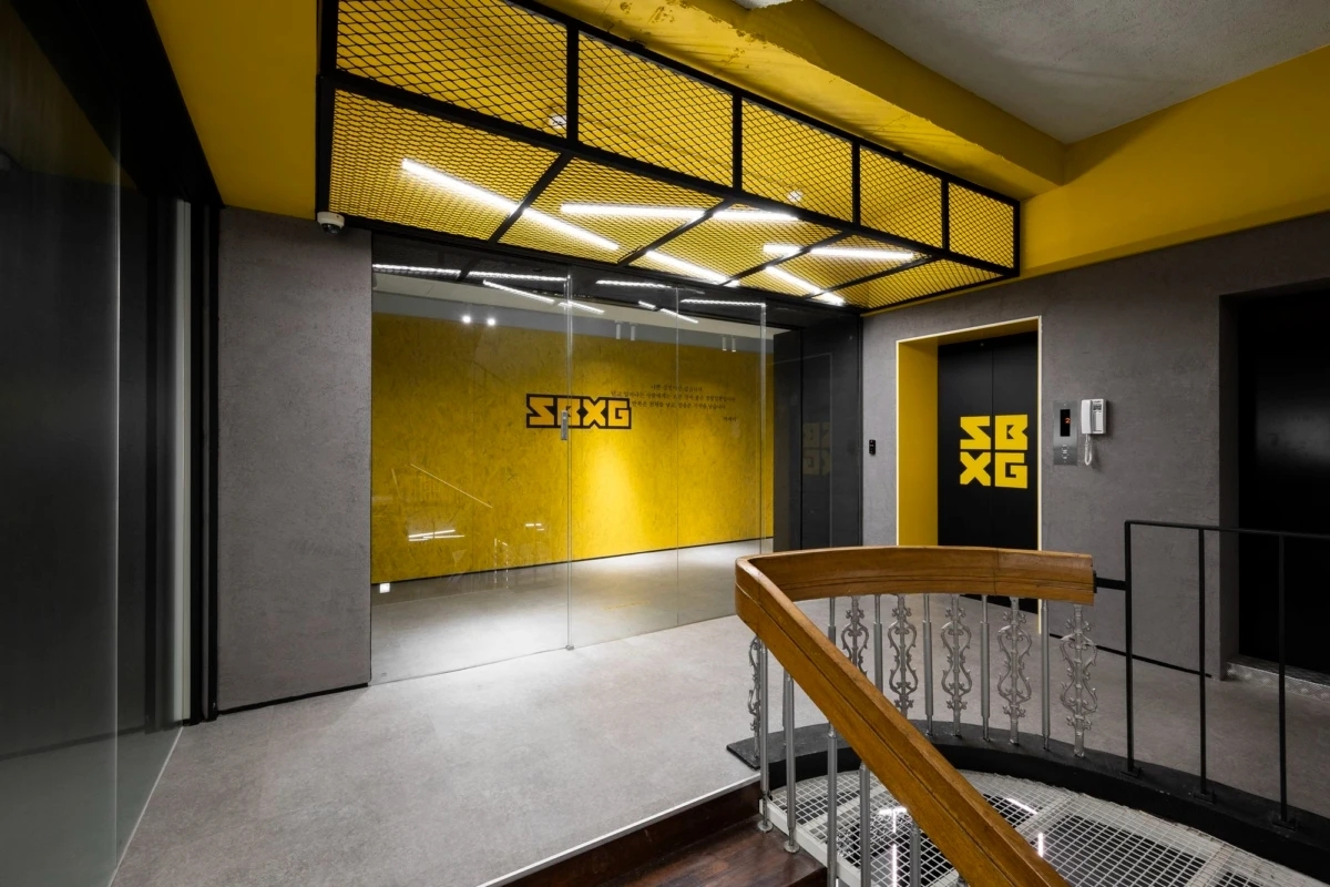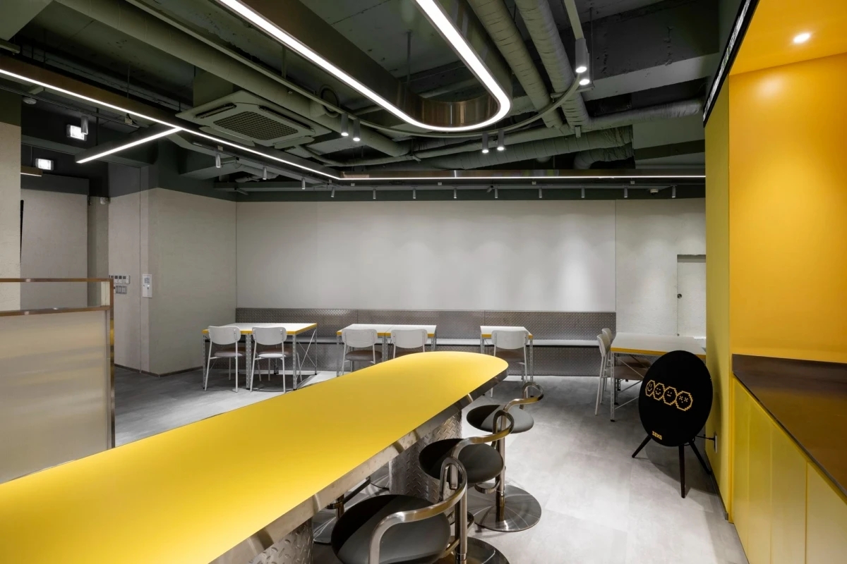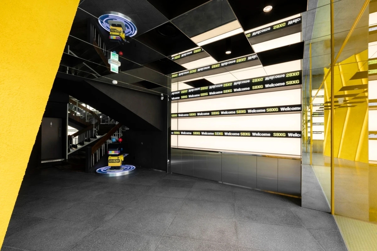 色彩是SBXG电子竞技大楼设计的另一个亮点。为了打造一个充满活力、积极向上的空间,设计师运用了大胆的原色,尤其是在游戏室和公共区域。原色的运用不仅反映了电竞的年轻化和活力,还赋予空间一种现代感和前卫感。而在细节部分,金属装饰和反射光泽的材料被巧妙地引入,为空间增添了层次和动感,契合了电竞行业本身的快速发展和变化。此外,时尚的金属细节和现代化的媒体元素在SBXG的大楼中也得到了广泛的应用。例如,墙面上安装的LED屏幕展示着电子竞技的动态,金属结构不仅增强了空间的现代感,还通过反射和光影效果,使整个空间更具吸引力。