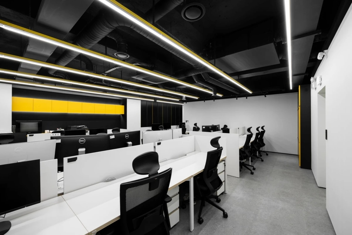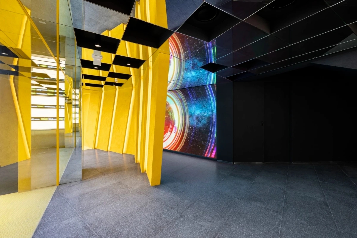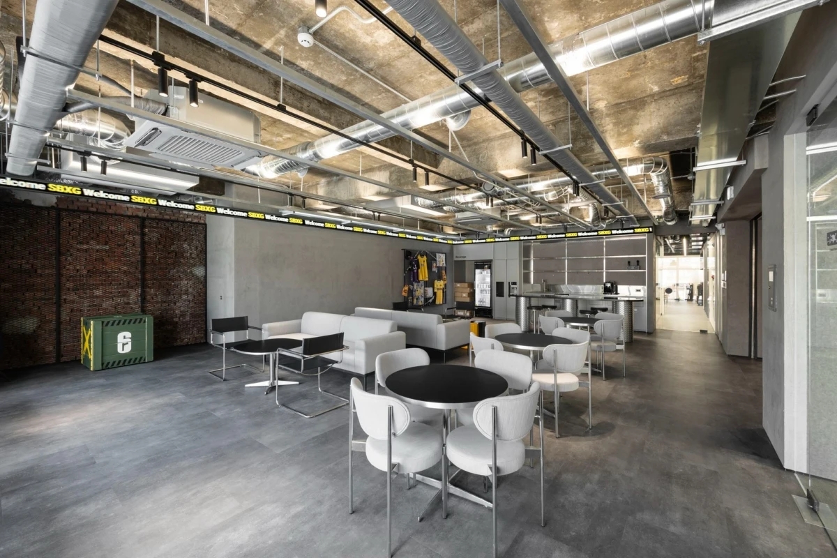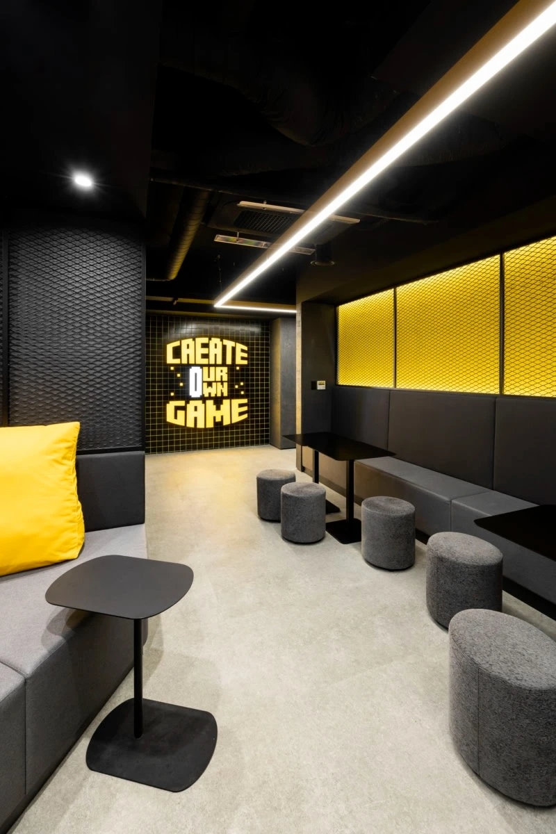 色彩是SBXG电子竞技大楼设计的另一个亮点。为了打造一个充满活力、积极向上的空间,设计师运用了大胆的原色,尤其是在游戏室和公共区域。原色的运用不仅反映了电竞的年轻化和活力,还赋予空间一种现代感和前卫感。而在细节部分,金属装饰和反射光泽的材料被巧妙地引入,为空间增添了层次和动感,契合了电竞行业本身的快速发展和变化。此外,时尚的金属细节和现代化的媒体元素在SBXG的大楼中也得到了广泛的应用。例如,墙面上安装的LED屏幕展示着电子竞技的动态,金属结构不仅增强了空间的现代感,还通过反射和光影效果,使整个空间更具吸引力。