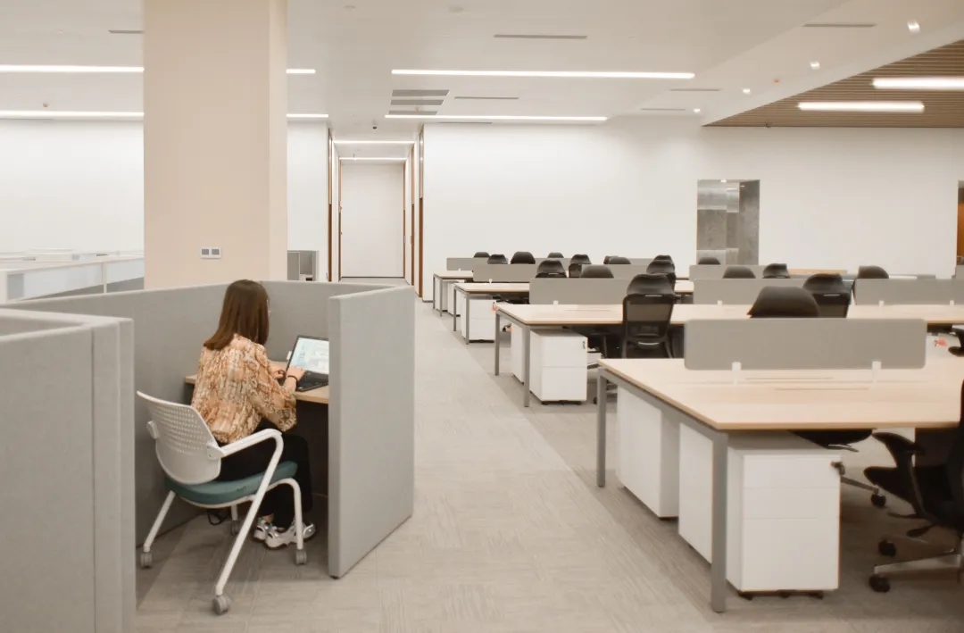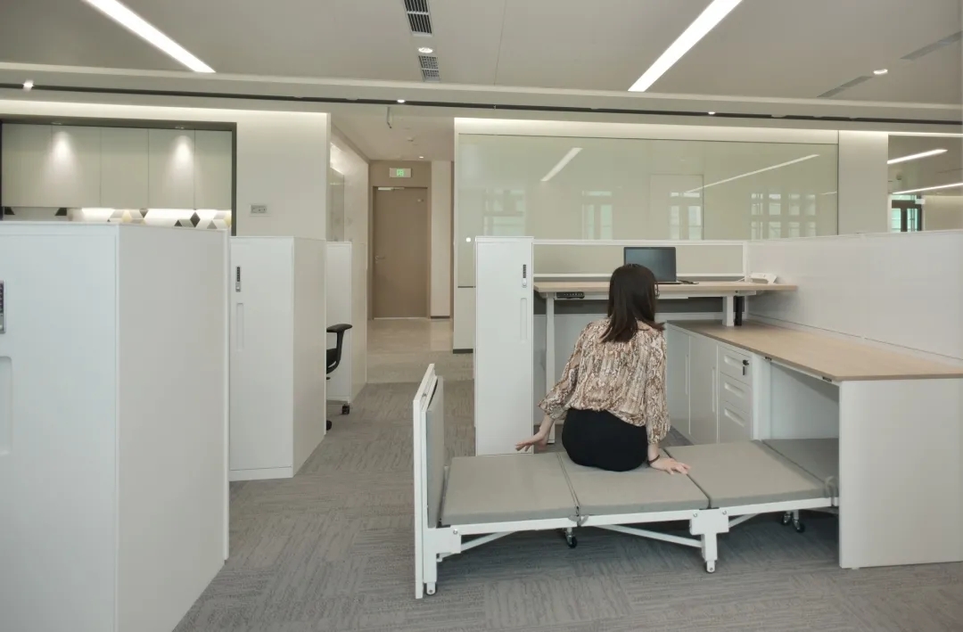 贝发展厅充满着叙事性的场景。延伸的序厅,感性的历史回顾、理性的现在体验、科技的多媒体路演、无限畅想的未来等场景共同构成了整层的空间逻辑形式面对空间功能的确定与未来可变需求的不确定,境库团队对区域进行矩形切割,让每个叙事空间形体进行组合,叠加、围合。多形体的空间独立又相互渗透,对空间的场景性、互动性、开放性进行更好的融合。在延展的整个维度空间里空间不再是局限展示,更成为一个能被感知的空间。