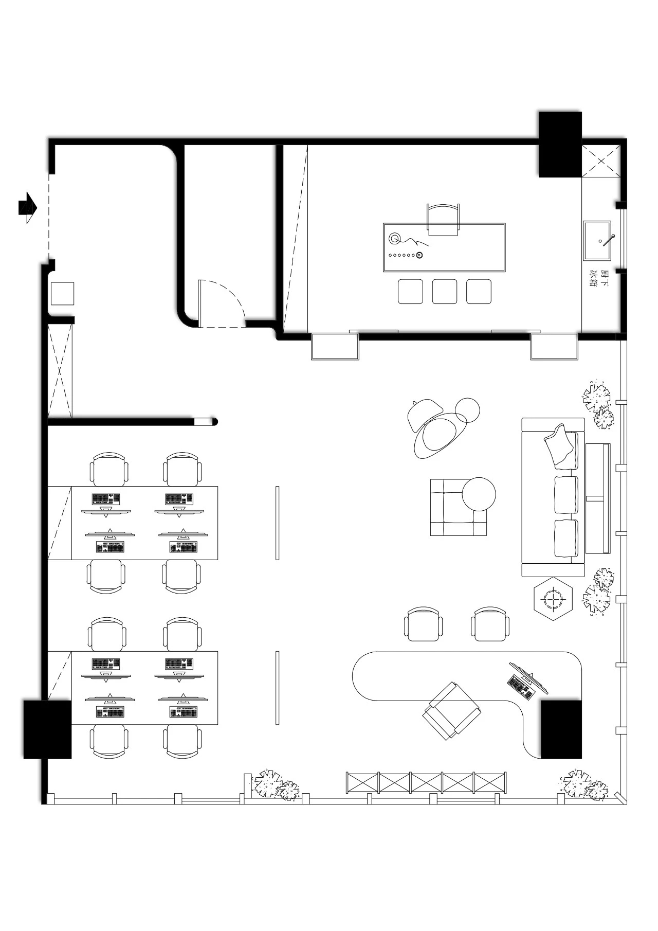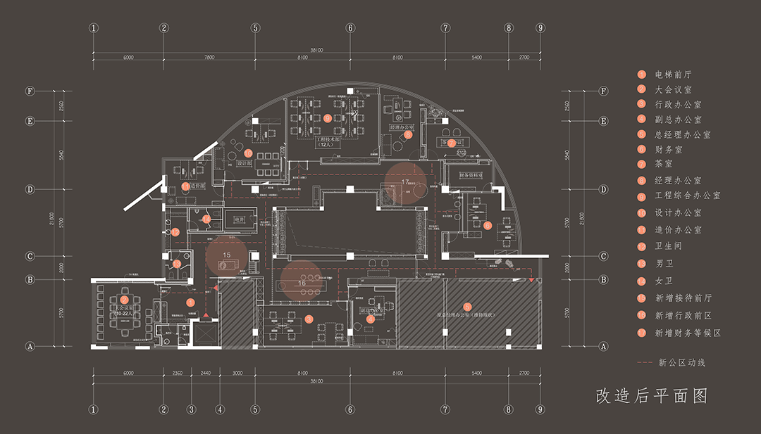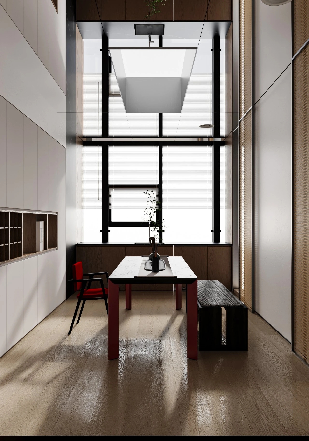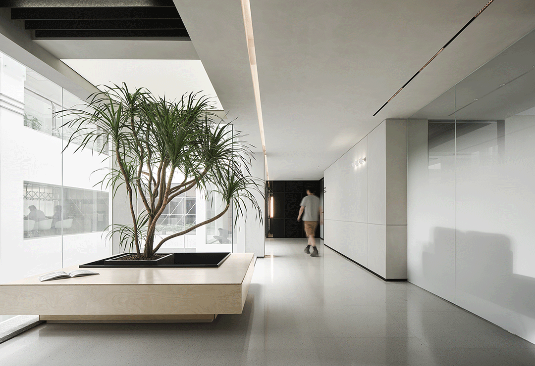 本案通过消隐建筑预留的空间边界,增强办公和公共空间之间的模糊痕迹。扩大因时代演绎对各空间的尺度关系。向员工和访客展示一种创新、激发灵感的多元化工作环境和交流平台,并在细节中体现成杰企业对于行业的进取、执着、创新、和对未来的展望。
