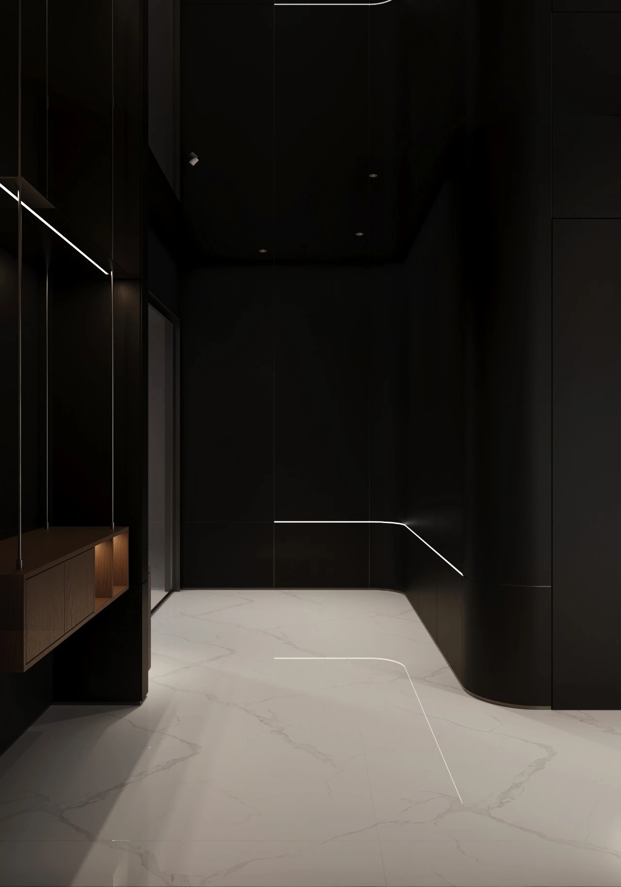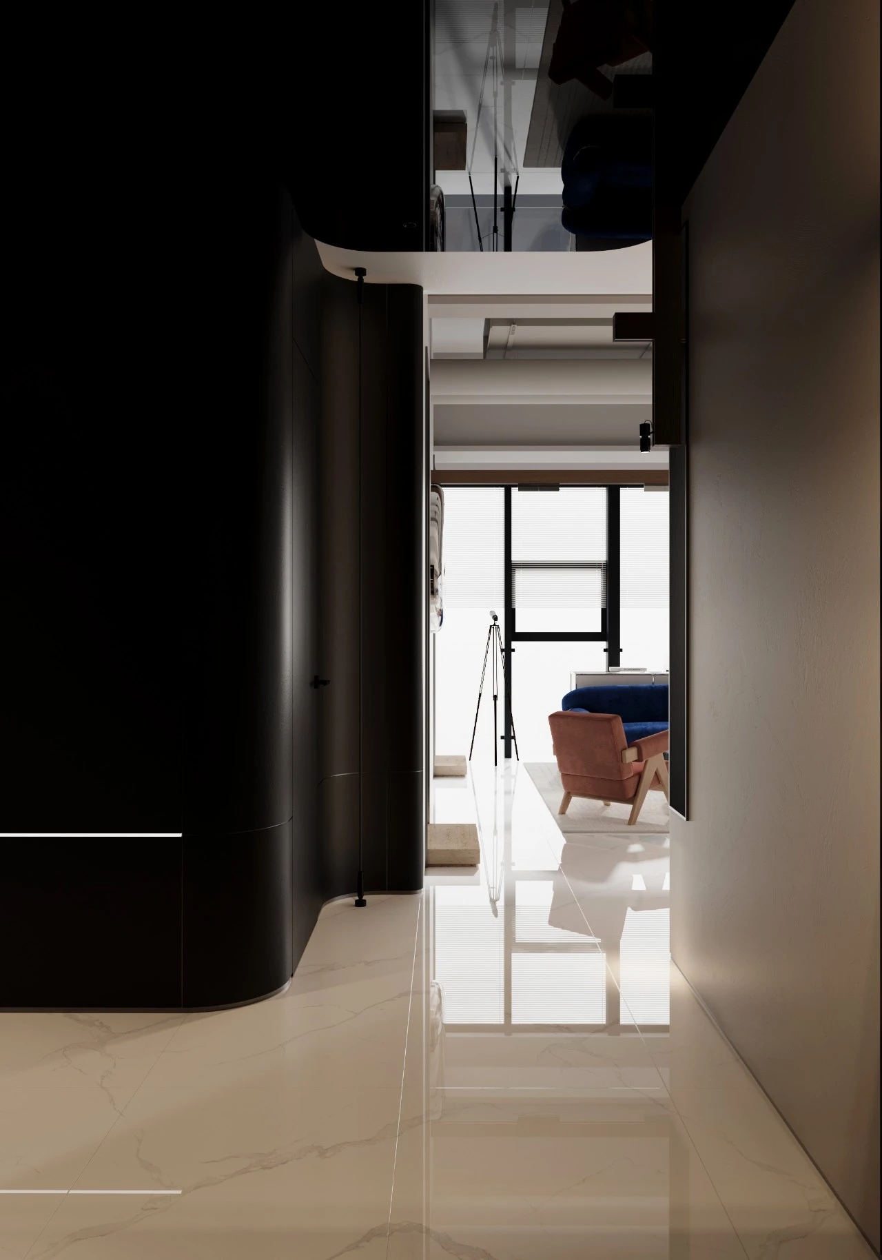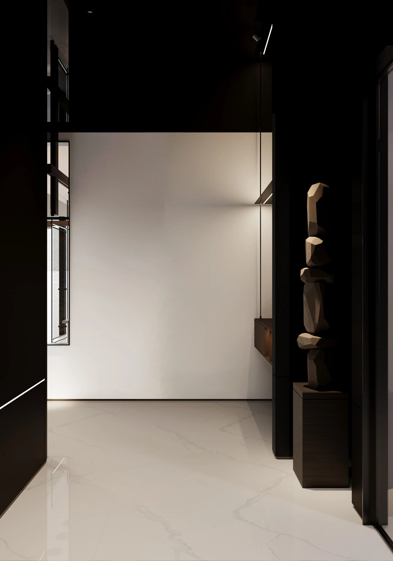 建筑空间的入口与廊之间的边界消融,材质与符号的渗透成为了这种叙事方式。