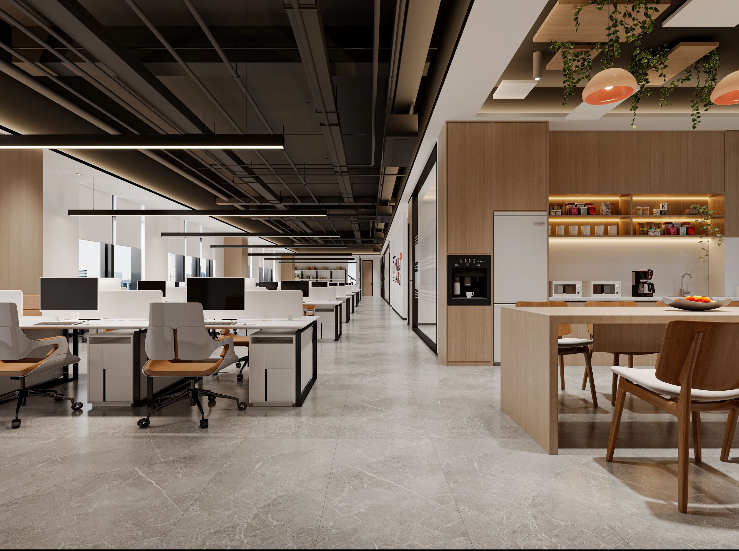 打造一个既富有表现力又极具适应性的空间,以满足团队和客户多样化的需求。设计团队巧妙地运用了形式与功能的平衡,通过精心挑选和处理的高质量材料,如经过特殊处理的胶合板、金属和天然石材,营造出一种简约而不失优雅的氛围。这设计手法不仅体现了现代审美趋势,更深刻体现了ADP对可持续性和耐用性的重视,与我们对持久环保设计的承诺不谋而合。