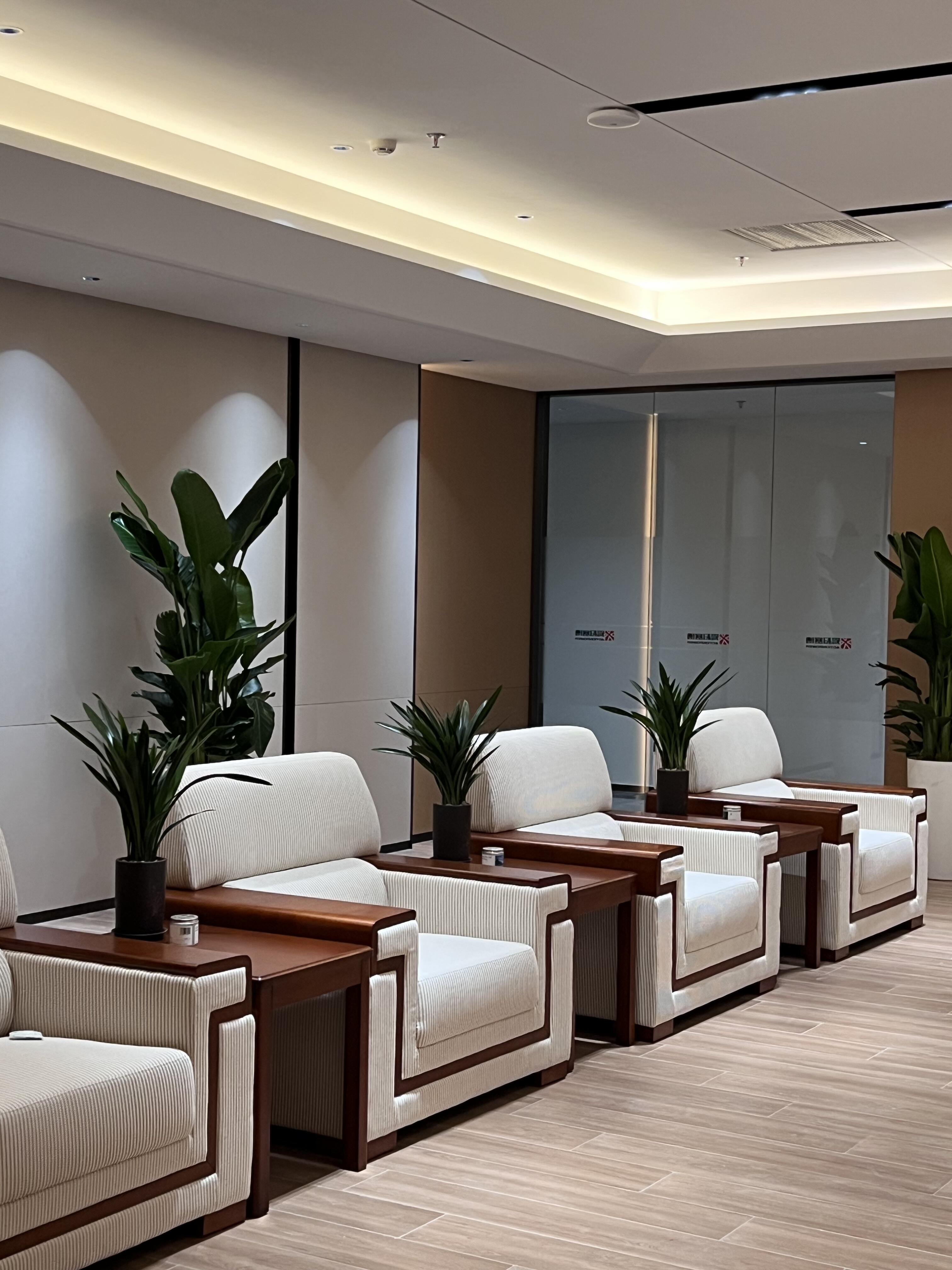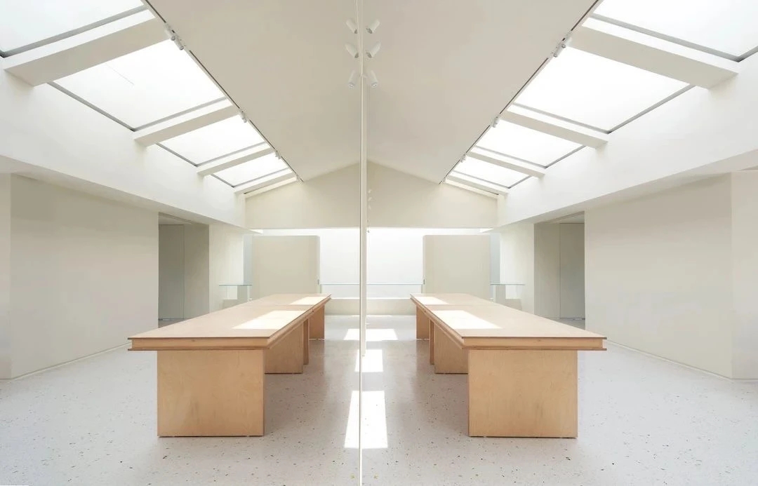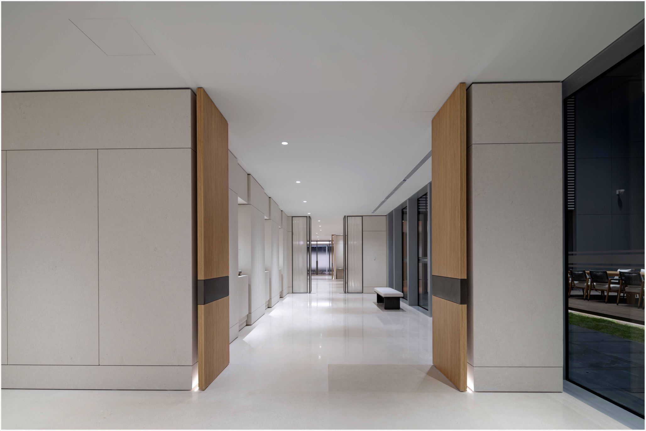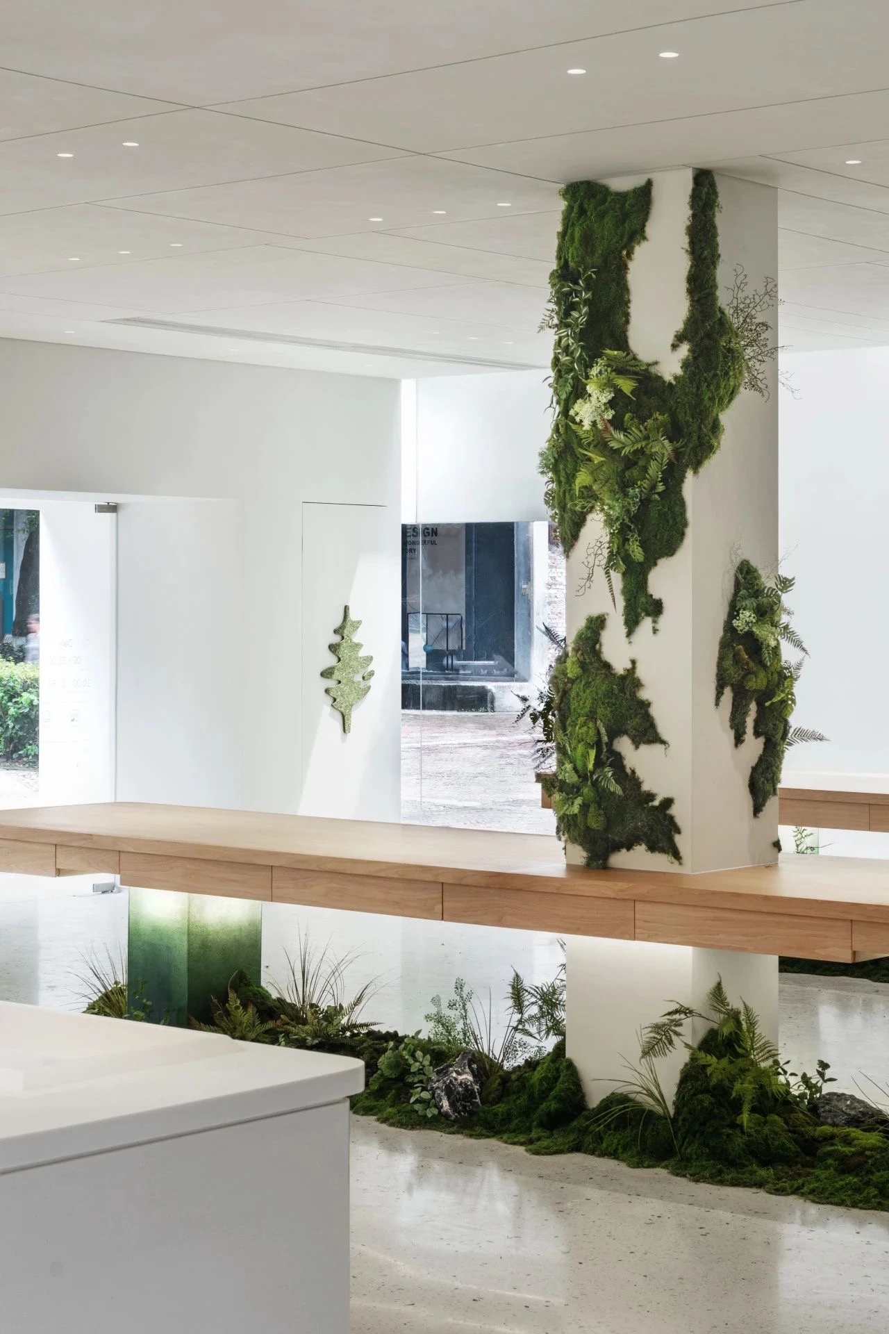 重复排列的方块和对称的结构线条组成了这个大空间,在这里,到来的朋友可以安静的聆听她的故事,聆听我们内心的本真。抛弃了复杂多变的设计,保留最原始的线条结构,大面积白色砼泥和层次光影变化传达出地是她的“真”和“纯”。