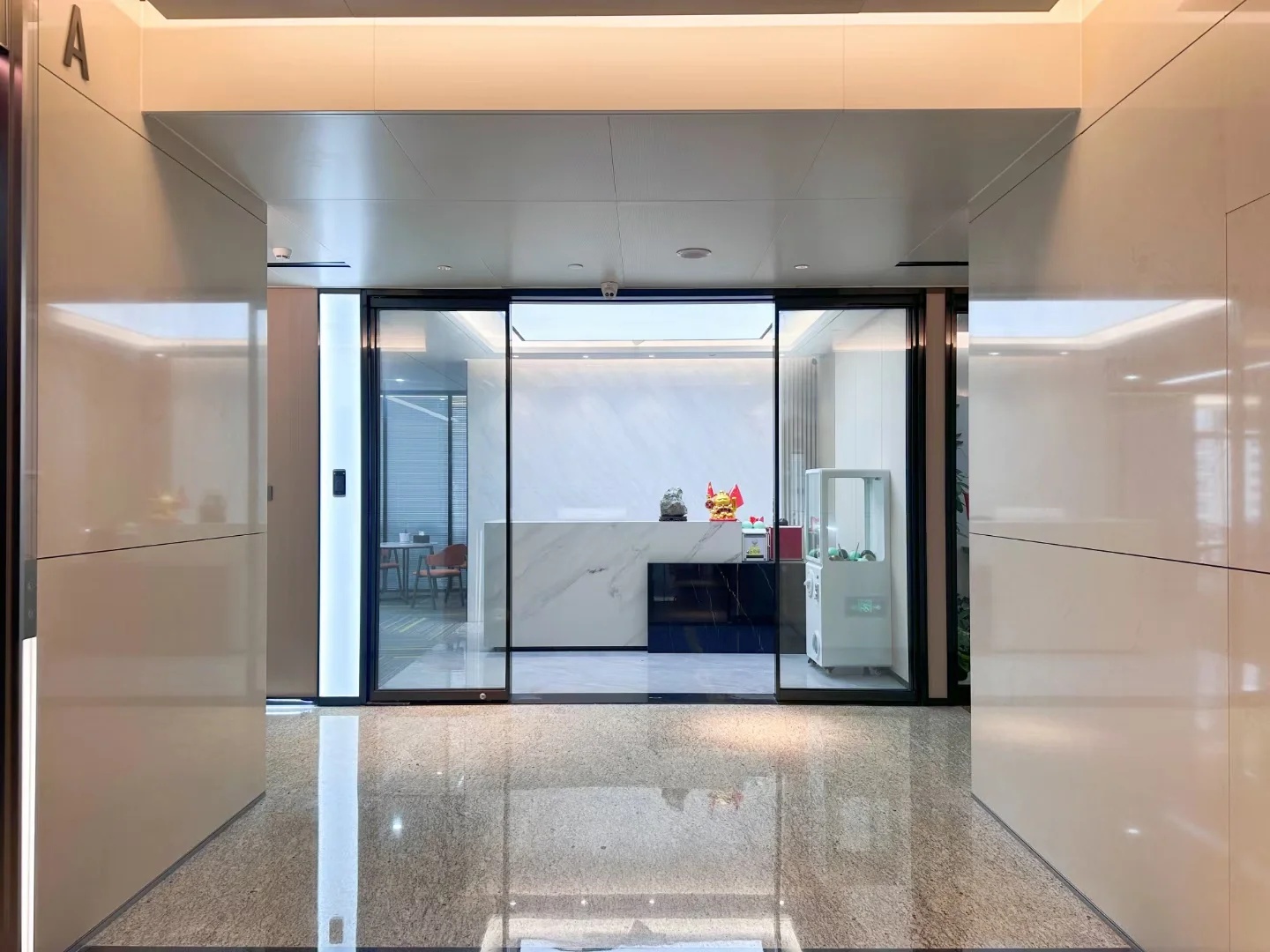 大堂右侧为中小型会议室,用于外部接待会议及面试,是较为轻松的办公场景。为了激活空间的环境友好,会议室包括一层的其他公共空间均面向户外河畔,明净的玻璃窗最大程度地利用日光来节约能源,结合节能照明、环保地毯材料,优化通风等手段以创造一个健康舒适环保的室内空间,为城市可持续发展的未来做贡献。
