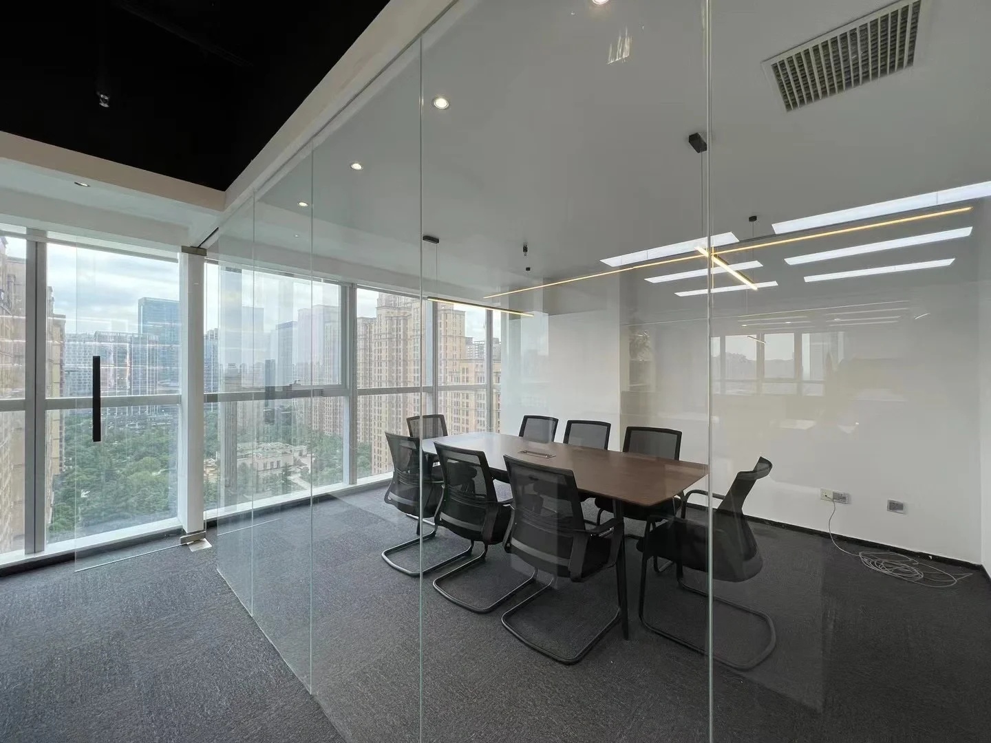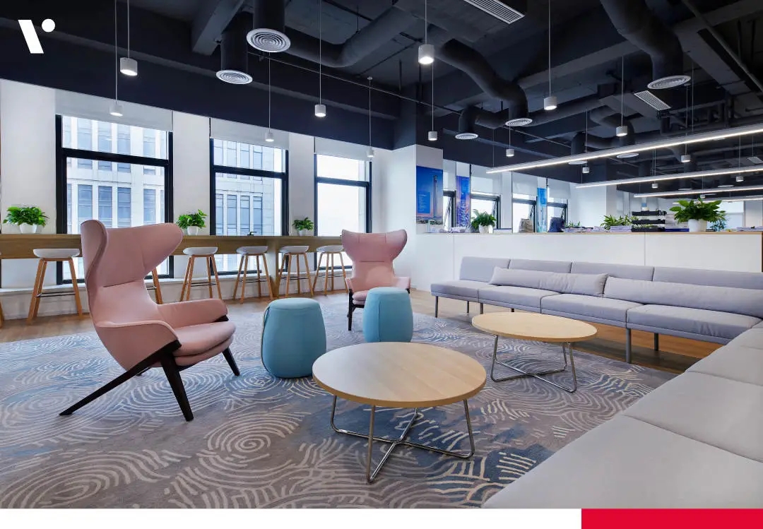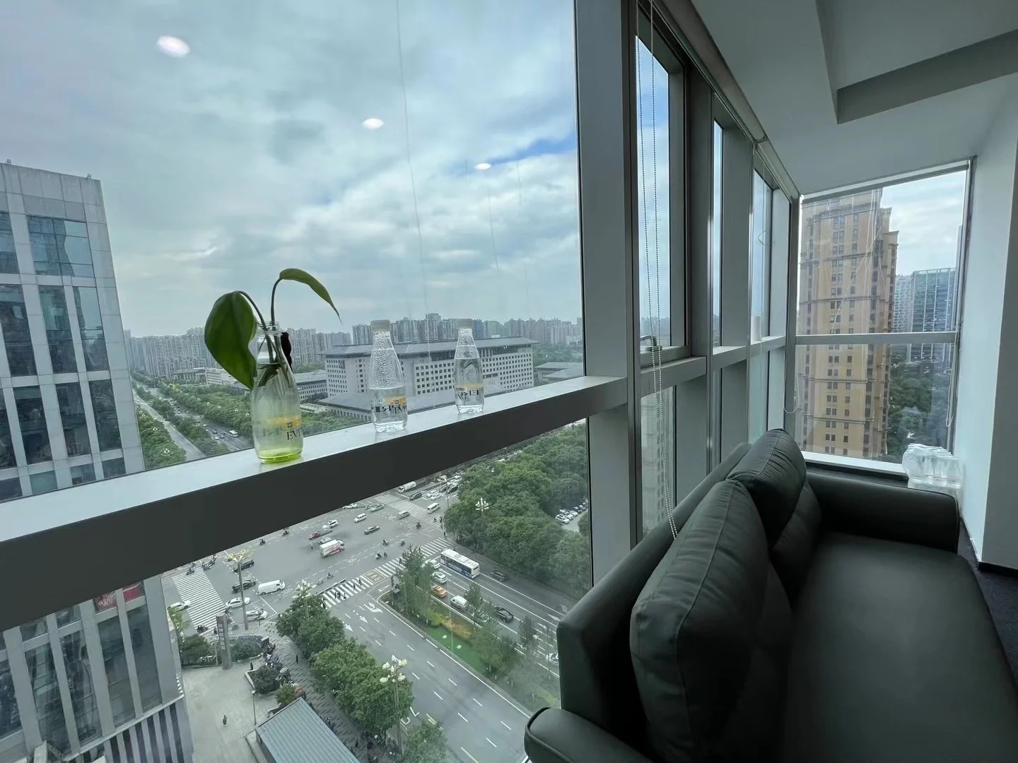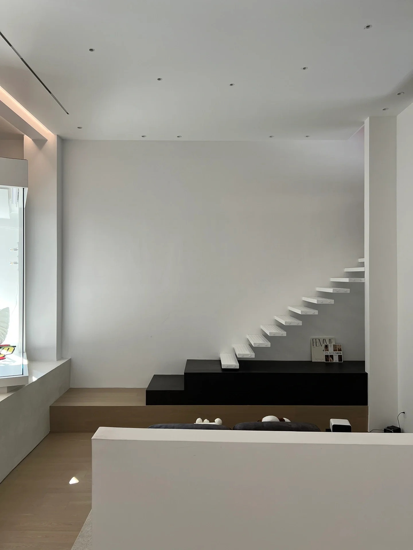 刚搬进来不久,入户有个非常大换鞋区,把室外的尘埃与室内隔绝!室内动线清晰,有员工区,2个设计总监办公区,茶水台!下沉式会客区及会议区!大面积的隐藏柜子将办公的物料全部隐蔽,整个办公室以白色涂料为主!