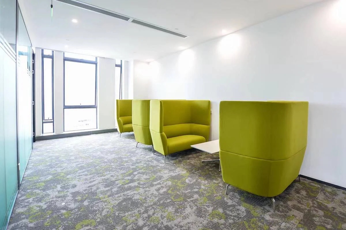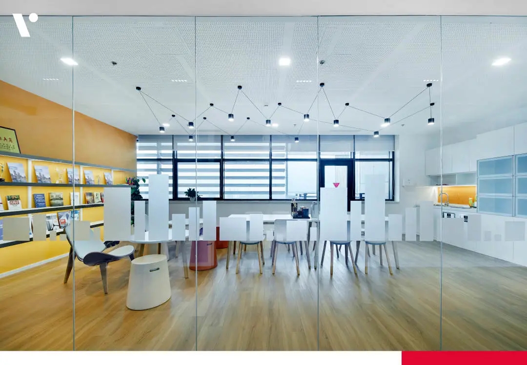 虽然在园区最不起眼的角落,要绕道整装大楼的后面,但胜在安静!经过设计后,设计总监办公室用玻璃盒子概念,不会阻挡下沉式区域的光线同时,又有独立思考空间!