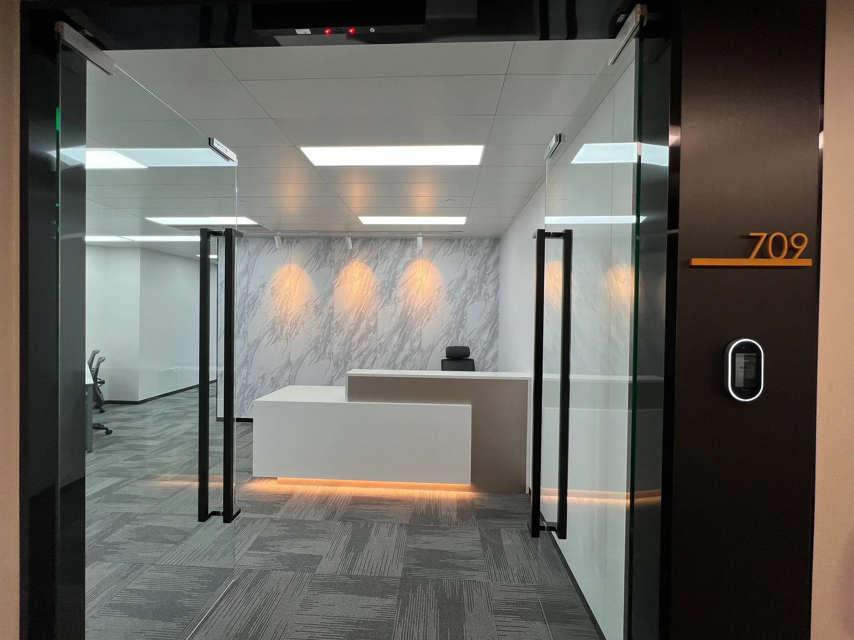设计通过对物理空间的重新规划,最终实现了空间既可满足员工高效办公的体验需求,同时又以大雅行旅度假酒店的定位为切入点,引入“看得见树梢的二楼”的自然美景和酒店式服务体系,构建出新的“酒店式办公空间”。设计将室内空间打开,使办公区域成为一个“大而连续的音符”,连接着前台、品牌展示区、会议室、休闲区、商务会客区等模块。开阔的空间带来宽广的心性,亦是大雅行旅精神的延伸。