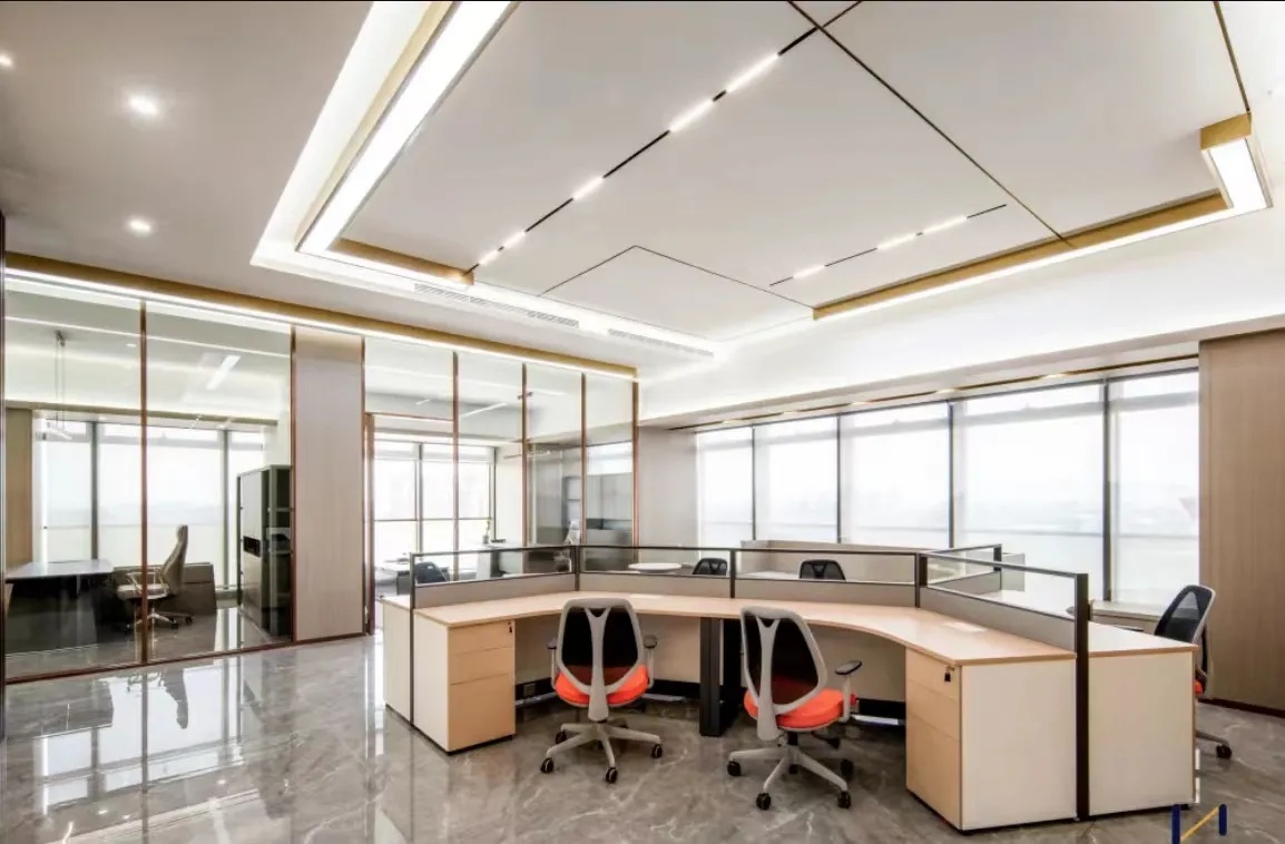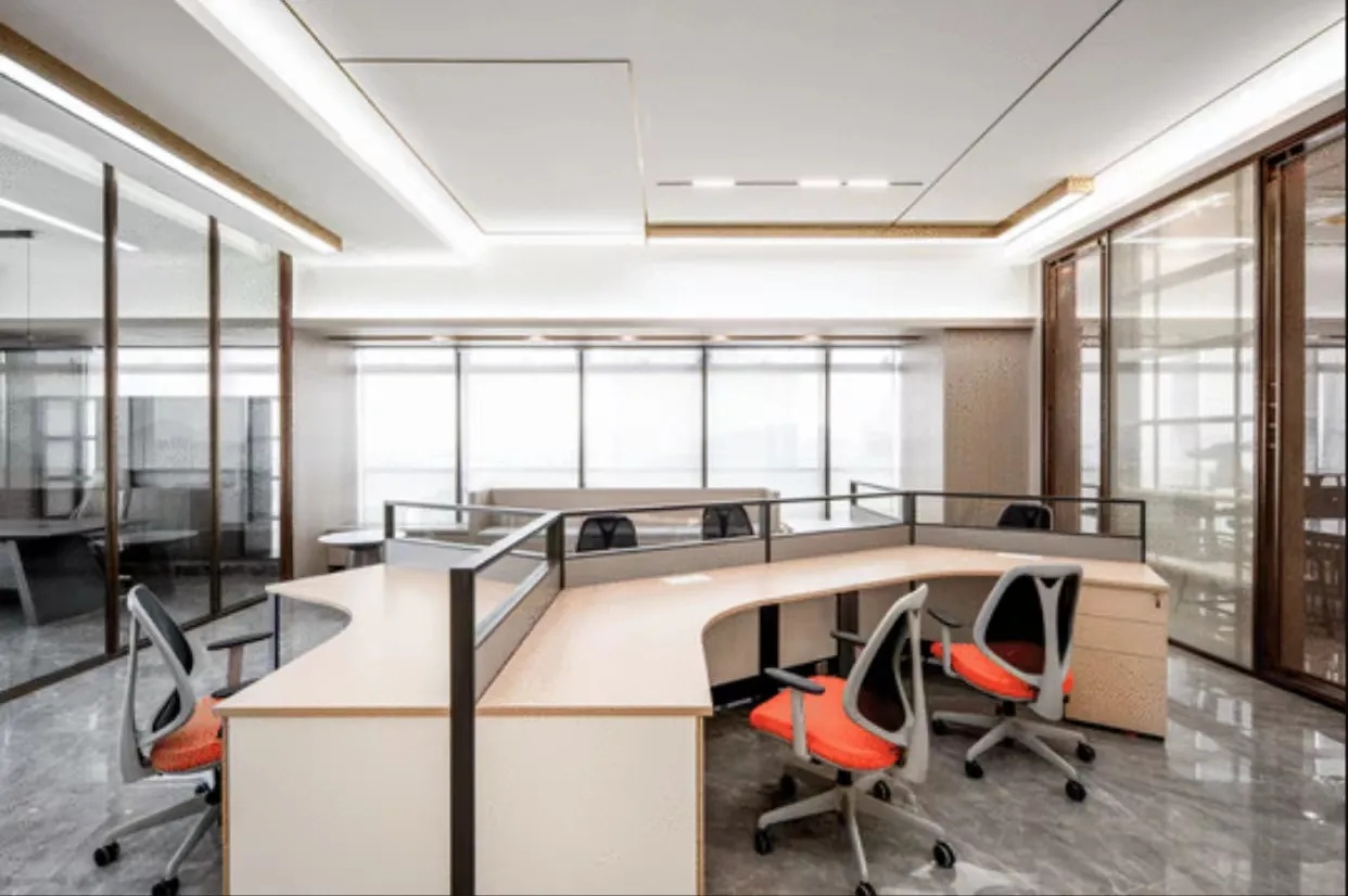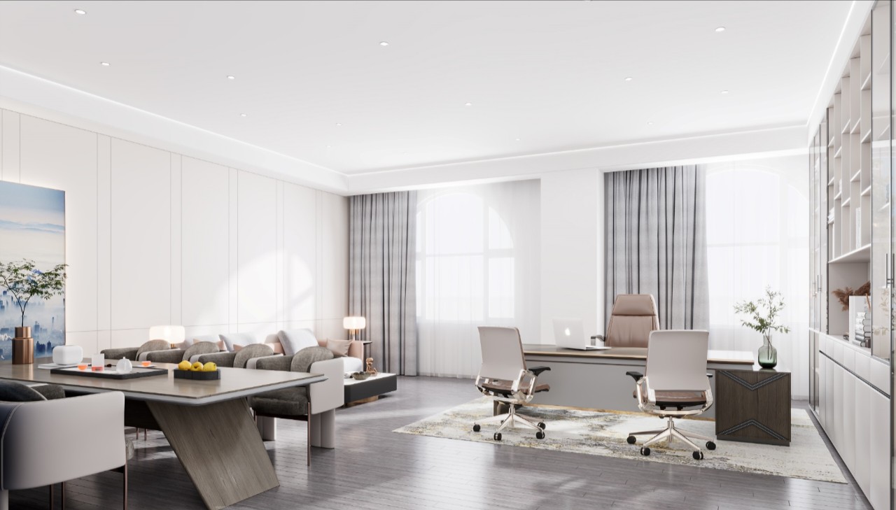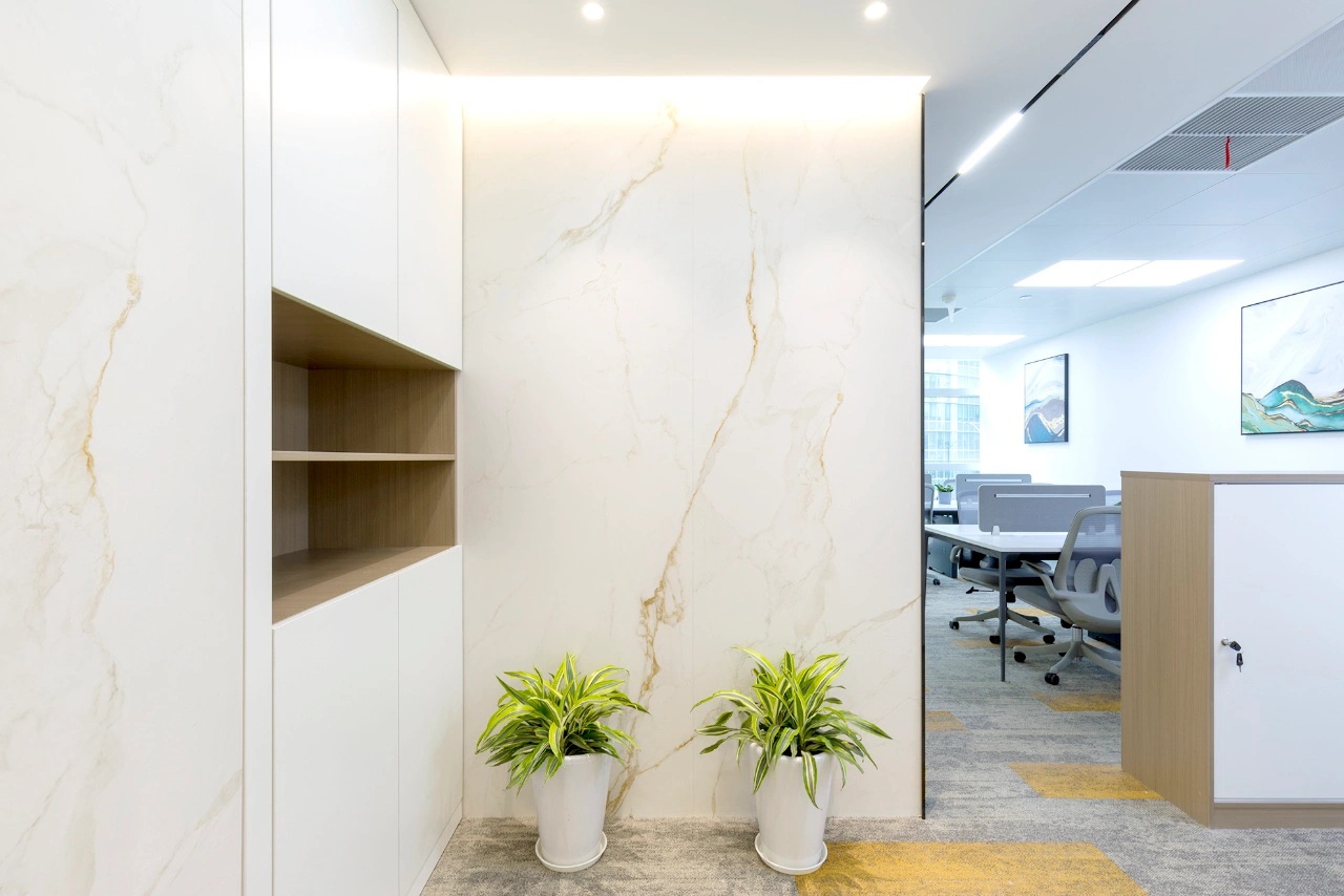 极简,是开放,亦是隐藏、极简。休闲沙发巧妙地融合,使整个空间变得更加自然、柔和、动人,合理的动线把各个功能板块连接在一起,成为开放的空间关系,使得人与人之间的沟通回到了最为原始、有效、有趣味的方式。新的办公室设计调色板包括浅色柚木、柔和的白色,以及整个空间中的大量生态。办公桌靠窗设计,这样的办公桌不仅给人一种踏实感,透过窗更是有一道美丽的自然风景,采光良好,通风适宜。经理室以黑白灰主导,摒弃其他鲜艳颜色,空间以纯粹的材质体现品味,以利落的线条丰富视觉,让空间更加自然、放松。