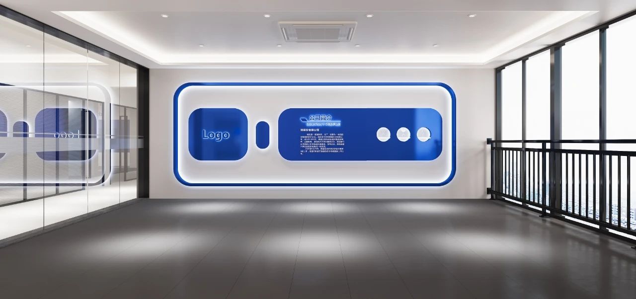 空间以简洁而富有张力的设计语言展现企业的属性。从入口Logo墙到配色与材质的细节,品牌调性在空间中无处不在。