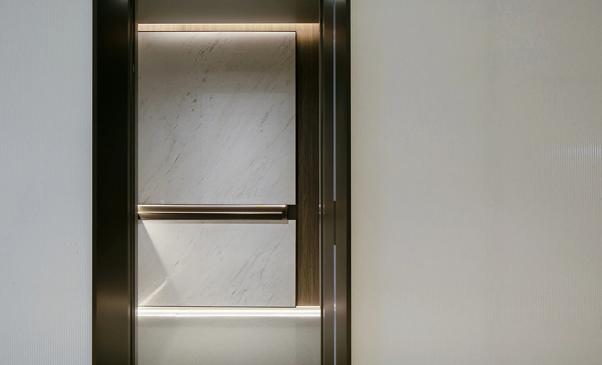 前台接待处以木色暖光酝酿深沉基底,又用浅石台面呼应大厅地面,简单的色彩交融出和谐观感。笔直线条交汇,分明棱角彰显一丝不苟之态度,而文化墙上草书狂放不羁,前台桌上花饰翩然,与无界灯光共书超然物外的精神境界。