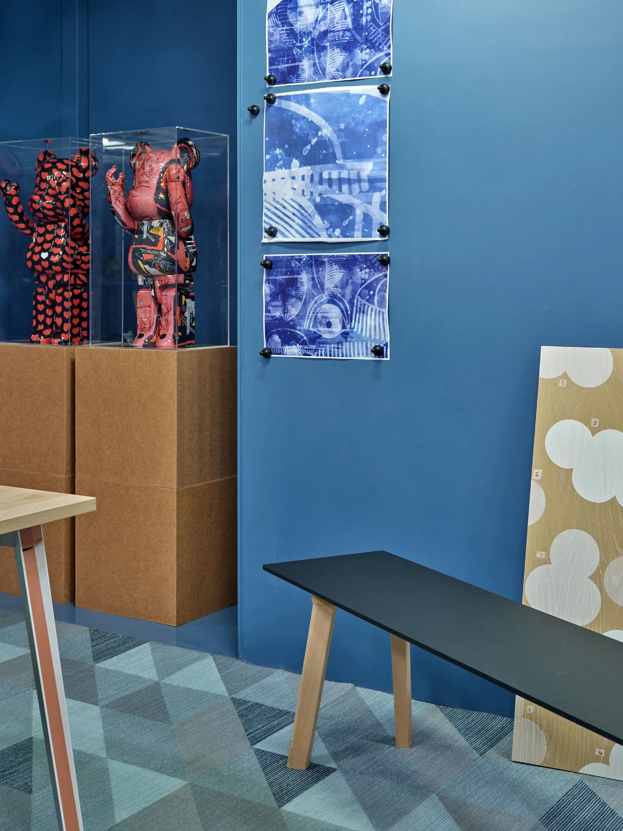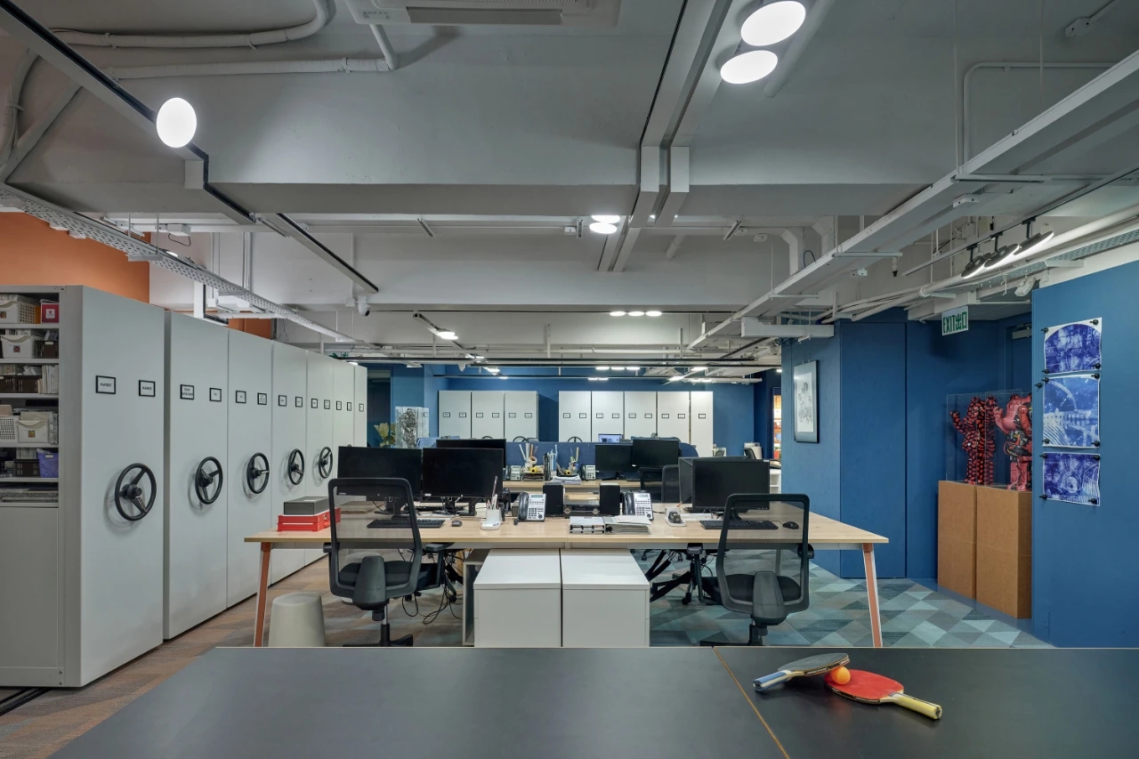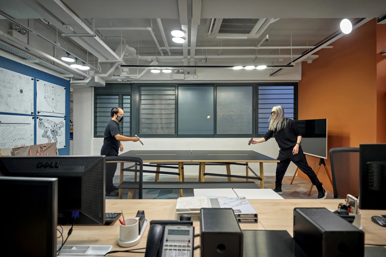 会客区的空间不仅可以全方位展示壹正企划自成立以来所获奖项荣誉,还可以给前来会面的客人提供宽敞明亮的交流空间。办公区的长方桌既是同事们的会议桌,也是乒乓球台,工作间隙还可以娱乐放松一下。