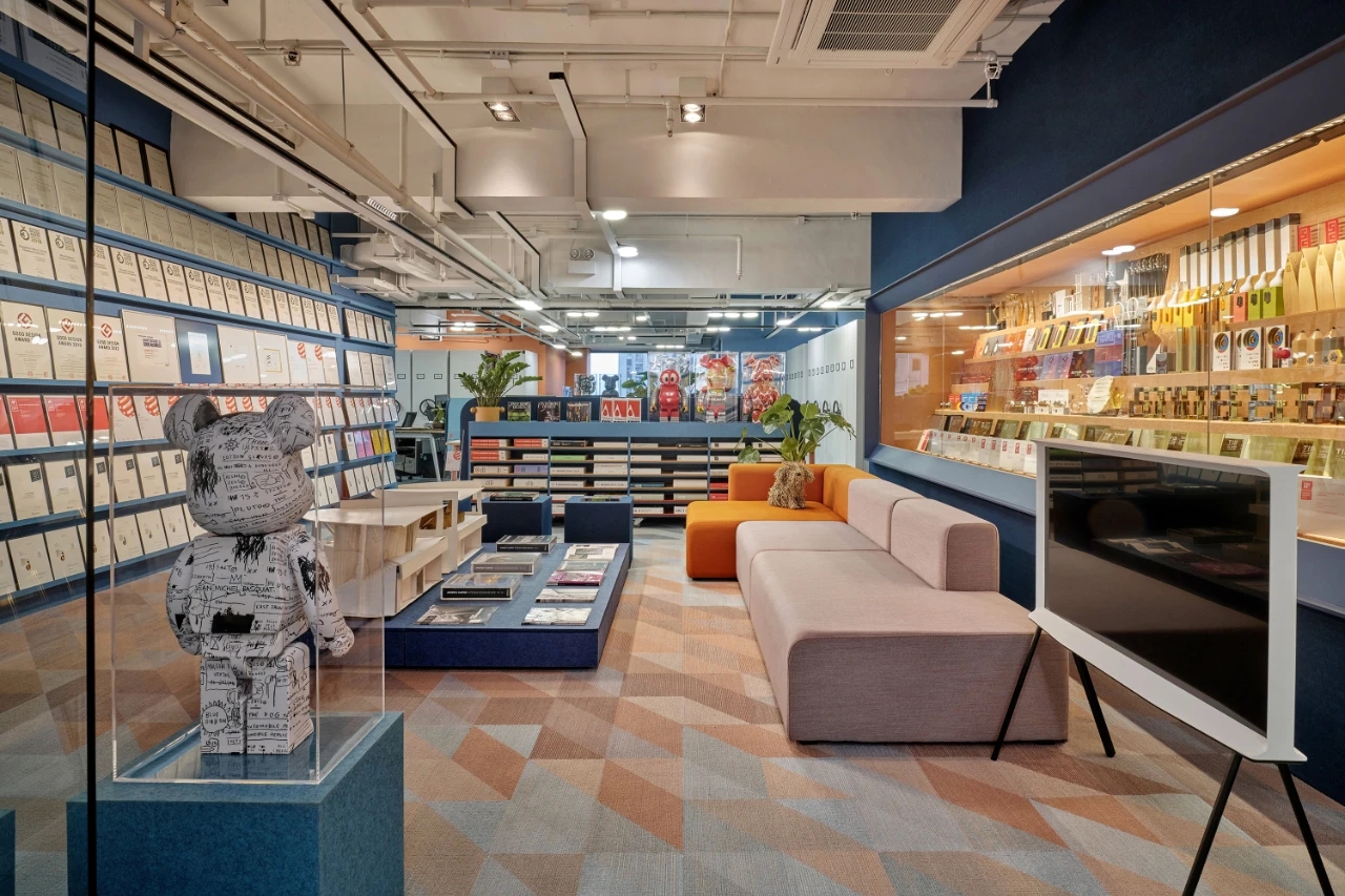 入口处由壹正企划创始人龙慧祺手绘的ONE PLUS PARTNERSHIP字样,字母之间呈现重叠的视觉效果,并结合街头涂鸦风格,契合了壹正企划的设计理念——主题概念驱动,再叠加独有的元素来延展空间。