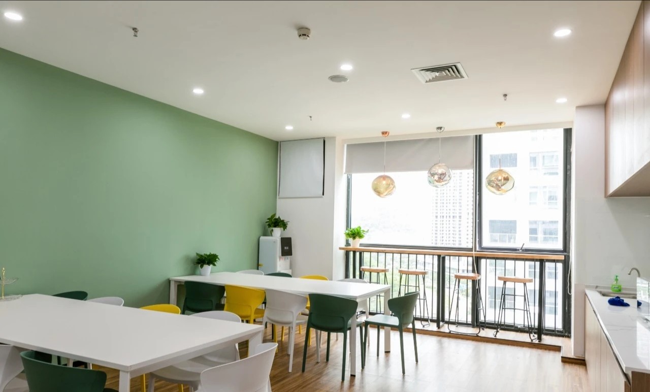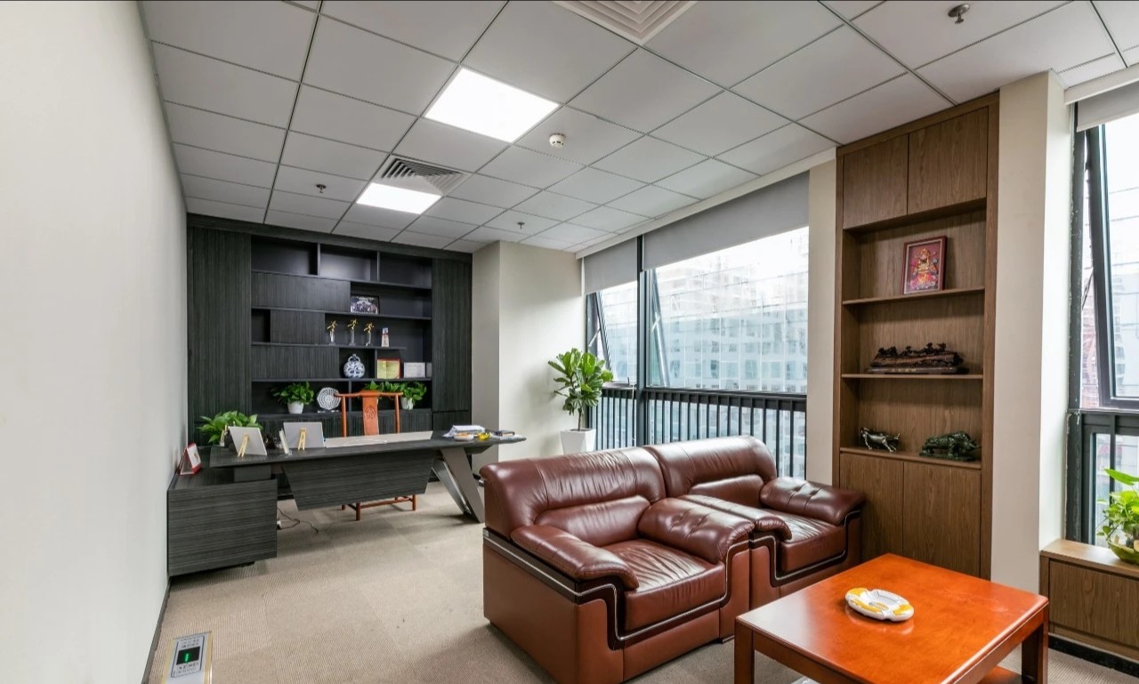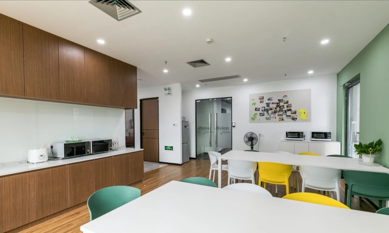 通透明亮的休闲区加上淡绿色的墙面,在放下繁重的工作后,浅绿色给眼睛休闲,走到窗边,眺望室外,风景辽阔,树木郁郁葱葱慰藉日常的疲劳,真正的做到劳逸结合