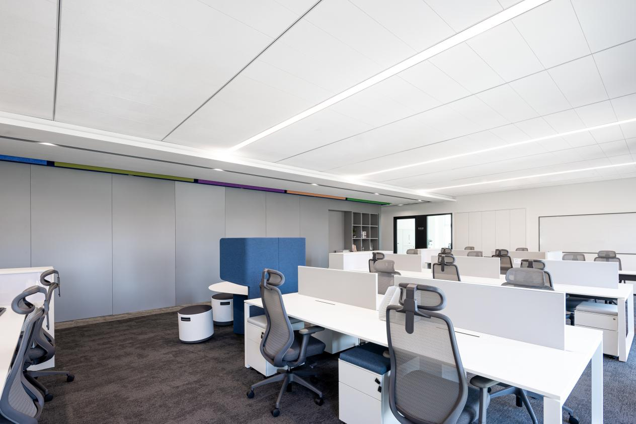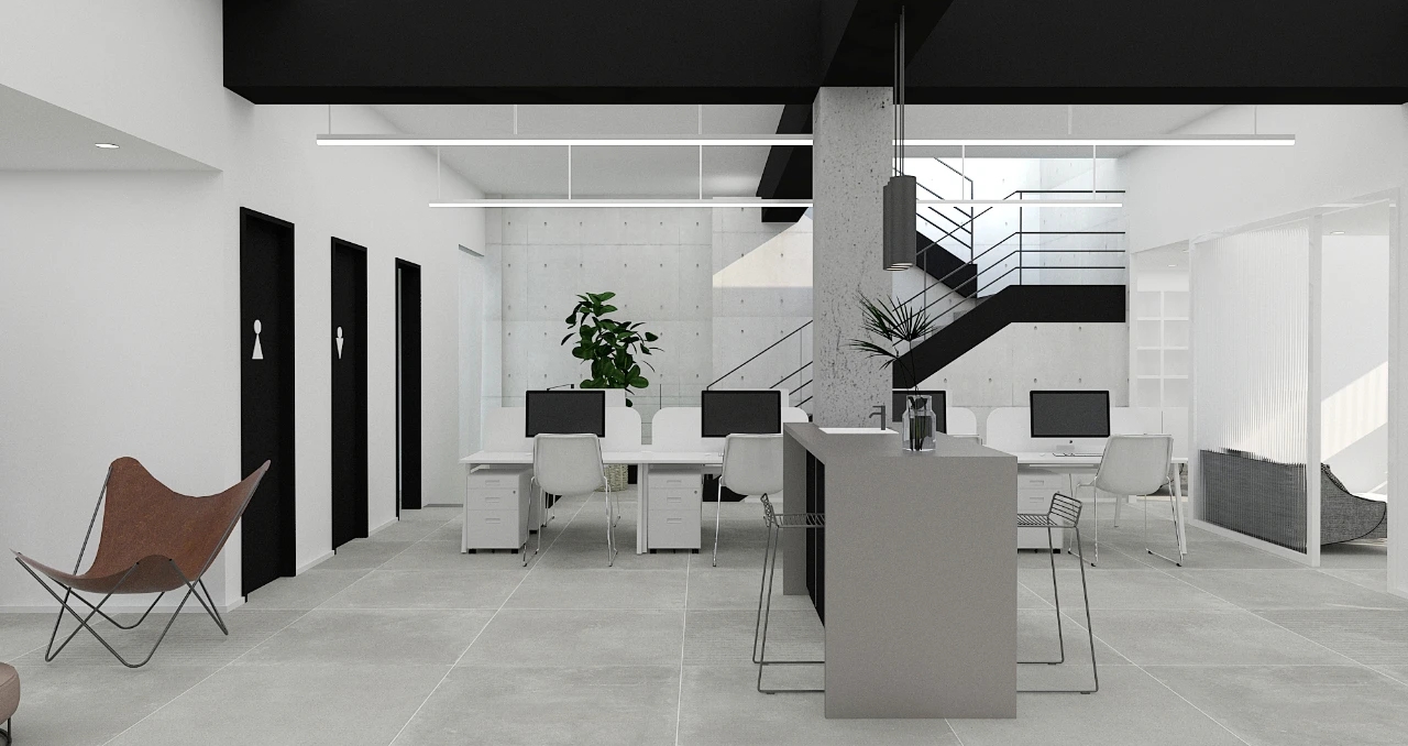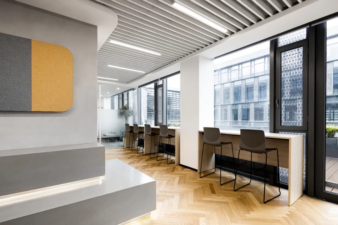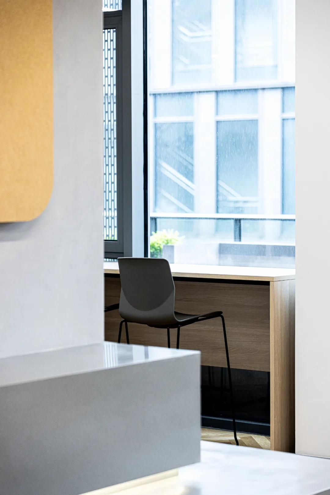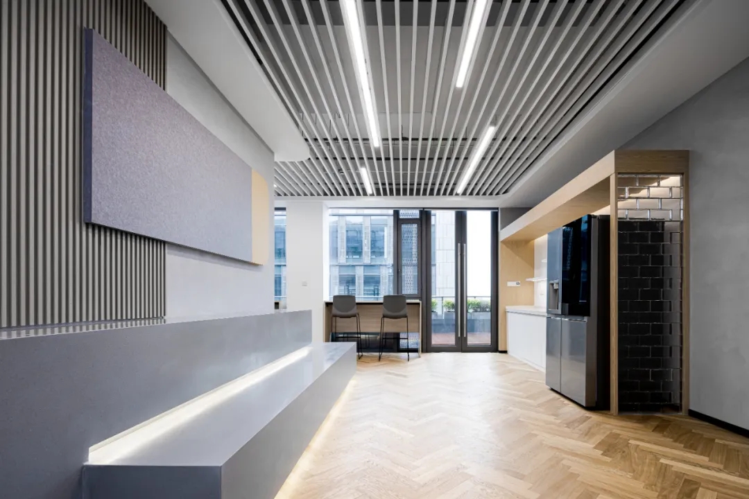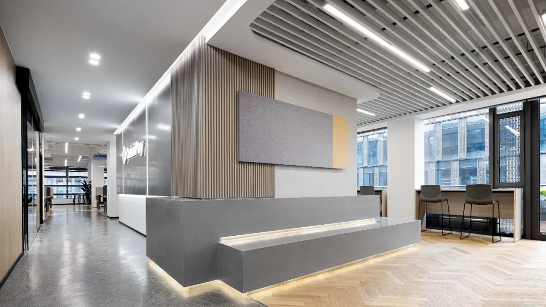 造型吊顶与地面色块相互呼应,轻松有趣的气质穿梭在人员协作之间,中性色彩办公家具在细节上增加耐用和降低视觉刺激导致的疲劳感。真正舒适的空间做到与功能需求一致,提供给使用者专心的设施和敏捷的思路。